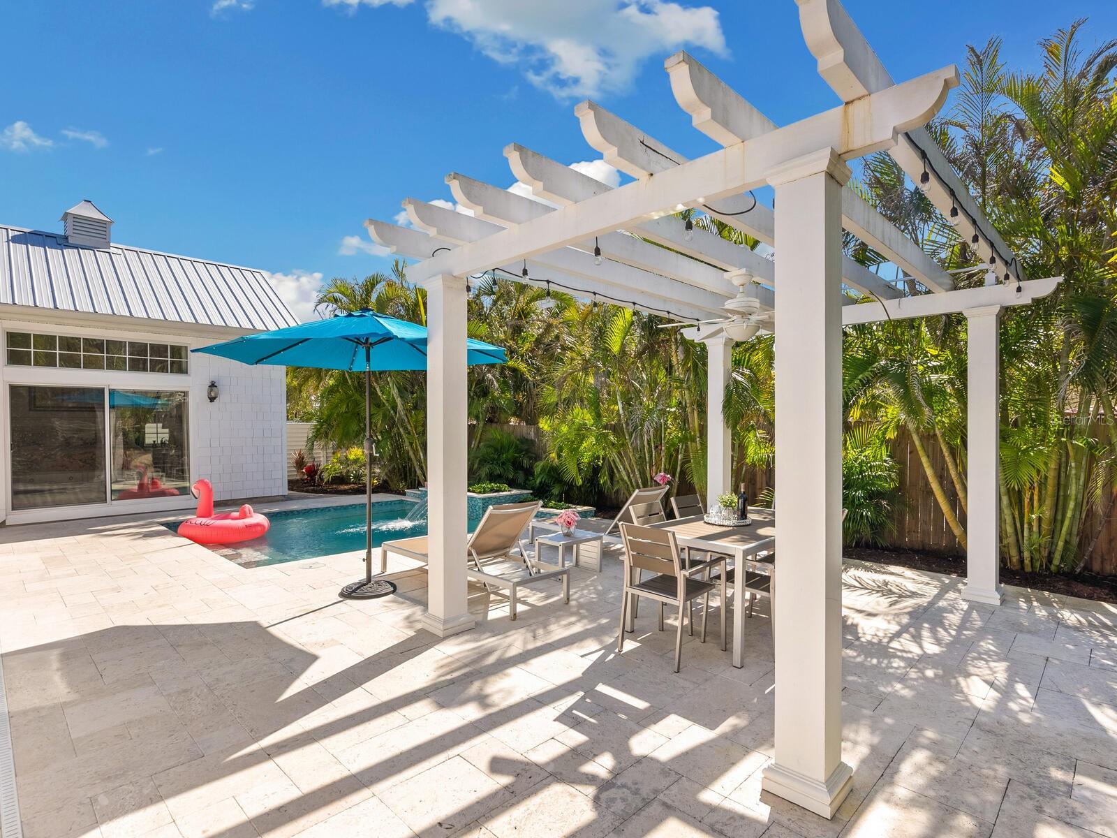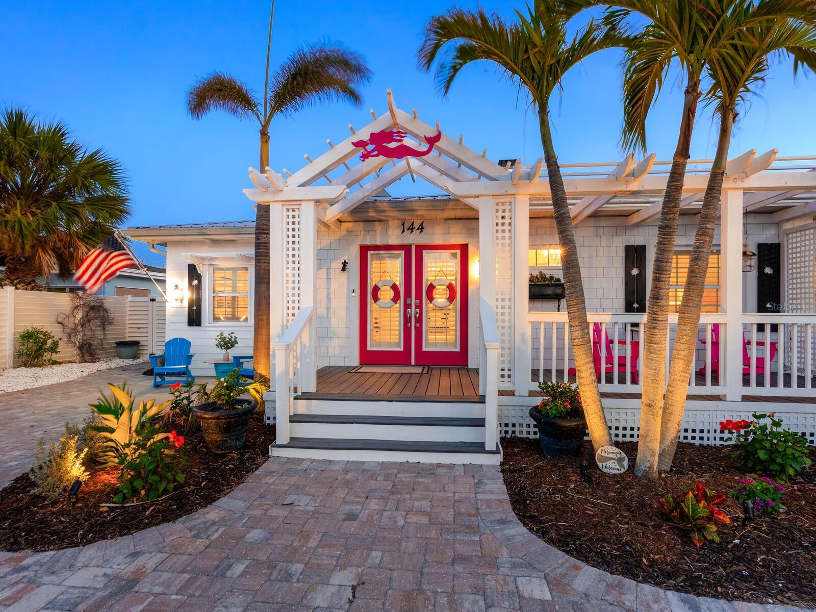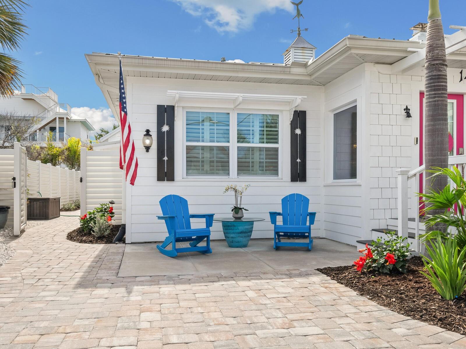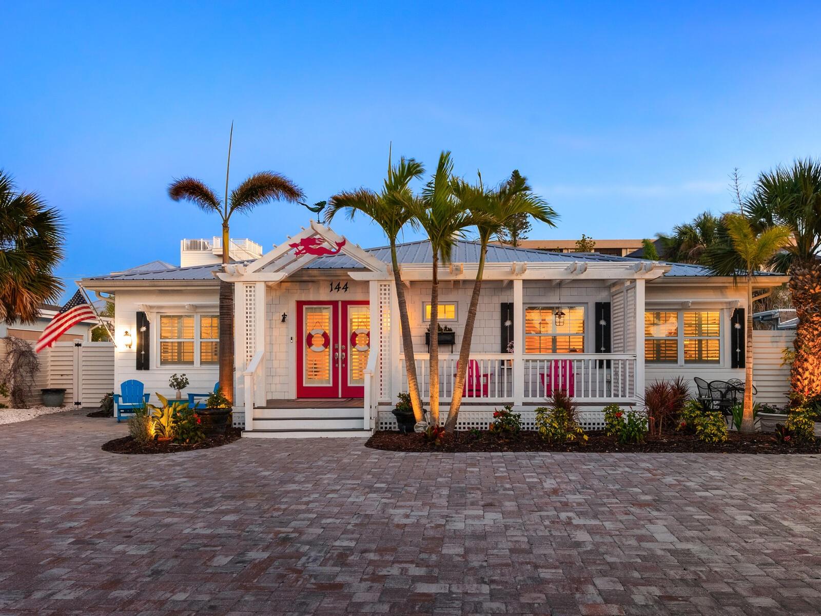 Move-in ready! Gorgeous main house is a three-bedroom, three-bath home. There is also an attached one-bedroom, one-bath guest suite with private entrance, private deck, full kitchen, laundry and living room. Just half a block from Lido Beach, this beautifully updated beach house offers a blend of luxury, charm and modern convenience. Featuring high-end finishes throughout, the spacious open floor plan is filled with natural light, creating a warm and inviting coastal ambiance. The chef's kitchen is a dream, boasting Bosch appliances, a Smeg gas stove, and a massive island that seats more than six. A split floor plan ensures privacy, with the primary suite serving as a retreat, complete with a spa-like bath, a freestanding soaking tub, a large walk-in closet and sliding doors leading directly to the pool. Two additional bedrooms provide comfort, one with an en-suite full bath and the other with a half bath and outdoor shower. The home features a gas fireplace and a wood-burning fireplace, real solid wood floors and marble in the baths. Outside, the heated swimming pool is surrounded by travertine pavers, lush tropical landscaping, a pergola and outdoor grill. A charming front porch and additional storage shed add to the home's appeal. Additionally, the guest apartment provides excellent short-term rental income potential, as the property allows for a seven-day minimum rental. The location is unbeatable, just minutes from St. Armands Circle, known for its premier shopping, dining and entertainment. Outdoor enthusiasts will love the proximity to Ted Sperling Nature Park for kayaking and South Lido Park for trails and playgrounds. Whether as a primary residence, vacation home or investment property, this coastal retreat is a rare opportunity to own a piece of paradise near Lido Beach. Schedule your private showing today!