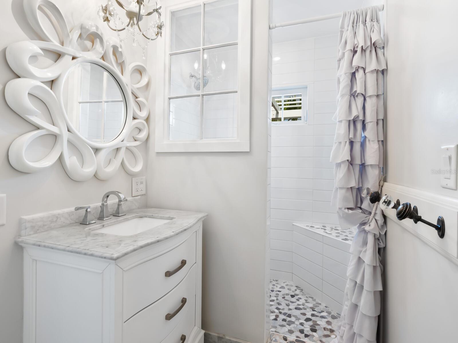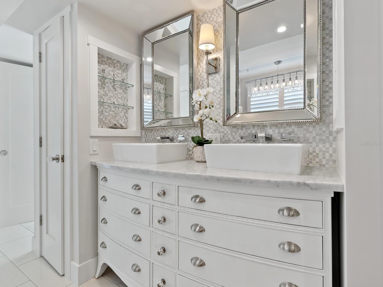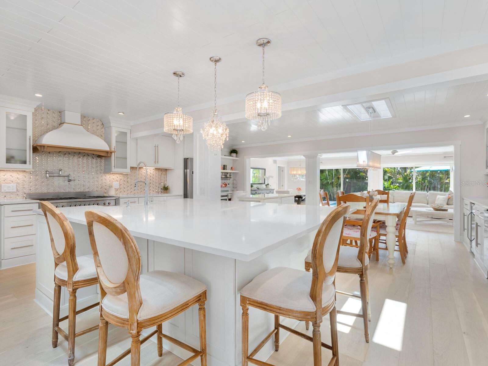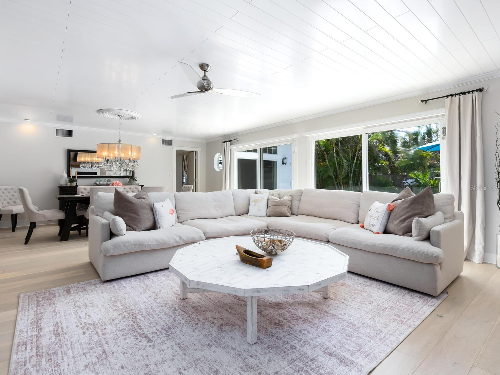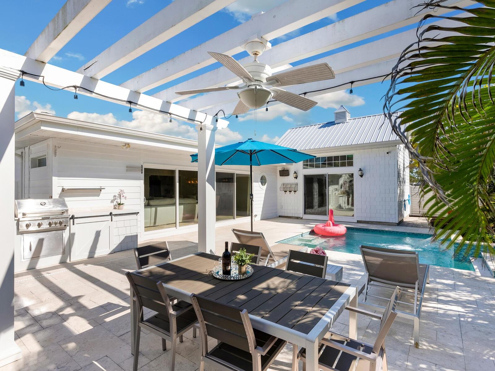 Move-in ready! Gorgeous main house is a three-bedroom, three-bath home. There is also an attached one-bedroom, one-bath guest suite with private entrance, private deck, full kitchen, laundry and living room. Just half a block from Lido Beach, this beautifully updated beach house offers a blend of luxury, charm and modern convenience. Featuring high-end finishes throughout, the spacious open floor plan is filled with natural light, creating a warm and inviting coastal ambiance. The chef's kitchen is a dream, boasting Bosch appliances, a Smeg gas stove, and a massive island that seats more than six. A split floor plan ensures privacy, with the primary suite serving as a retreat, complete with a spa-like bath, a freestanding soaking tub, a large walk-in closet and sliding doors leading directly to the pool. Two additional bedrooms provide comfort, one with an en-suite full bath and the other with a half bath and outdoor shower. The home features a gas fireplace and a wood-burning fireplace, real solid wood floors and marble in the baths. Outside, the heated swimming pool is surrounded by travertine pavers, lush tropical landscaping, a pergola and outdoor grill. A charming front porch and additional storage shed add to the home's appeal. Additionally, the guest apartment provides excellent short-term rental income potential, as the property allows for a seven-day minimum rental. The location is unbeatable, just minutes from St. Armands Circle, known for its premier shopping, dining and entertainment. Outdoor enthusiasts will love the proximity to Ted Sperling Nature Park for kayaking and South Lido Park for trails and playgrounds. Whether as a primary residence, vacation home or investment property, this coastal retreat is a rare opportunity to own a piece of paradise near Lido Beach. Schedule your private showing today!