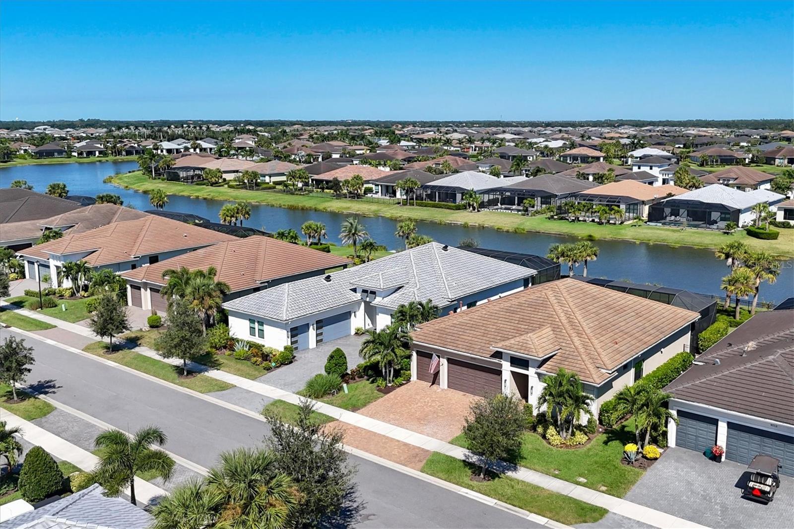 Luxury meets value in Artistry Sarasota! This beautifully designed 2-bedroom plus den, 2-bath home sits on a premium waterfront homesite while offering quality, style, and comfort in one of Sarasota's premier gated communities. Step inside to an inviting open layout filled with natural light. The bright, modern kitchen features white cabinetry, quartz countertops, a 36" gas cooktop, and a wall oven, all open to the dining area and great room with peaceful lake views. Elegant electric shades in the living and dining areas provide effortless comfort and privacy at the touch of a button. The den off the foyer makes an ideal home office or creative retreat, while the owner's suite impresses with coffered ceilings, a dual-sink quartz vanity, and a frameless glass-enclosed shower with bench. Enjoy Florida living at its finest on the extended covered lanai, complete with an outdoor kitchen, electric sun shade and sparkling saltwater pool perfect for relaxing or entertaining while taking in tranquil water views. The fenced yard is a great bonus for pets. Artistry Sarasota is a natural gas, maintenance-free community offering neighborhood amenities including a clubhouse, fitness center, pool, playground, pickleball and basketball court, plus easy access to Lakewood Ranch, downtown Sarasota, and the Gulf beaches.