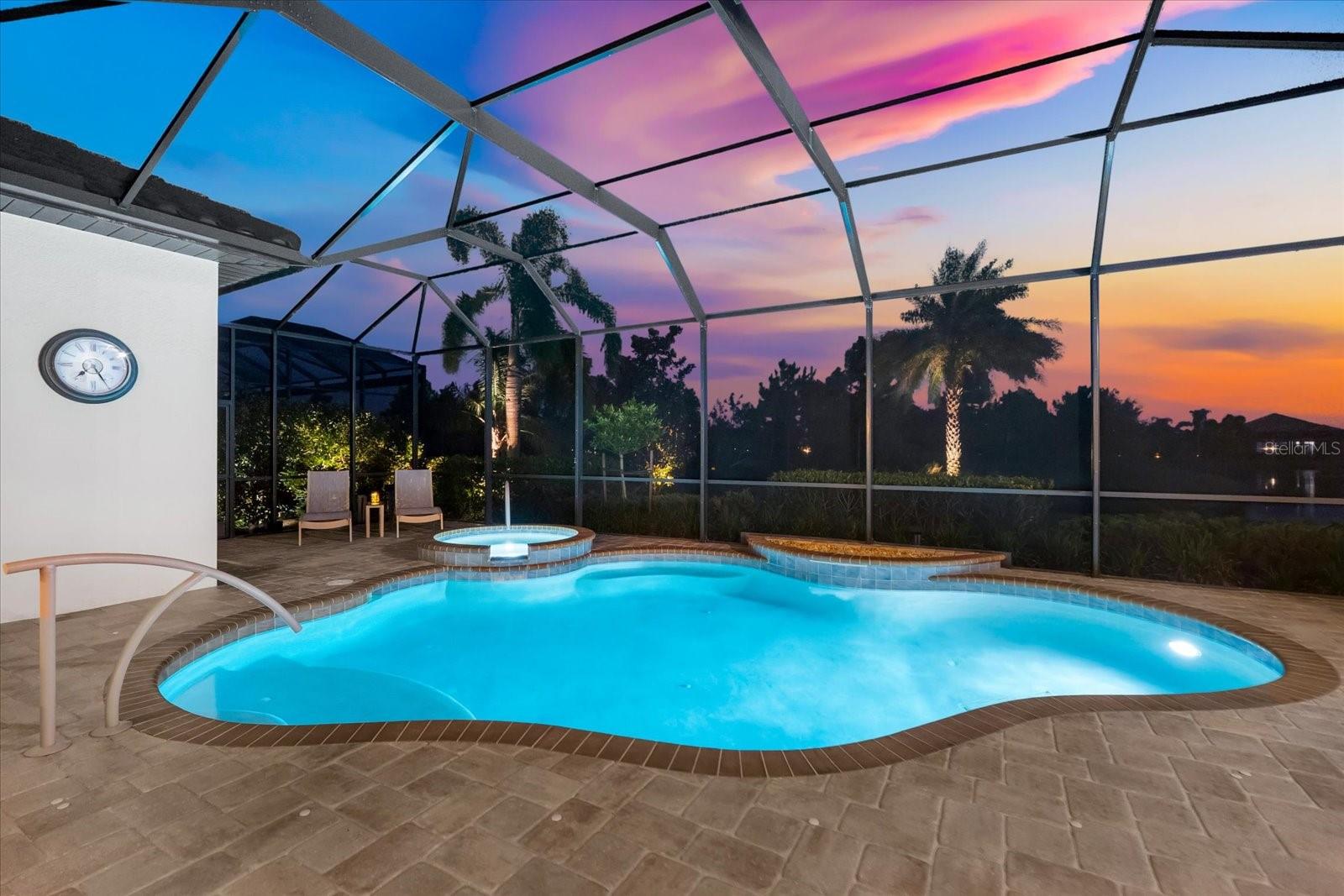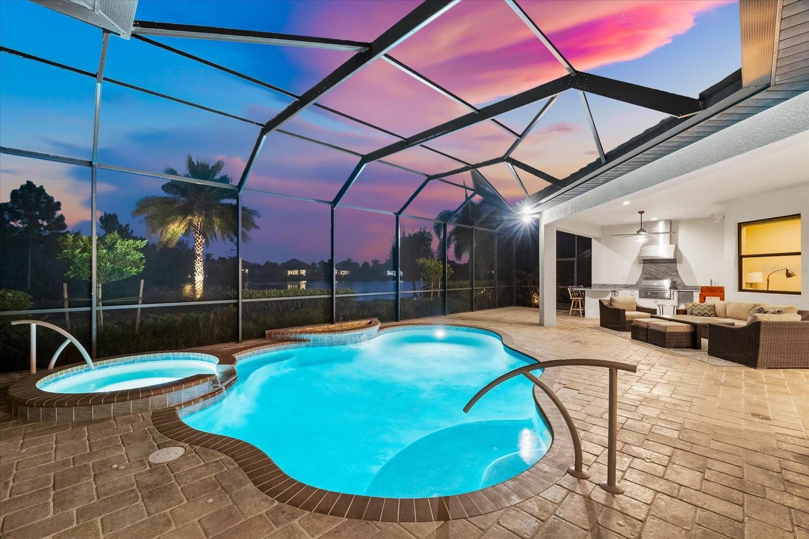 Under contract-accepting backup offers. Welcome to the epitome of luxury living in Country Club East! Nestled in the gated Prestbury neighborhood ofCountry Club East within Lakewood Ranch, the nation's #1 multi-generational master-planned community---thiscustom 2,852 sq.ft. Baypointe Model is a true one-of-a-kind masterpiece. Built by the award-winning LeeWetherington Homes, this residence sits on an expansive, beautifully landscaped 11,663 sq.ft. homesite, offeringsophistication, privacy, and breathtaking water views. Designed exclusively for the current homeowners, thisunique home features a custom elevation and thoughtful interior modifications, making it truly unparalleled in thecommunity. The residence offers 3 bedrooms, 3 bathrooms, a den, a bonus room, and a split 3-car garage creatinga perfect blend of luxury and livability. Step through the grand double-door entry and be greeted by an open-concept great room showcasing tranquil water views through expansive sliding glass doors that seamlessly connectthe indoors with an exceptional outdoor living area. The lanai is an entertainer's dream featuring a fully equippedoutdoor kitchen with grill, refrigerator, ice maker, and sink, plus a heated, self-cleaning saltwater pool and spa withhandrails for comfort and safety. Inside, every detail reflect refined craftsmanship---from coffered and trayceilings, crown molding, and illuminated niches to wood-like ceramic tile, designer lighting, and custom windowtreatments. The home also features abundance storage with ventilated wood shelving, a built-in "drop zone, "anda climate-controlled storage room---your private "Florida basement." The gourmet kitchen is a showpiece,featuring light wood cabinetry, soft-close drawers and pullouts, elegant granite countertops, a five-burner gascooktop with stainless hood, and an oversized blue island with seating for four. A bar/coffee station with glassfront cabinets and lighting adds both functionality and style, while the adjacent dining area provides serene viewsof the lanai and pool. The owner's retreat is a sanctuary, enhanced with a seating area, private pool access, andtwo custom closets with soft-close drawers. The spa-like ensuite includes dual granite vanities, framed mirrors,porcelain sinks, and a luxurious walk-in shower with a unique drying area---plus plumbing in place for a futuresoaking tub. Two additional bedrooms and bathrooms provide privacy and comfort for guests, while the den provides flexibility for a home office or reading room. The bonus room overlooking the pool andspa completes this exceptional layout. Built for peace of mind,a whole-home generator, a comprehensive alarm system, whole-home water filtration and softener, in-wall pestcontrol, and a 3-car split garage with epoxy flooring and attic access. Located within Country Club East, residentsenjoy resort-style amenities including three sparkling pools, a fitness center, and clubhouse---all surrounded bylush, mature landscaping. Optional golf membership available. Conveniently located near Sarasota's world-classbeaches, fine dining, arts, and entertainment, as well as A+ rated schools and top medical facilities, this residenceperfectly captures the essence of luxury Florida living. Don't miss your opportunity to own this one-of-a-kindestate home in Country Club East---where elegance, comfort, and resort-style living await.