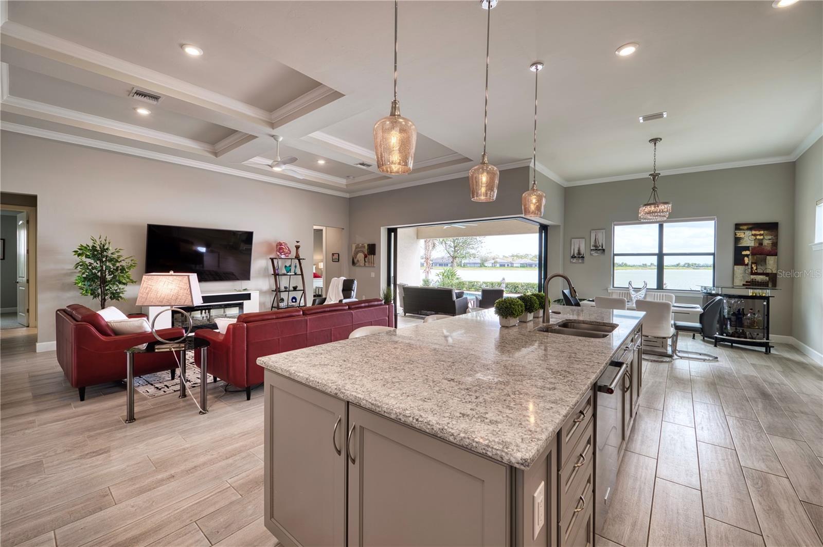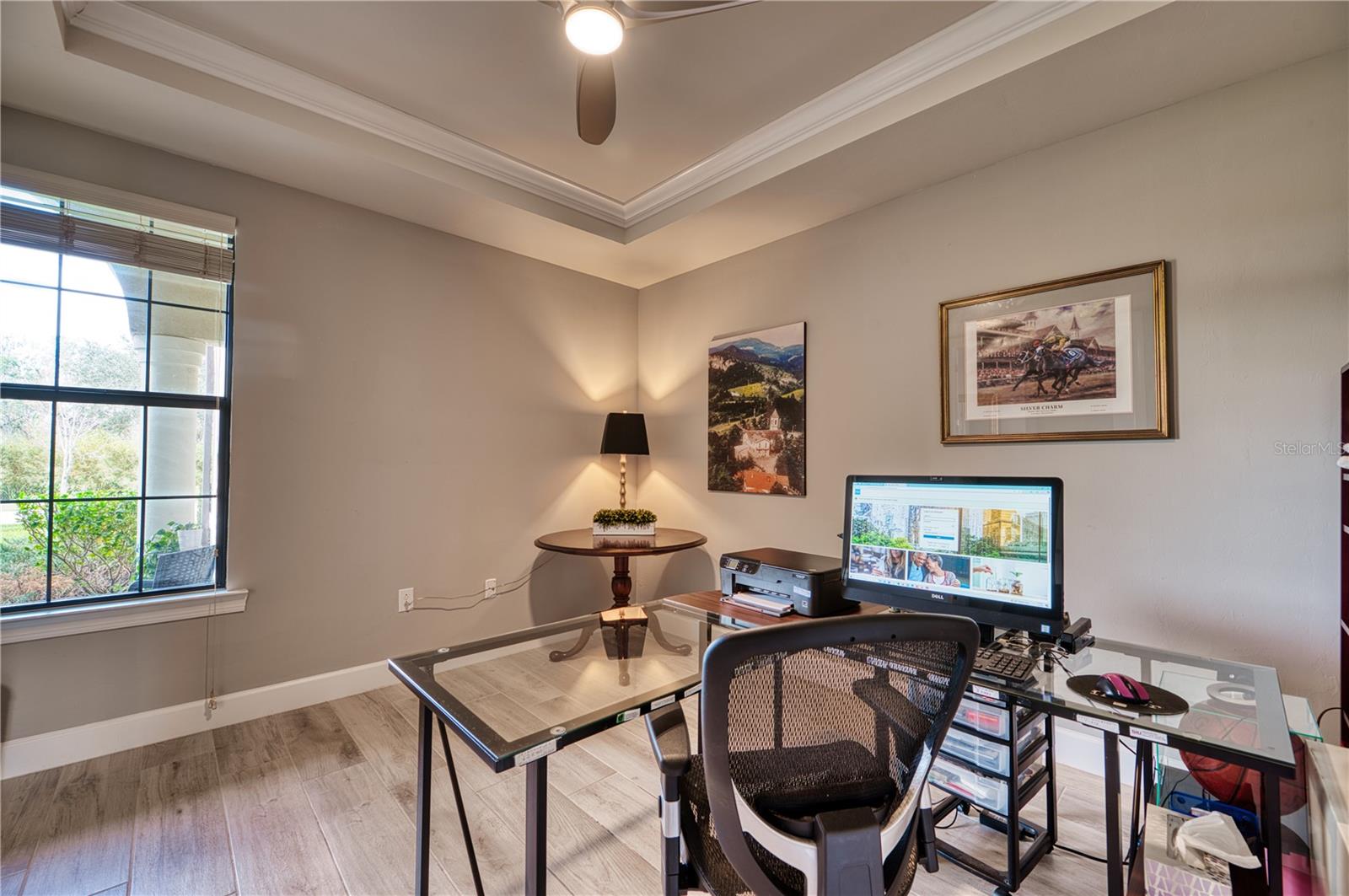 Welcome to this stunning home in the highly sought-after neighborhood, Shoreview at Lakewood Ranch Waterside. Offering breathtaking lake views, high-end finishes, and resort-style amenities, this 3-bedroom, 3-bathroom residence is designed for both comfort and elegance. The thoughtfully designed Pinnacle model's open floor plan with 12-foot tray ceilings, pocketed zero corner sliders, crown molding, and wood look plank tile floors add timeless sophistication. A dedicated office/den is perfect for remote work or a quiet retreat. Impact windows and doors afford enhanced safety and peace of mind. The gourmet kitchen boasts a walk-in pantry, Kitchen Aid Stainless steel appliances, 5 5-burner gas cooktop, a huge island, and quartz countertops for a sleek, modern feel. Spacious cabinetry and high-end finishes ensure both style and functionality. The generously sized primary bedroom has serene lake views. The primary bathroom is luxurious with a frameless shower door, private water closet, and premium finishes. Additional bedrooms and baths provide comfortable spaces for family and guests. The private pool and spa are perfect for relaxation and entertaining. A new pool cage with a Clearview screen will be installed soon. The large, covered lanai is perfect for enjoying Florida's beautiful weather. Lawn maintenance is included in your HOA as well as a dog park and access to a resort-style amenity center with a community pool and spa, fitness center, firepits, kayak launch, lighted tennis and pickleball courts. This vibrant community offers year-round events such as Bridge, Euchre, Book Club, Bunco, Yoga, Mahjong, Afternoon Tea, and more. Shoreview is one of ten neighborhoods located in Waterside, Lakewood Ranch's first village in Sarasota County. Waterside Place is just a mile away with restaurants, shops, sand volleyball, and a splash park. You won't want to miss Food Truck Wednesday nights or the Farmers Market on Sunday mornings. Siesta Key and Lido Beaches are just a short drive away. This home offers the perfect blend of luxury, comfort, and an active lifestyle in a prime location. Lakewood Ranch has been named the #1 multi-generational community in the nation.