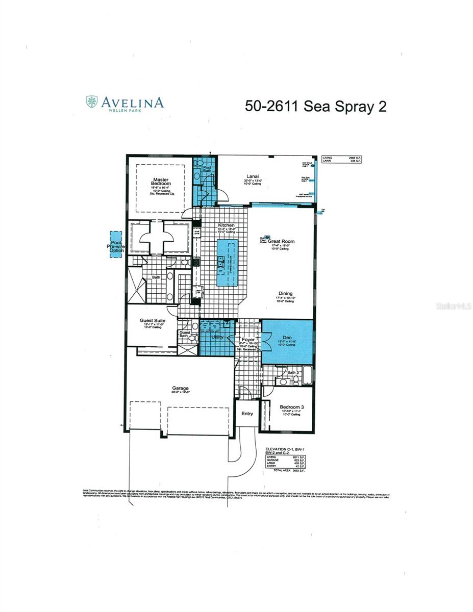 Under Construction. The Sea Spray 2 offers an open-concept floor plan designed for modern Florida living. The spacious kitchen and great room feature a large island--perfect for gathering with family and friends. A huge walk-in pantry provides ample storage and convenient access for the home chef.Enjoy views of the sparkling pool and screened lanai with brick pavers, privacy wall, outdoor kitchen rough-in, and a peaceful natural wooded preserve. The luxurious owner's suite features two walk-in closets and a large walk-in shower. A convenient pool bath is located off the kitchen, plus an additional half bath for guests. Beautiful Level 4 wood-look tile flooring flows throughout the main living areas, and quartz countertops add a touch of elegance. This home combines luxury, quality, and comfort to perfectly capture the Florida lifestyle.