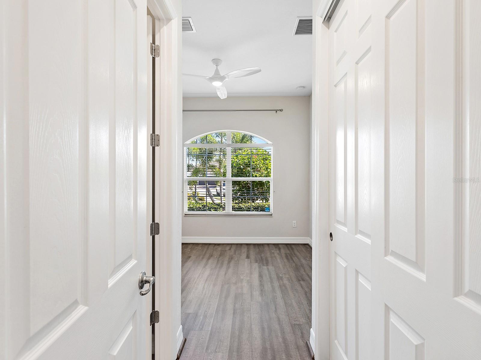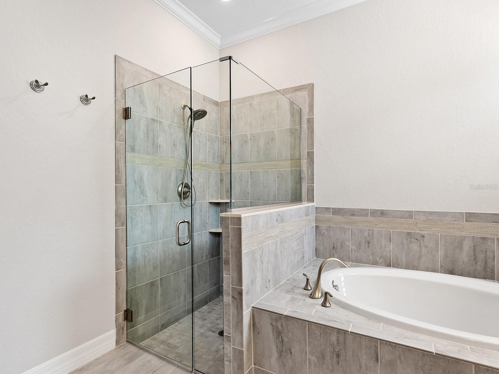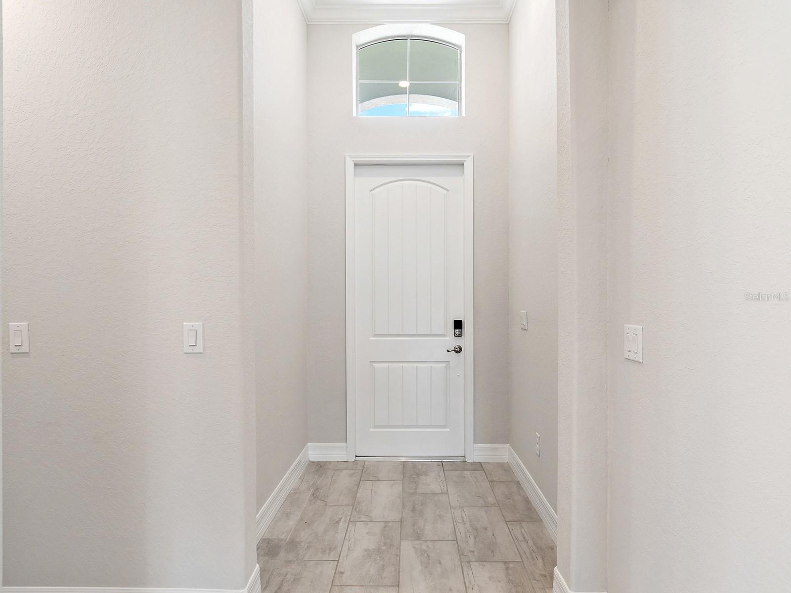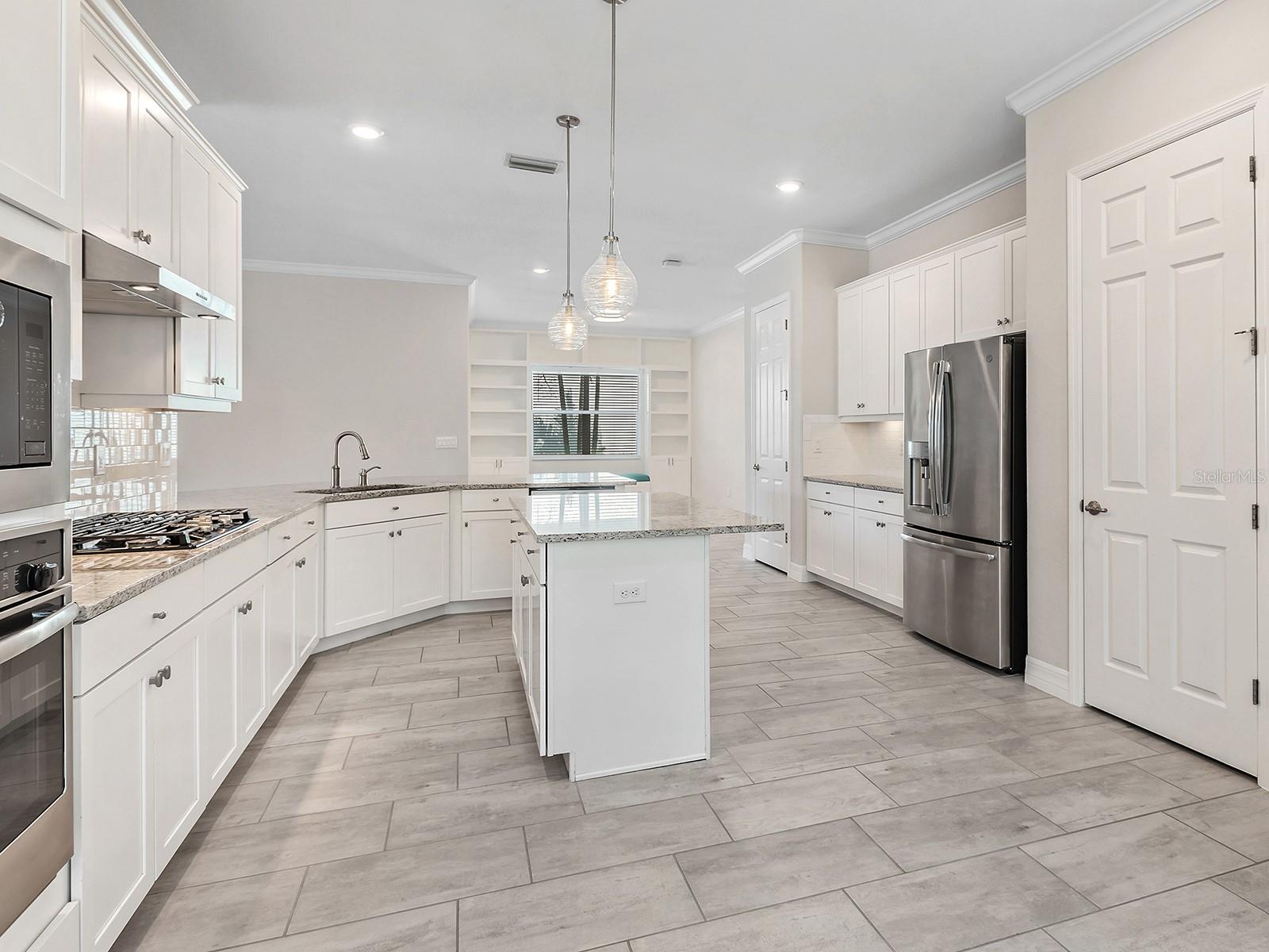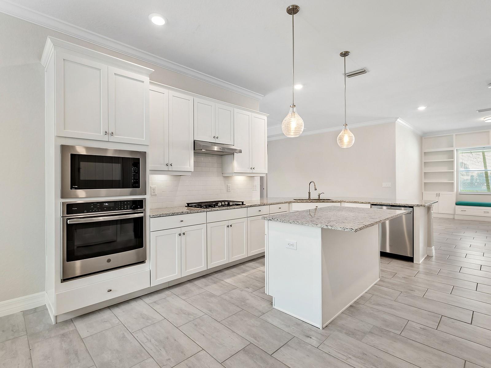 Under contract-accepting backup offers. Stunning waterfront home in Arbor Grande. Welcome to this beautifully appointed Tivoli model home built in 2019, offering an ideal blend of comfort, elegance and modern design. On a premium cul-de-sac waterfront lot offering exceptional privacy and tranquil views surrounded by mature trees and lush landscapes. Enjoy a serene setting with no through traffic and proximity to Bob Gardner Park, a one-mile linear park featuring dog parks, paved nature trails, a gravity swing, playground, disc golf, soccer and baseball fields, and picnic pavilions. Inside the home, you'll find a newly painted, spacious open-concept floor plan with 10-foot ceilings, crown moldings, tray ceilings, and plank tile flooring in a neutral greige tone throughout the main living areas. A wall of sliding glass doors seamlessly connects the great room to the screened lanai, creating an indoor-outdoor flow for entertaining. The lanai features a sparkling saltwater pool, heated spa, outdoor shower, a fully equipped outdoor kitchen with a stainless-steel gas grill and vent, refrigerator and LED color-changing pool cage lighting. The chef's kitchen boasts white cabinetry, granite countertops with an expansive prep island, a suite of stainless appliances, including a gas cooktop, built-in oven and microwave, and a new dishwasher (October 2025). The eat-in dining area is conveniently off the kitchen, and a breakfast bar provides additional seating for casual dining. The flex space off the foyer can serve as a formal dining room or home office. The home offers four bedrooms and three full baths, including a spacious primary suite with tray ceiling and abundant natural light. The primary bedroom en-suite bath features a double sink vanity, large soaking tub and walk-in shower with beautiful neutral walls tiles and a seamless glass shower door. Bedroom 4 includes a Murphy bed and luxury vinyl plank flooring, ideal for guests or a home office. Bedroom 2 features a wood accent wall, and three bedrooms have new carpets, October 2025. Additional features include a laundry room off the kitchen with new washer and dryer included. Oversized three-car garage with Wi-Fi compatible openers, NEMA 14-50 wall charger for electric vehicles and wall organization racks. The stone paver driveway and pool deck, exterior stone accent walls and tile roof give this home a custom look. Residents of Arbor Grande enjoy many amenities within their gated community, including a lifestyle director, heated resort-style pool with lap lanes and heated spa, clubhouse with kitchen and gathering room, a fitness center, sand volleyball and bocce ball courts, community park and dog park, walking paths, and yard maintenance is included in HOA fees. See this resort-style living in one of the area's desirable communities. It could be just what you have been looking for!