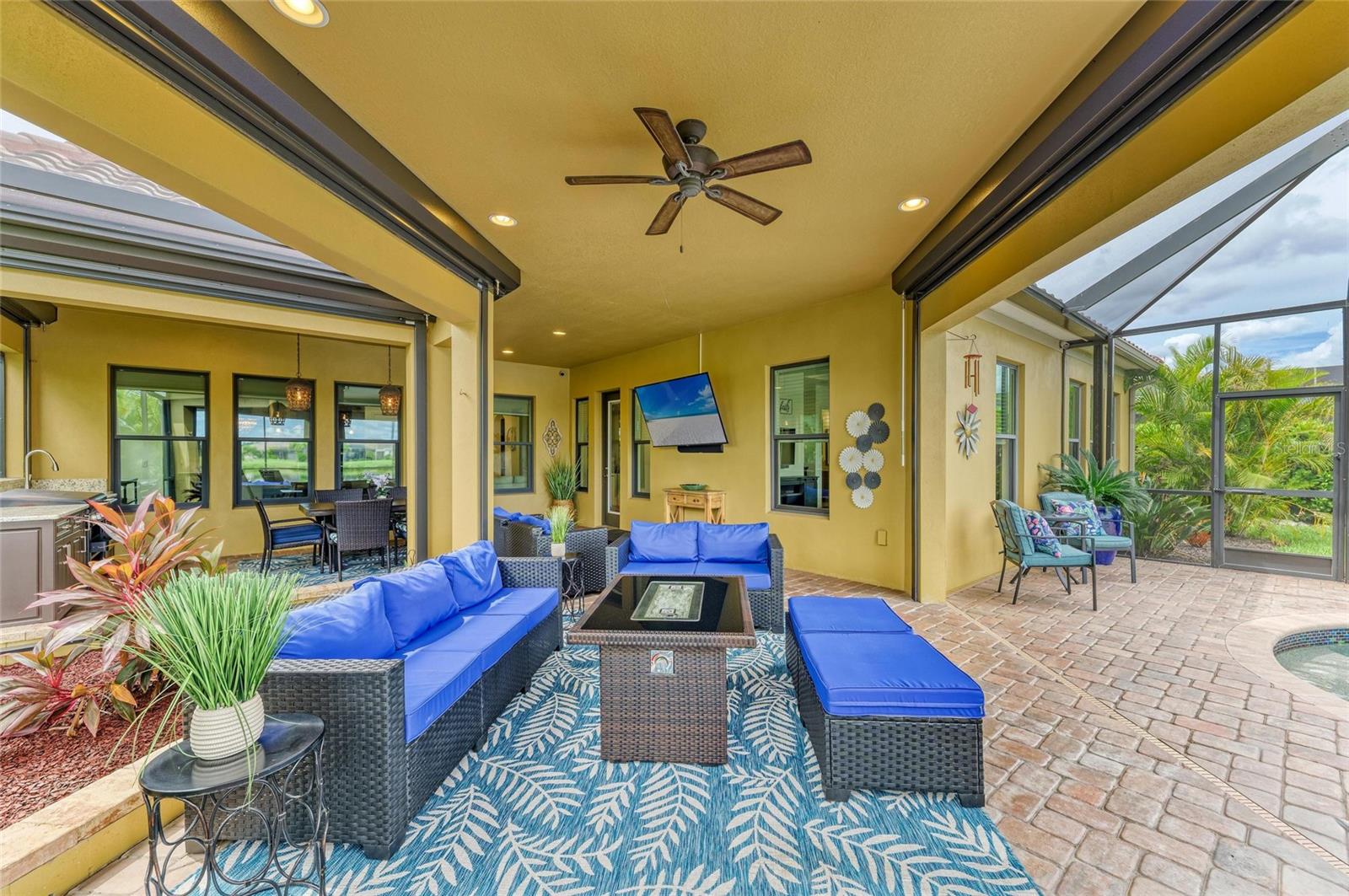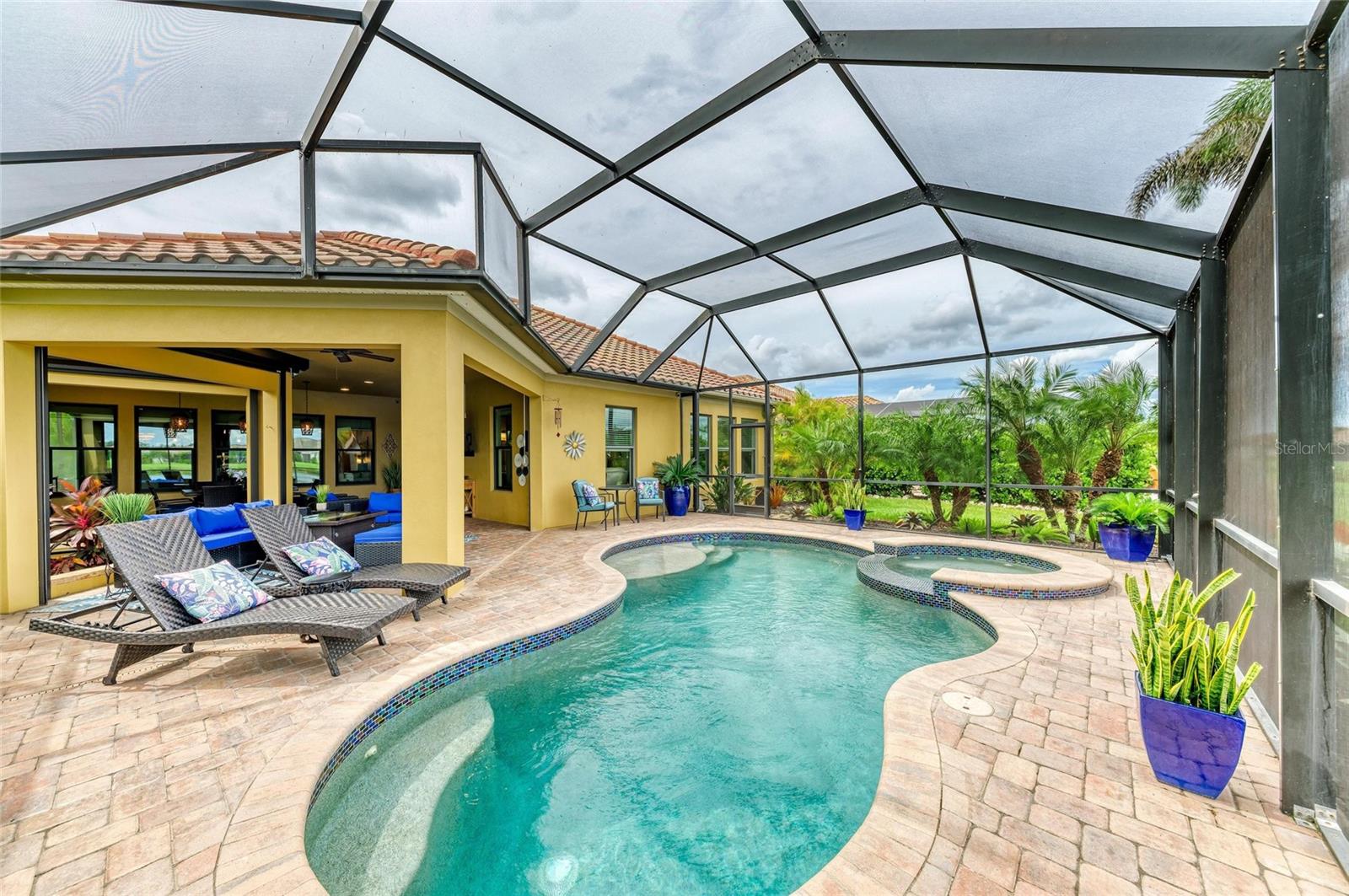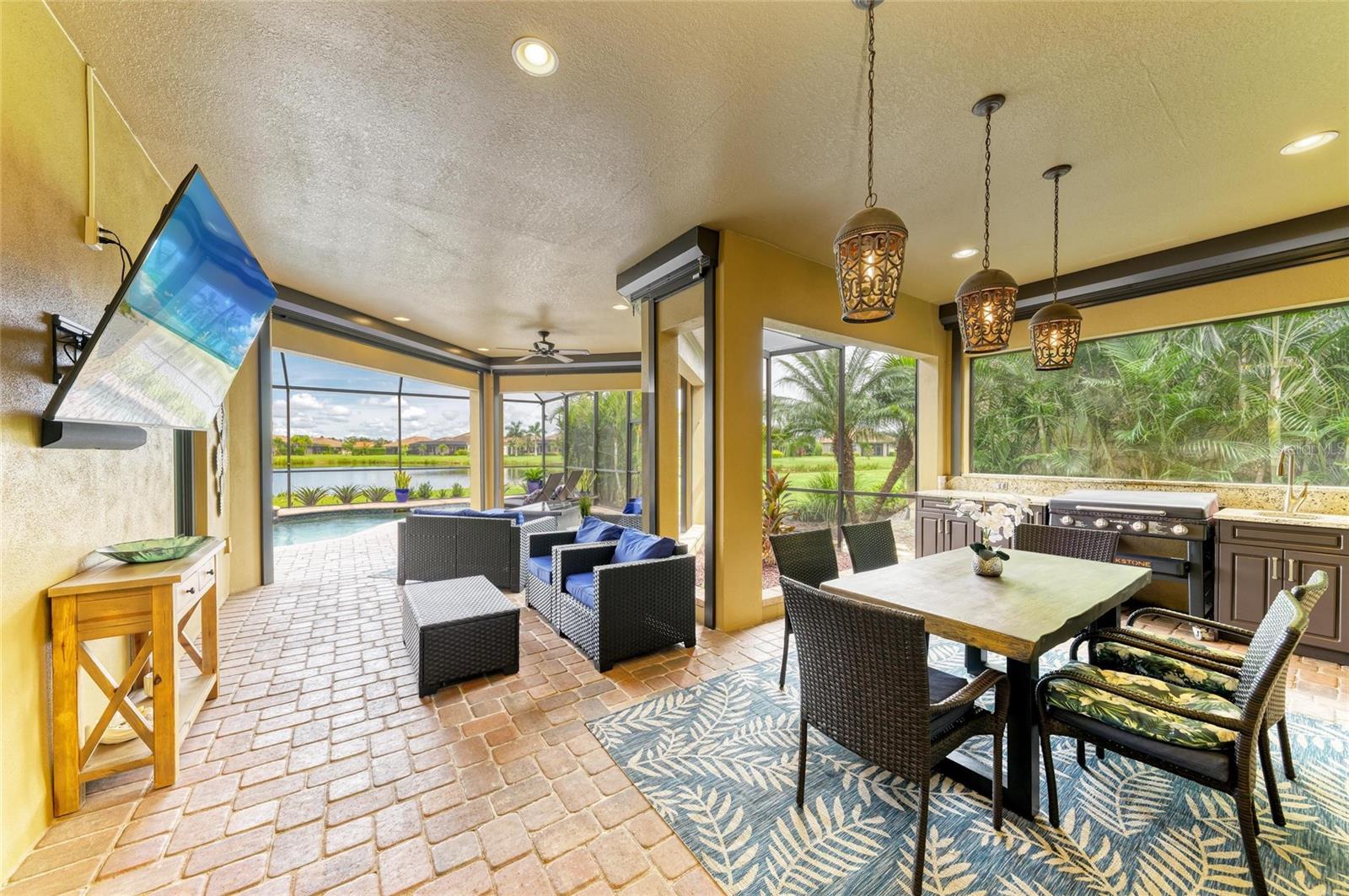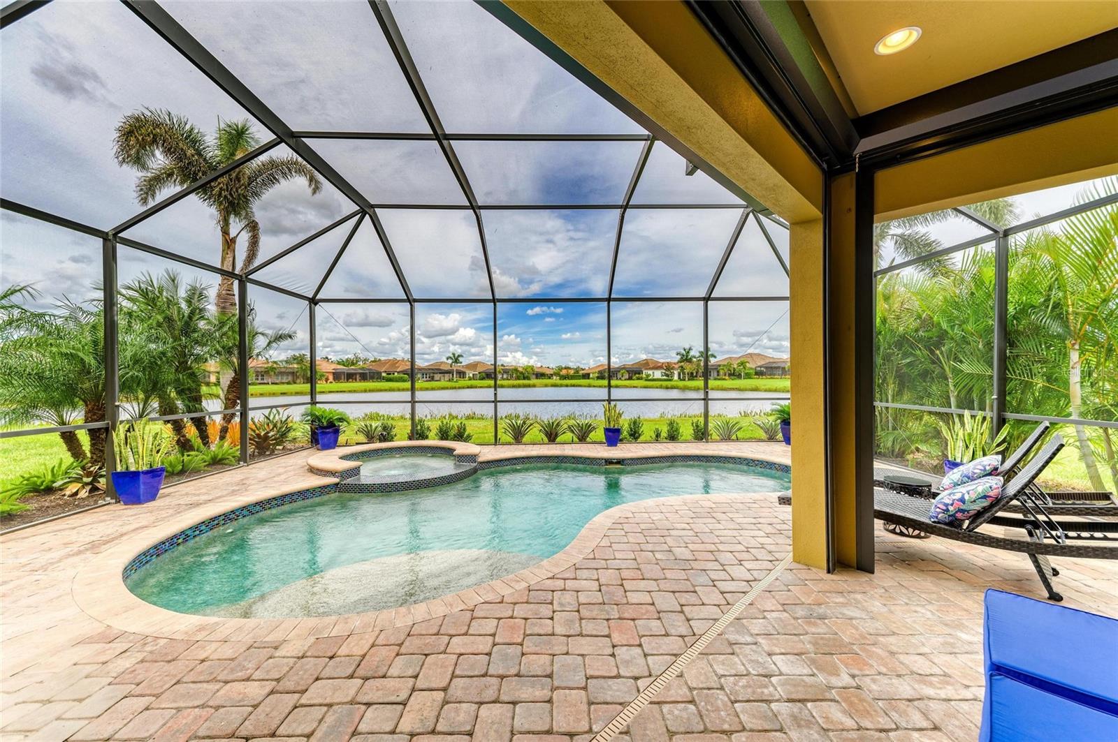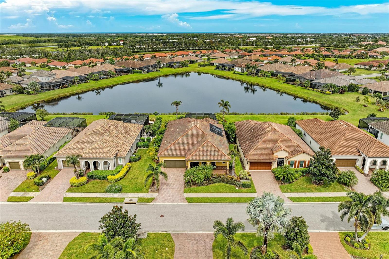 Why wait to build? This stunning Siesta floor plan is loaded with premium upgrades that would cost thousands more today--plus it's move-in ready! This 3BR, 2.5BA plus den residence offers impact-resistant windows & doors, so no more hassle with heavy shutters. The expansive great room showcases a custom stone entertainment wall with cabinetry and fireplace, coffered ceilings, crown molding, and wood-look tile flooring, creating a warm yet elevated living space.The chef's kitchen impresses with its extended island, espresso wood cabinetry, granite countertops, backsplash, stainless appliances, wall ovens, gas cooktop, and walk-in pantry--perfect for hosting.Step outside and enjoy true Florida living with a solar-heated saltwater pool & spa overlooking wide lake views, along with a complete outdoor kitchen featuring a Blackstone grill, sink, refrigerator, and polymer cabinetry. Added peace of mind comes with electronic hurricane shades enclosing the entire covered lanai area.The oversized primary suite provides a luxurious retreat with a free-standing soaking tub, Roman shower, and a massive walk-in closet. Two additional bedrooms share a convenient Jack & Jill bath, while the den offers flexible space for a home office or media room. The home also features an expanded laundry room, and an enlarged garage with a 4' extension and epoxy flooring. The curb appeal is unmatched with enhanced landscape lighting, expanded driveway, screened front entry, paver porch, and meticulous upkeep.Rosedale offers something for every lifestyle--whether active or relaxed. Social membership includes tennis, bocce, fitness center with classes & trainers, junior Olympic pool, 22,000 sq. ft. clubhouse, and full-service restaurant with year-round events. Optional golf memberships are also available. HOA fees include cable, internet, lawn care, two 24/7 manned gates, and dog parks.Located just east of I-75, close to UTC, Sarasota/Bradenton airport, top-rated medical facilities, restaurants, and world-class beaches. No CDD fees! Schedule your tour today and experience Rosedale living.
