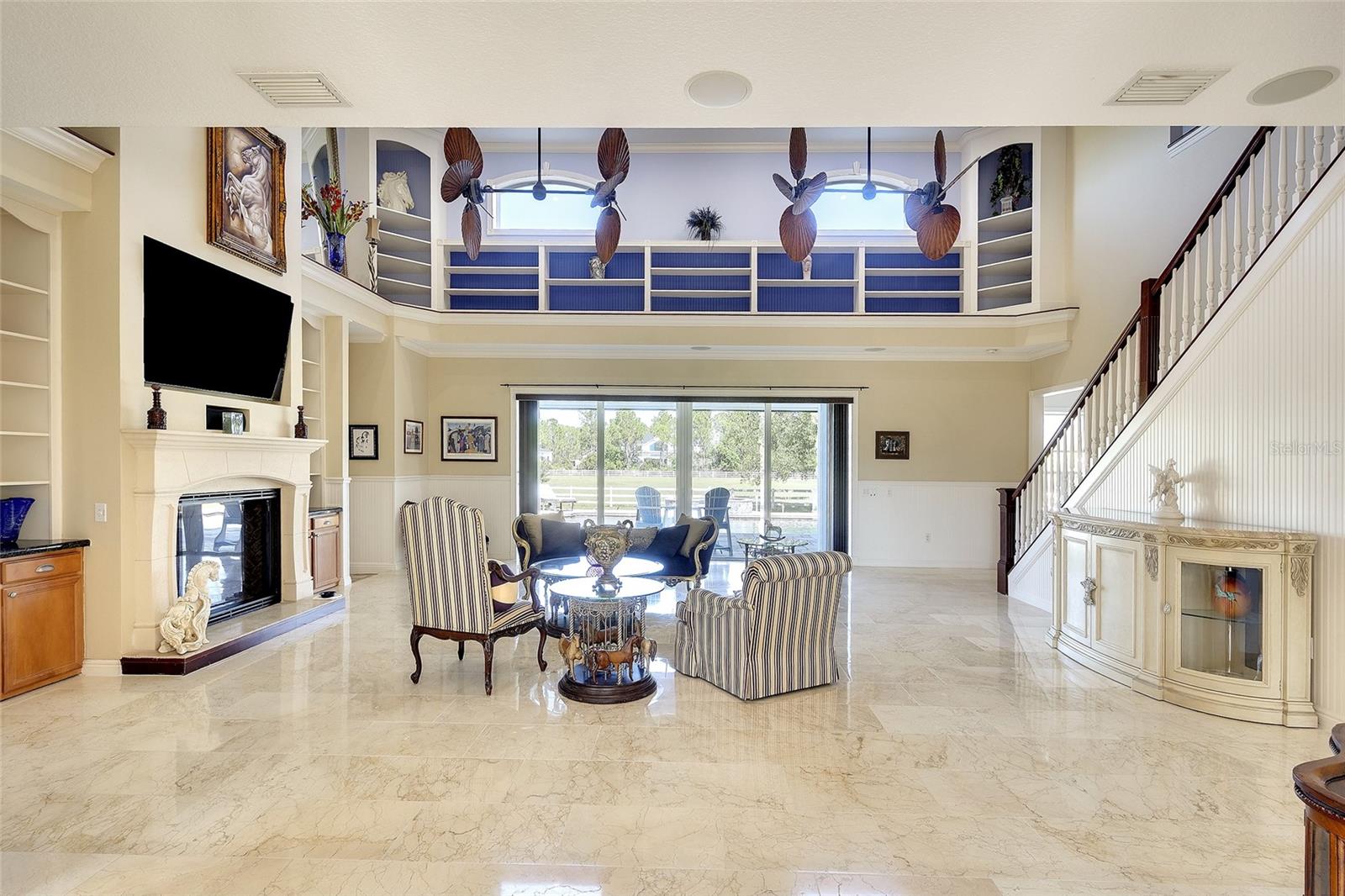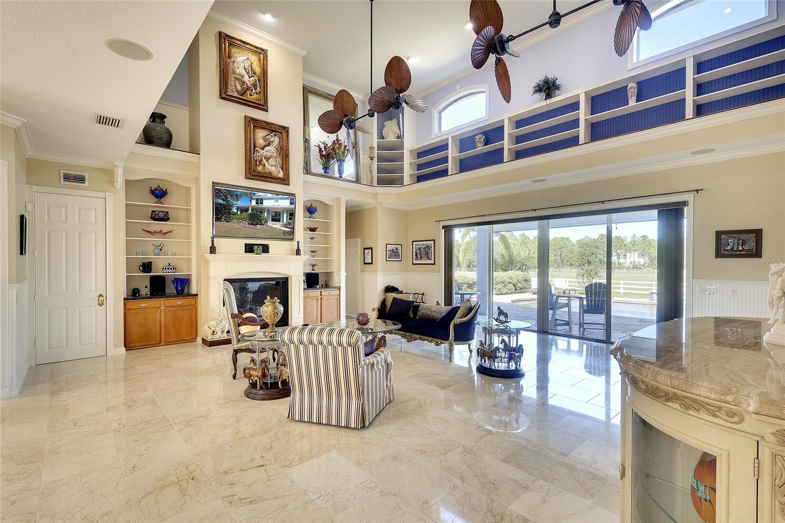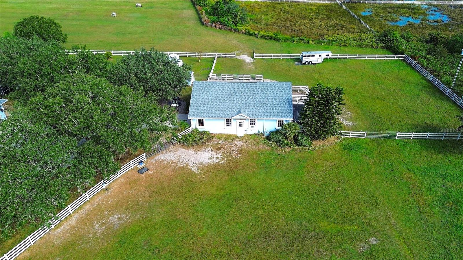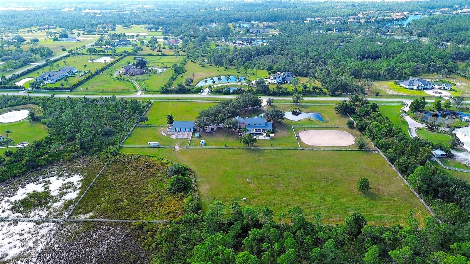 Gated and completely fenced, this elegant traditional home is in the highly sought after neighborhood of Foxwood in Panther Ridge. Its storm ready and perfectly positioned in Zone X, sitting high and dry, with no flood insurance required. Adding to your peace of mind, the house and barn have new roofs in 2025, each with a transferrable warranty. This country estate offers enduring craftmanship. Arrive through the automatic gate to the oak tree lined driveway. The view of pasture and block barn on right and pond on left make for beautiful curbside appeal. Step onto front porch and enter the marble foyer. Once inside you will find an impressive gourmet kitchen with cherry cabinetry, Cambria quarts, a 6 burned DACOR gas range, Sub-Zero refrigerator, Miele dishwasher-ideal for those who love to cook. The kitchen is light and airy with breakfast bar and plenty of room for table to view the saltwater pool with Baha shelf. The first-floor primary suite features a gas fireplace, spa-inspired bath with Mr. Steam shower and brass clawfoot tub, and custom closets with locking cabinetry. The great room has 20-foot ceilings, gas fireplace, marble floors and poplar built-ins open to a screened lanai with an automatic shade for effortless indoor-outdoor living. Additional rooms on first floor are spacious dining room, office, and private bedroom with ensuite bath. Featured upstairs is a large bonus room with bar connecting to a TREX deck overlooking pool with generous travertine surround. Two additional bedrooms and bathroom complete the second floor. The block barn designed with 4 stalls, individual turnouts, automatic fly system, fans, tack room, feed room, wash racks, and RV outlets. The barn offers infinite flexibility and could be converted into a guest house, workshop, or space for a car collector. Both the home and barn feature Miami-Dade hurricane rated windows and doors. For year-round comfort and security, a 30KW Generac generator and Martin garage doors have been installed. It is important to note that Panther Ridge offers miles of groomed private trails with bridges, oak hammocks, pine forests. Horseback riding, hiking and biking are allowed with no motorized vehicles to disturb the beauty of Mother Nature. Panther Ridge is a prime location for the Florida country living lifestyle. The serene setting and proximity to hospitals, schools, shopping, sports parks and only 8 miles from I-75. Bordering on the West side of the community is The Concession Golf Club designed by Jack Nicklaus and Gary Player. Don't miss the opportunity to live and enjoy this home in a unique setting. Places like this are not being built with everything this extraordinary home and property have to offer.