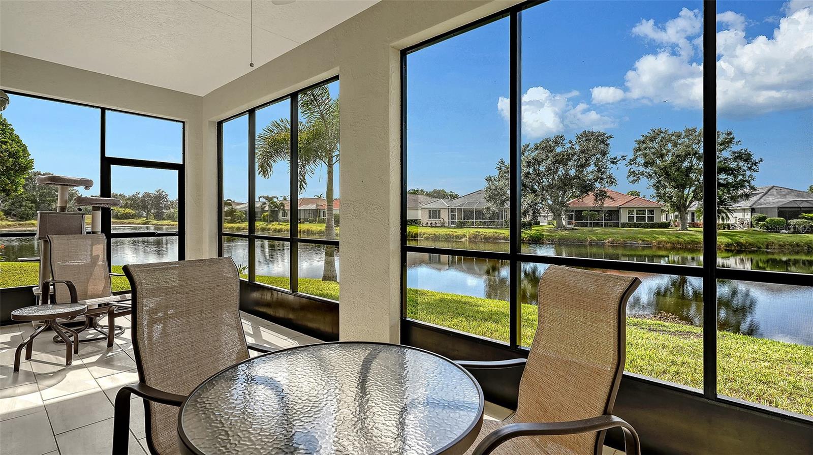 Exceptional water views from this rarely available ground floor condo with attached 2 car garage. 2 generous bedrooms plus an office which could be 3rd bedroom with 2 full baths. Beautiful tile floors throughout main living area. 2 year old AC & new tankless water heater. Kitchen features wood cabinets, granite counters & newer stainless appliances. Botanica is the ultimate in maintenance free living. The fee includes: all exterior maintenance, cable TV, water sewer, exterior insurance, beautiful community center, 2 heated pools, state of the art fitness center & updated clubhouse. This exclusive gated community is conveniently located in the heart of Palmer Ranch near shopping, Legacy bike trail & a short drive to world famous Siesta Key Beaches.