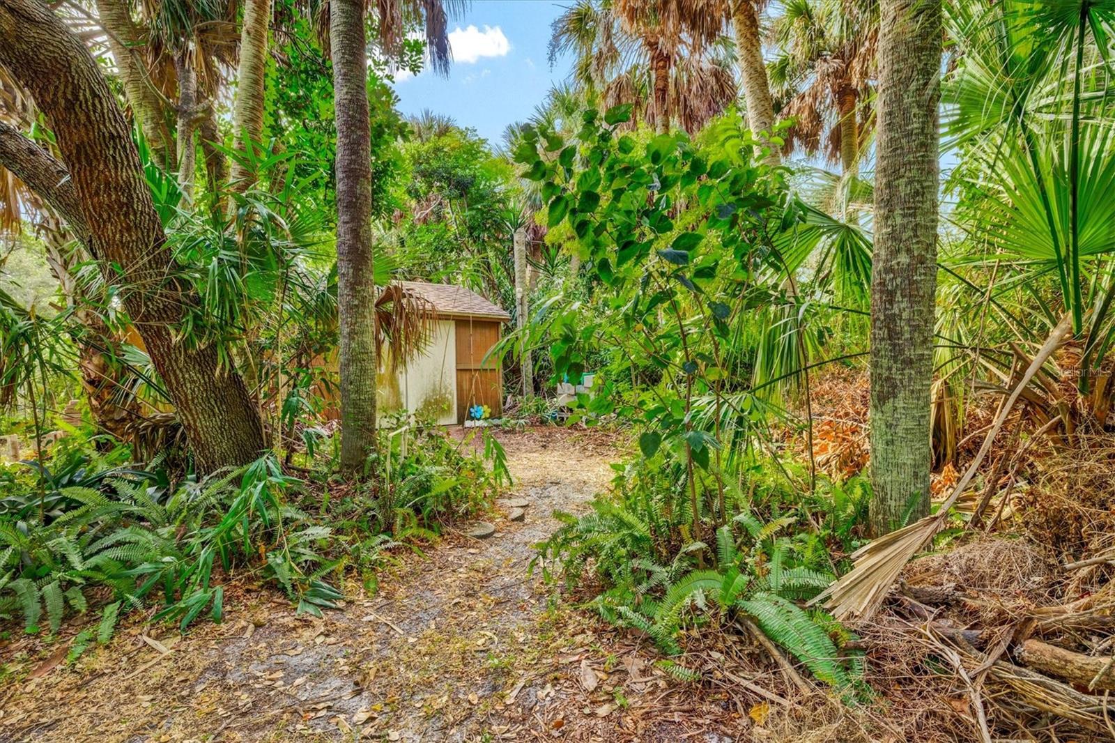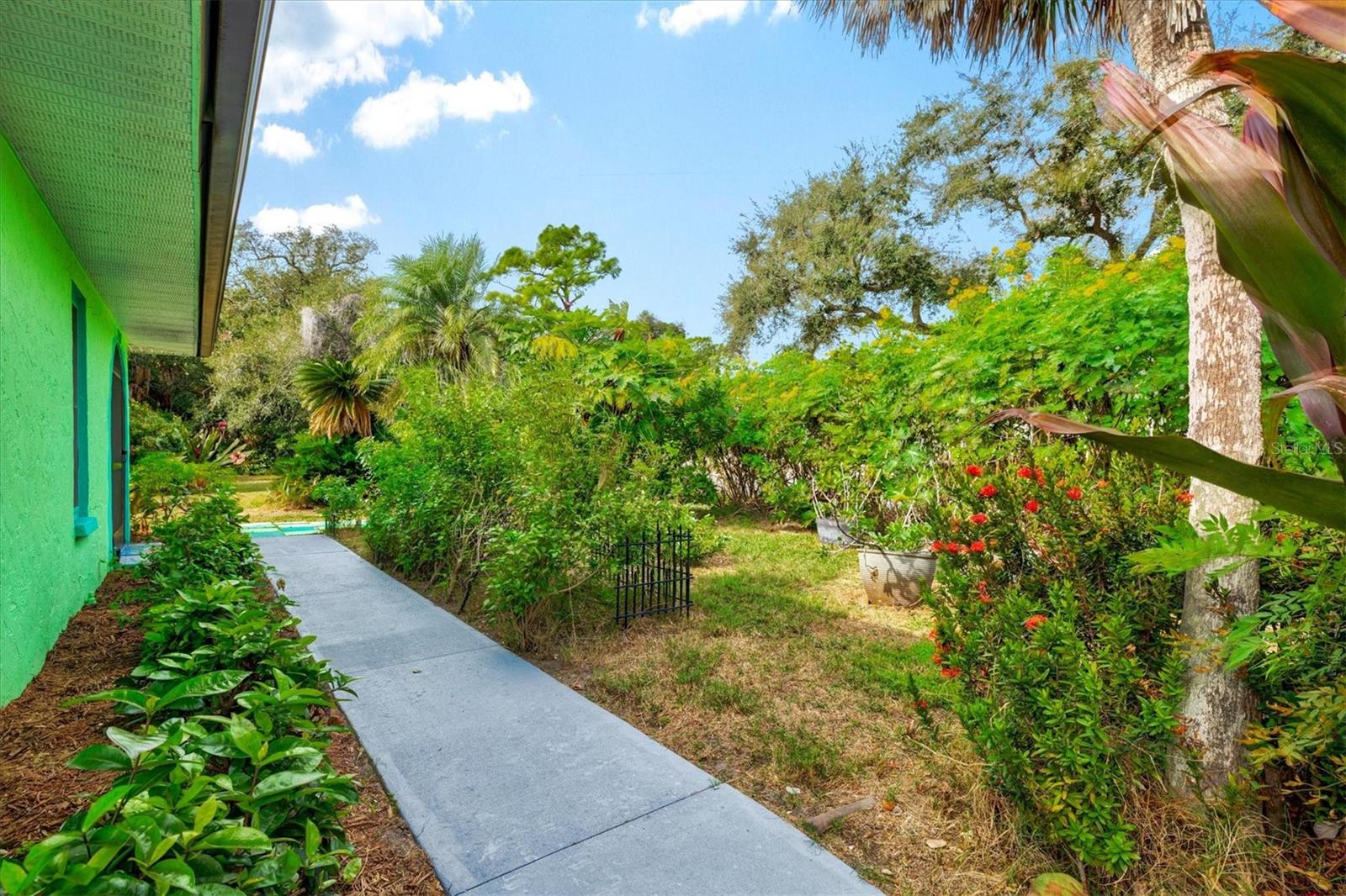 Under contract-accepting backup offers. Incredible Florida Oasis!This beautifully staged 3-bedroom, 2-bath home sits on a spacious corner lot (0.46 acre) surrounded by mature landscaping, including large shade trees, fruit trees, and vibrant flowering plants. The property feels wonderfully private, enclosed by a living fence of Torch Mexican Sunflowers that creates a lush tropical backdrop.Enjoy the ultimate in outdoor living with a screened L-shaped pool featuring a spa and waterfall, plus multiple outdoor areas including a fenced dog area and a large storage shed perfect for projects or extra space.Inside, the home features a split floor plan with spacious living areas, high ceilings, and a Florida room with sliders that open directly to the pool. The large primary suite includes an ensuite bath and walk-in closet, offering comfort and privacy. A 2-car garage completes the package.Located just minutes from parks, shopping, and dining, this home also offers an optional HOA membership providing access to a private beach (via ferry) and a private boat ramp--the perfect setup for embracing the Florida lifestyle.Beautifully staged and ready to show!