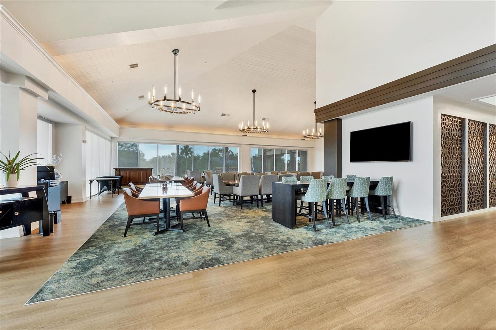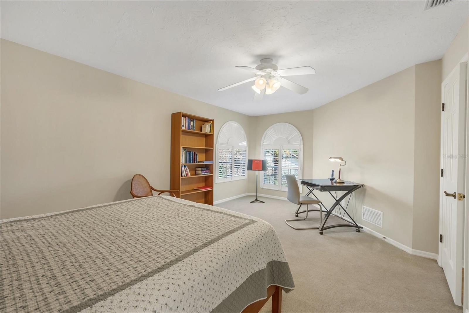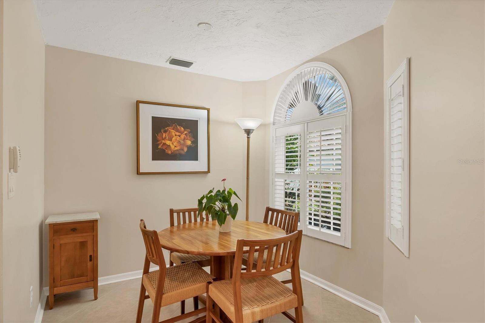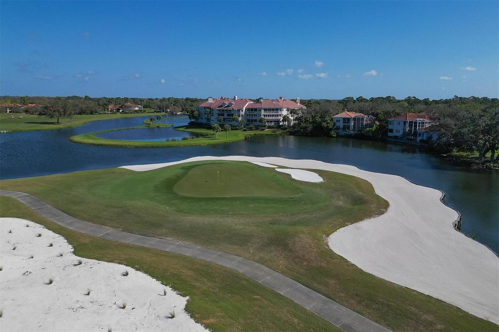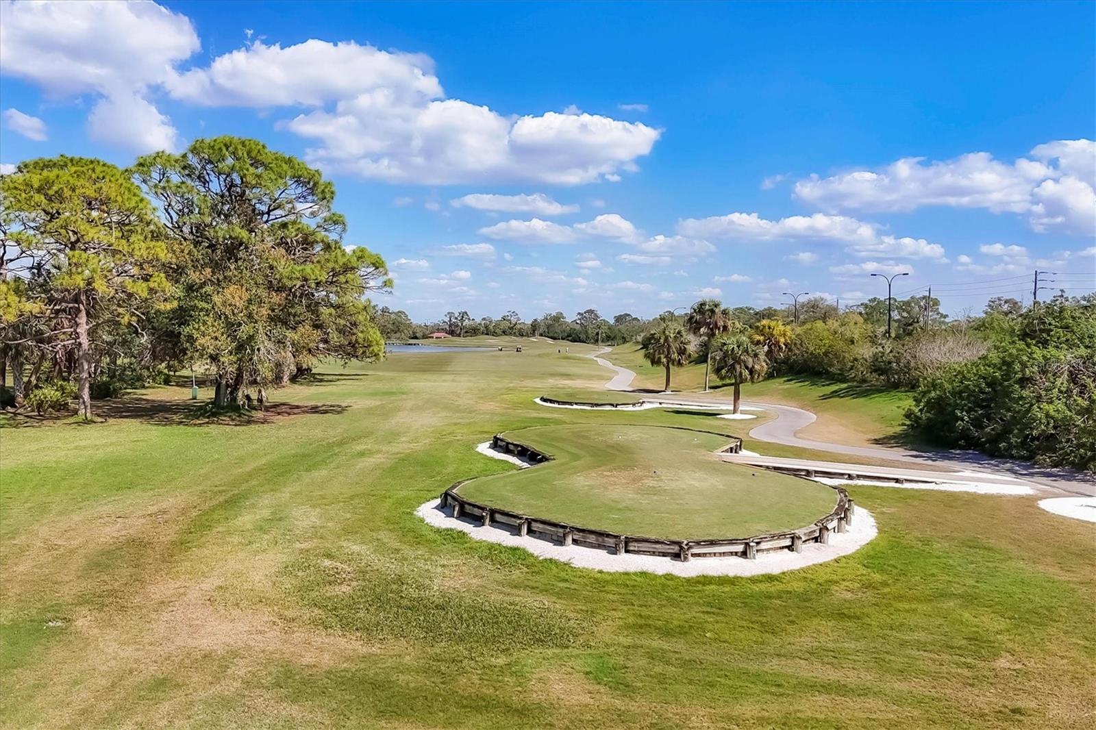 This elegant end-unit villa in the coveted Villa Palmeras section of Prestancia offers breathtaking golf course views and a maintenance-free lifestyle. Overlooking the 14th green and 15th fairway of the renowned TPC Stadium Course, this beautifully appointed residence spans 3,114 square feet of refined living space. A welcoming foyer leads into the expansive living room, where a soaring two-story ceiling, a large skylight, and plantation-shuttered windows create a bright and inviting atmosphere. The formal dining room, framed by three large windows, provides an elegant setting for entertaining. Designed for both style and functionality, the kitchen features upgraded wood cabinetry, stainless steel appliances, granite countertops, and a pantry cabinet, along with a casual dining area bathed in natural light. The primary suite serves as a serene retreat, complete with a vaulted ceiling, engineered hardwood flooring, walk-in closets, and French doors opening to the enclosed Florida room. The en-suite bath offers dual vanities, a walk-in shower, tile flooring, and a generous walk-in closet. Two well-appointed guest bedrooms provide spacious accommodation with plush natural carpet, engineered hardwood flooring and ample closet space, sharing a full bath with an expansive vanity, solid surface countertop, and a tub/shower combination. Upstairs, a versatile space can be used as a den or additional storage. A convenient powder room is located near the kitchen for easy access. Extending the home's living space, the air-conditioned Florida room offers panoramic golf course views and direct access to the spacious yard through a wall of sliders. Additional features include a two-car garage, a utility room, hurricane impact-rated windows and doors, plantation shutters, and tile and engineered hardwood throughout the main living areas. Villa Palmeras residents enjoy access to two community pools and a pool house with covered lounging and dining areas. Nestled within the prestigious, gated community of Prestancia, this villa offers optional TPC membership for golf and social activities. Ideally located minutes to The Legacy Trail, a short drive from Siesta Key Beach, downtown Sarasota, St. Armands Circle, and the picturesque barrier islands, this exceptional home blends luxury, convenience, and resort-style living.