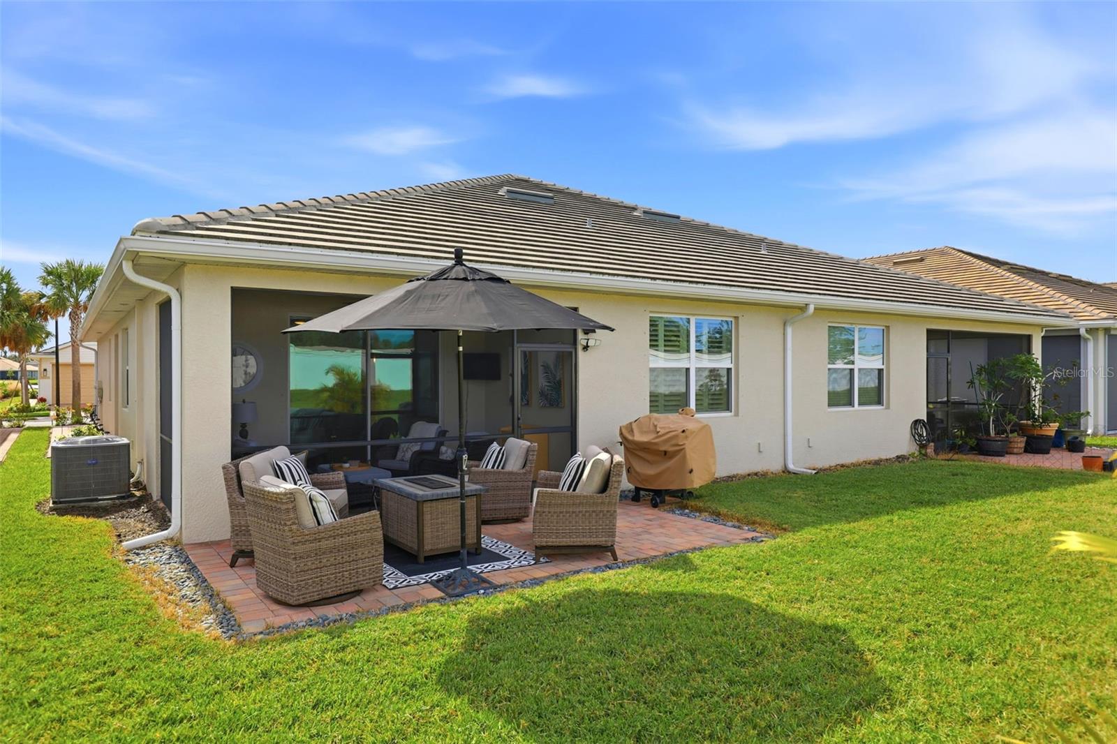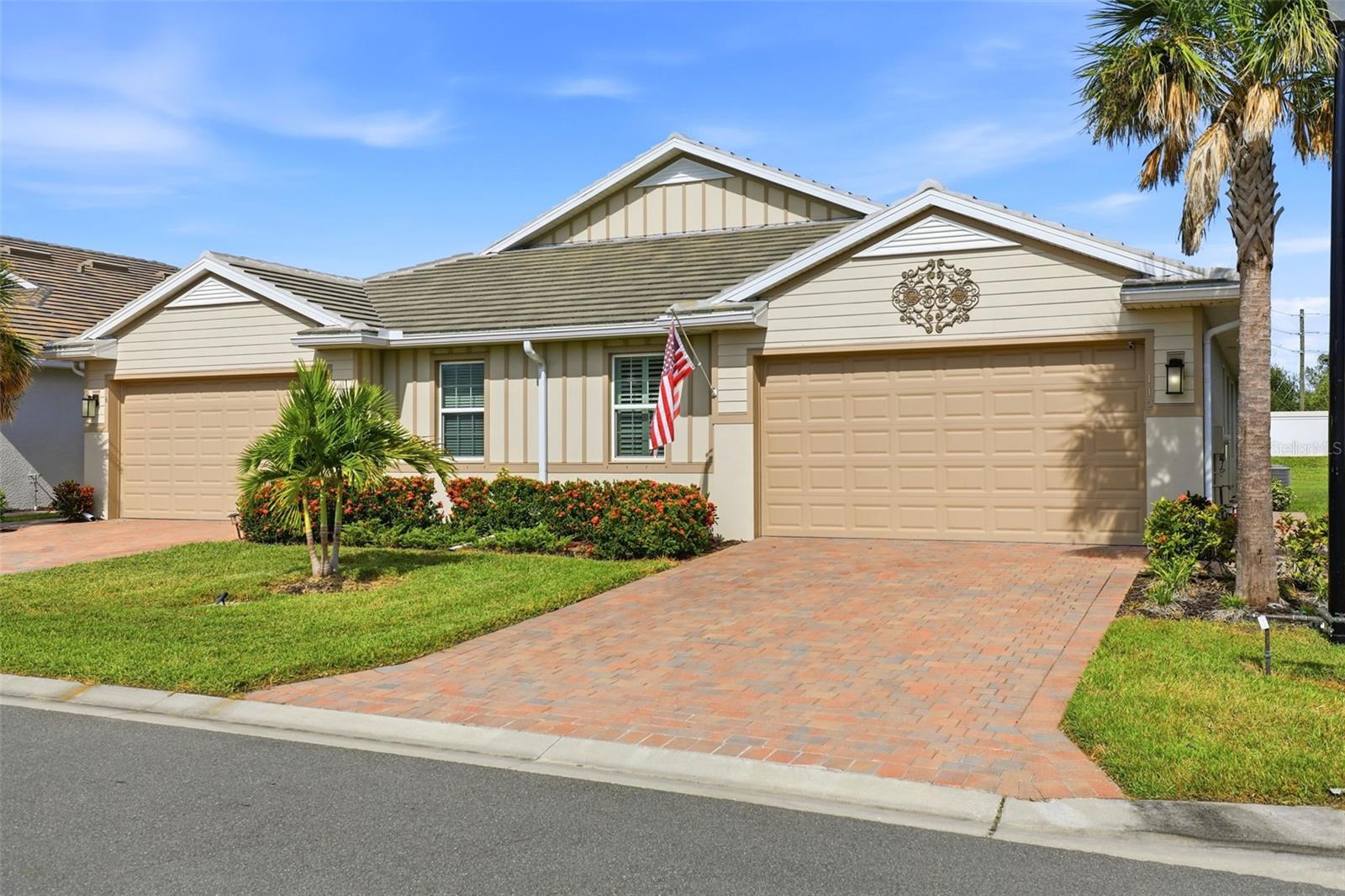 PRICE ADJUSTMENT!! WOW!! Welcome to this Immaculate Nearly New Villa in the Sought-After Gated Resort Community of Palencia. Discover the perfect blend of style, comfort, and convenience in this 3-year-young, single level villa in one of Venice's most desirable gated resort style communities. This beautifully maintained home offers the ease of maintenance free living and access to outstanding amenities including a resort pool, modern fitness center, clubhouse with kitchen, and social lounge which is ideal for gatherings or relaxing with friends and neighbors.Situated in a fabulous location, this home is perfectly positioned just minutes from shopping, dining, and top rated healthcare facilities, the location offers easy access to I-75 and is only 15 minutes from the sandy shores of Venice Beach. You'll also find several scenic golf courses, parks, and nature trails nearby, everything you need for a relaxed, active Florida lifestyle. You will enjoy the inviting interior as you ?step through the front door and into a bright, open concept living space that feels warm and welcoming. The thoughtful layout includes 2 spacious bedrooms, 2 full baths, and a flexible den/office with elegant French doors that can easily serve as a guest room or creative space. The chef-inspired kitchen is a true highlight, featuring quartz countertops, soft-close cabinetry, stainless steel appliances, and designer pendant lighting. It flows seamlessly into the dining and living areas, perfect for entertaining or cozy nights at home.Your primary suite is a private retreat with a custom walk-in closet, dual sinks, and a beautifully finished bathroom. Throughout the home, you'll find tasteful upgrades such as plantation shutters, six ceiling fans, a stylish dining room chandelier, and custom storage solutions that elevate both comfort and functionality. Enjoy the peaceful Florida lifestyle on your screened lanai overlooking a serene setting, complete with an extended paver patio which is perfect for outdoor dining or morning coffee. The two-car garage includes custom cabinetry and plenty of space for storage or hobbies. Additional Features include laundry room with built-in cabinetry, upgraded storage closet system, low HOA fees and a pet-friendly community. Meticulously maintained and gently lived in, this exceptional home combines nearly new construction with thoughtful upgrades and a prime location. Come experience the best of Venice's resort style living and start your next chapter in sunny, carefree Florida!