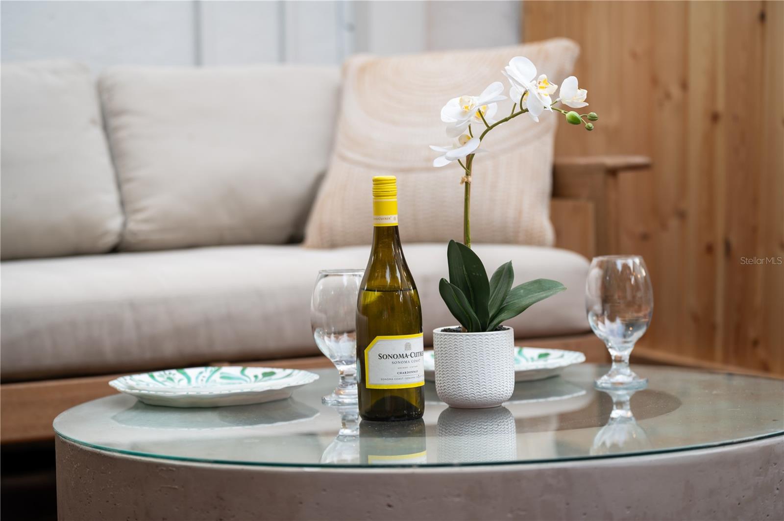 The best of both worlds awaits in historic Laurel Park: a walkable downtown lifestyle paired with the privacy and comfort of a single-family home.1723 Oak Street is a rare offering: an elevated, concrete-block residence with a character-rich Spanish Colonial exterior and nearly 2,900 square feet of light-filled living space. From the picture-perfect front porch, you're welcomed into the main level, where high ceilings and hurricane-rated French doors and windows flood every room with natural light.The kitchen is a true showpiece, blending upscale finishes with coastal-inspired design. A 36" Wolf range and built-in refrigerator complement the Calacatta marble countertops and exotic wood topped island, while an expansive walk-in pantry provides coveted storage. A beverage refrigerator on the island makes entertaining effortless.The semi-open floor plan flows seamlessly between the dining and living areas, creating the perfect environment for gathering in style. A flexible den, ideal as a study, playroom, or media space, is enclosed by French doors.Upstairs, the spacious primary suite offers a private balcony, dual walk-in closets, and a spa-like bath with marble countertops, a soaking tub, and an oversized walk-in shower. Two additional bedrooms share a beautifully appointed full bath and a balcony overlooking the property. The laundry is conveniently located on the same level as the bedrooms.Outside, discover an unexpected oasis in the heart of downtown: a heated PebbleTec plunge pool, brick paver patio, mature tropical landscaping, and lush turf that creates a serene, low-maintenance retreat.A detached structure at the rear of the property provides exceptional flexibility. The upper level hosts a self-sufficient guest suite complete with kitchen, bath, and built-in queen Murphy bed. Below, a two-car garage with a sleek impact-rated glass door not only offers prized garage space but has been finished and air conditioned to function as a home office, fitness studio, or creative flex space (this bonus space is not included in square footage).The property is fully fenced and includes off-street parking in addition to the garage.Located in one of Sarasota's most desirable neighborhoods, you'll enjoy dozens of restaurants, shops, and cultural venues just steps from your door, along with easy access to the waterfront, farmers markets, and year-round festivals and shows.Few homes combine modern quality, neighborhood charm, and exceptional indoor-outdoor living quite like this one. Don't miss this rare opportunity to experience the very best of Laurel Park.