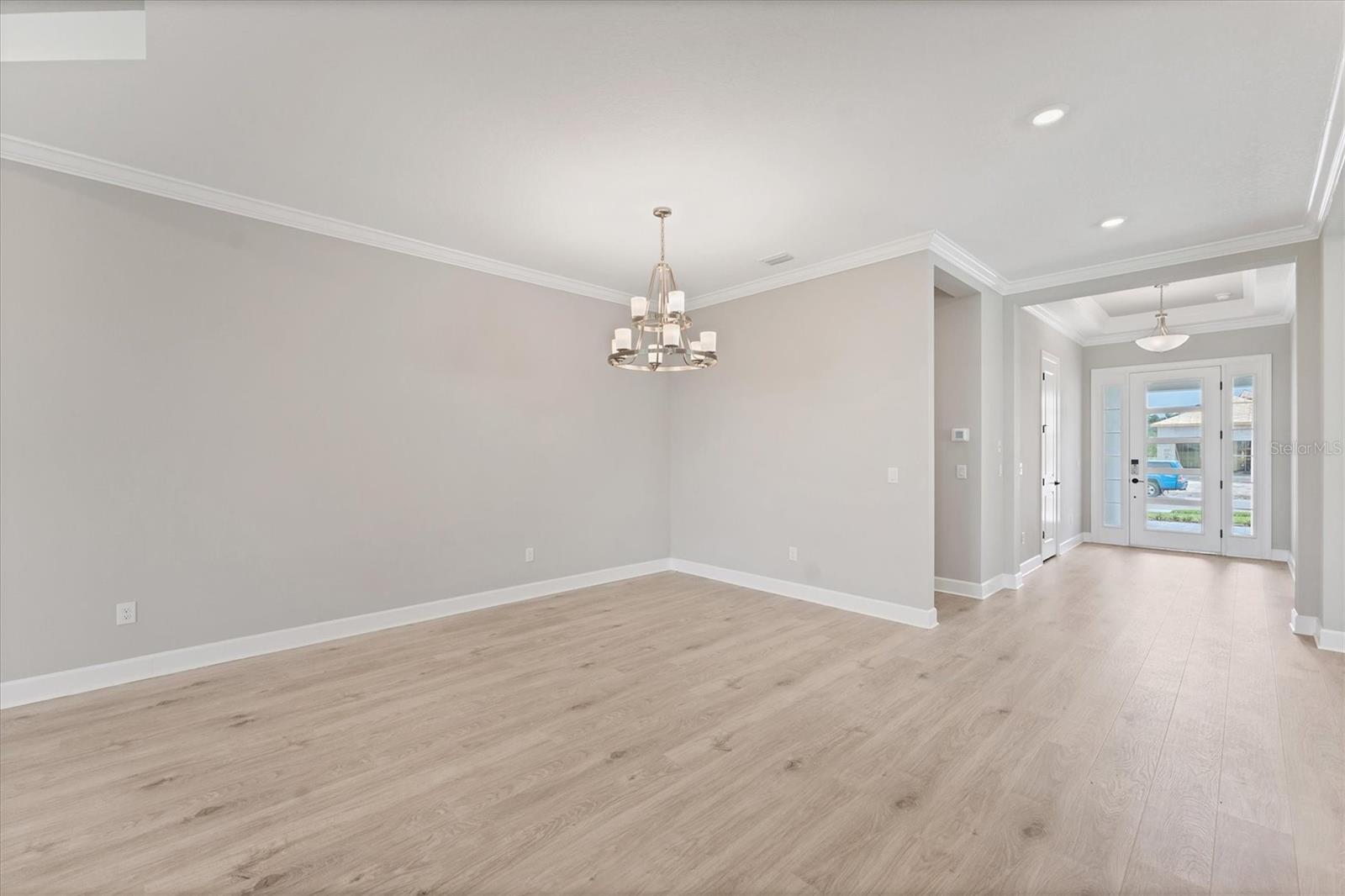 One or more photo(s) has been virtually staged. **GOLF-INCLUDED** Luxury golf home positioned on a private lot with the golf cart path across the fairway.** Live the Florida lifestyle in this beautifully upgraded Lazio model, ideally positioned on the 10th hole in the highly sought after, gated golf community of Esplanade at Azario. With golf membership included and just a short stroll to fabulous amenities, this home offers resort-style living at its finest. Enjoy wine tastings, cooking classes, fine dining, a state-of-the-art fitness center, and a luxurious spa -- all within your own community. Whether you're savoring poolside bites or elegant meals overlooking the fairway, Azario offers a lifestyle like no other. From the moment you arrive, the coastal elevation and glass front door set the tone for the light, bright interior. Inside the home, you'll find 10-foot ceilings, 8-foot doors, tray ceilings, crown molding, and wide-plank light oak flooring throughout. The home offers 3 spacious bedrooms, each with its own en suite bathroom, plus a versatile den perfect for a home office or media room. The gourmet kitchen is a chef's dream, featuring quartz countertops, an apron-front sink, GE gas cooktop and wall oven, under-cabinet lighting, and extended cabinetry under the island for added storage. The open-concept layout seamlessly connects the kitchen, dining, and living areas--ideal for both entertaining and everyday comfort. Two sets of sliding glass doors open onto the expanded covered lanai, blending indoor and outdoor living and showcasing sweeping views of the golf course. The lanai is prepped with gas, electric, and plumbing, making it easy to design your dream pool and outdoor kitchen. The primary suite is privately tucked away at the rear of the home, with tranquil golf course views. The luxurious en suite bathroom features dual vanities, a large walk-in shower, upgraded lighting, and designer finishes. At the front of the home, two additional guest suites offer full baths and total privacy, perfect for visitors. Located in the heart of Lakewood Ranch, you'll be minutes from world-class shopping, dining, "A"-rated schools, miles of walking trails, and the sparkling Gulf Coast beaches. Don't hesitate, book your showing today!