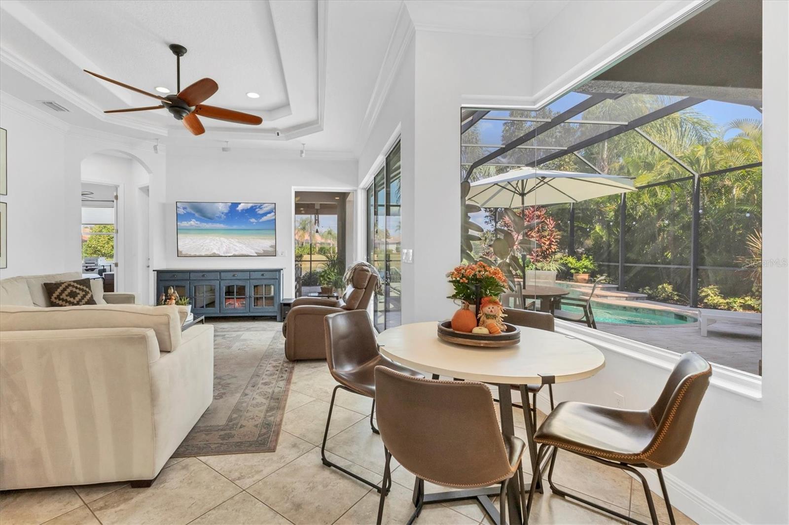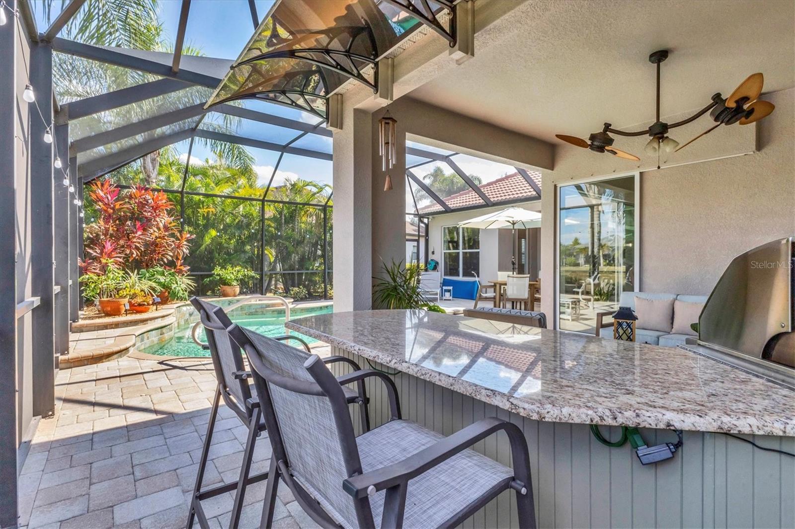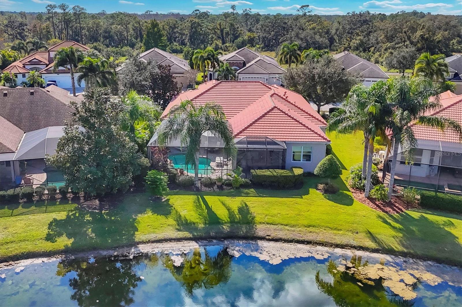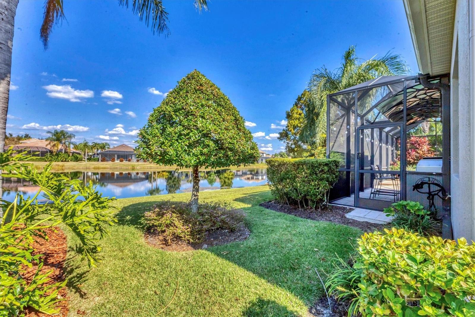 Under contract-accepting backup offers. Come home to the Florida lifestyle in this stunning lakefront pool home in The Ravines at Greenbrook Village. This Lee Wetherington quality built and impeccably maintained 4-bedroom, 3-bath retreat, offers the perfect blend of comfort, elegance, and peace of mind. You'll appreciate the home's bright, light-filled interior, elevated by high ceilings throughout, crown molding, and plantation shutters that enhance its refined style.The beautifully updated kitchen is a showstopper, featuring quartzite countertops, stainless steel appliances including a natural gas cooktop, a fresh tile backsplash, and stylish pendant lighting--perfect for both everyday living and entertaining.Enter into the heart of the home and soak in the expansive lake views, beautifully framed by thermal windows that bring the outdoors in. Enjoy true Florida living in the screened saltwater pool area, complete with a paver deck, built in gas grill, and refrigerator. The natural gas pool heater ensures year-round comfort.The large primary suite has a sitting area with pool and lake views, engineered wood floors, dual vanities, shower and soaking tub and is situated to maximize privacy. This home is designed for convenience and long-term value. The oversized 2-car garage includes an overhead storage rack and pull-down stairs leading to a large, plywood-floored attic area--a rare and highly functional bonus. Major upgrades add further peace of mind, including a new HVAC system (2024), Rheem tankless gas water heater (2023), whole-house water softener (2023), and a Generac 18KW whole-home generator (2022) for uninterrupted comfort. Greenbrook Village is an active community with nature trails, covered play area, sports courts and fields, to name a few of the many amenities. In the heart of Lakewood Ranch, your new home is conveniently located near plenty of shopping and dining options, golf courses, top rated schools and I-75 for easy access to Tampa/St Pete to the north and Sarasota/Naples to the south.Blending thoughtful design, modern upgrades, stunning lakefront living and ideal location, this home is truly move-in ready and waiting to be enjoyed.