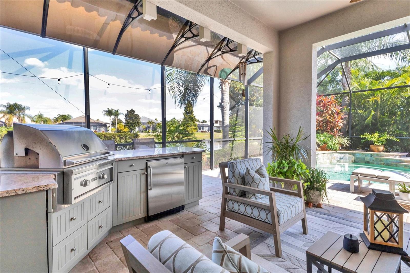 - Exterior: Awning(s), Hurricane Shutters, Lighting, Outdoor Kitchen, Sidewalk, Sliding Doors