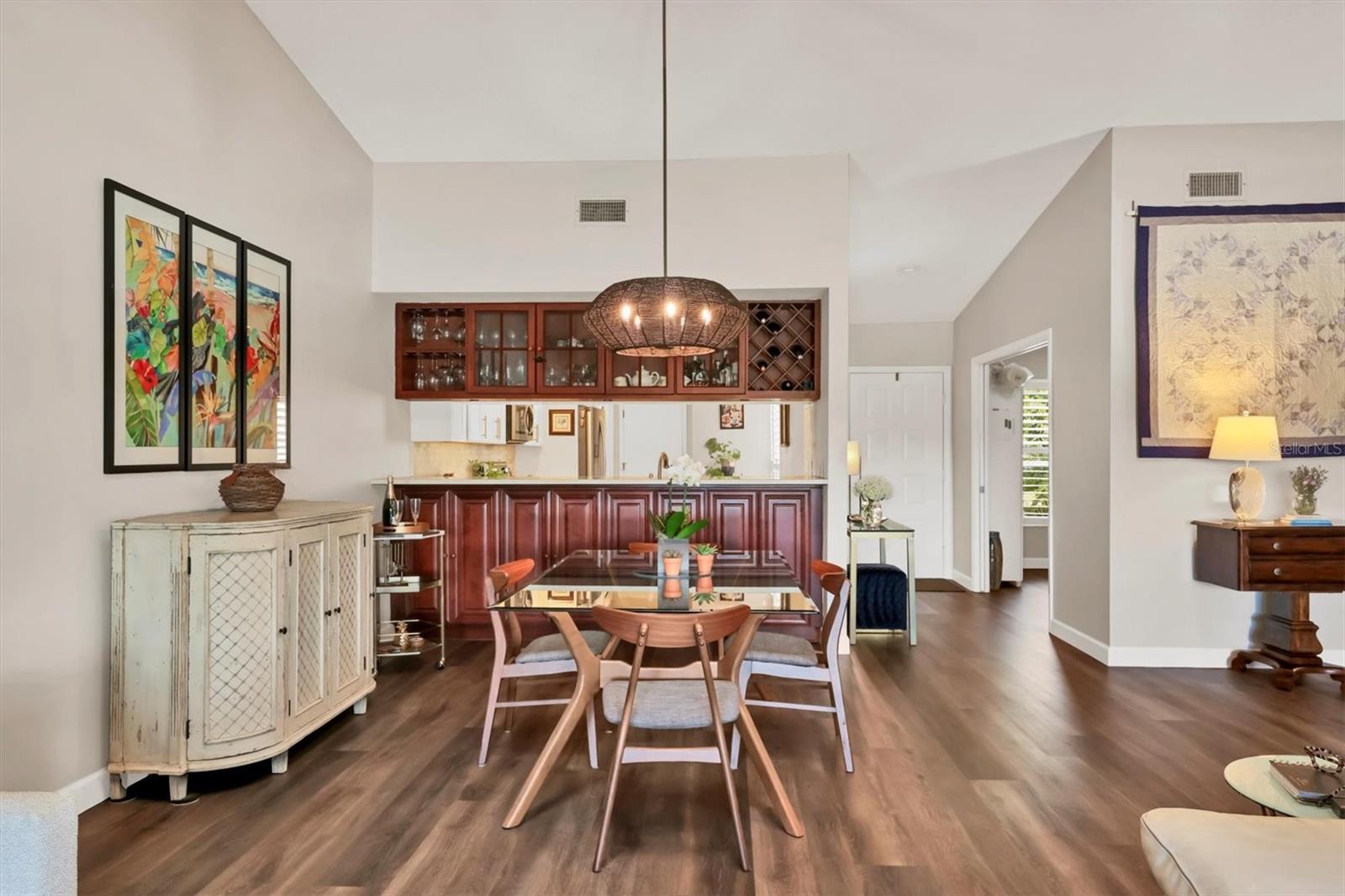 Discover refined living in this beautifully updated three-bedroom villa set in the sought-after lakefront community of Lakeshore Village in Sarasota. Positioned as an end unit, this residence is bathed in natural light from its many windows, vaulted ceilings and thoughtfully placed skylights, all enhancing its airy open floor plan. Enjoy serene water views overlooking a peaceful Audubon-designed rookery on Mirror Lake, where nature and luxury blend seamlessly. The remodeled kitchen is a chef's delight, featuring quartz countertops, soft-close cabinetry and premium stainless-steel appliances. The spacious primary bedroom offers a tranquil retreat with direct access to the lanai through sliding glass doors. Additional highlights include dual walk-in closets and a well-appointed en suite with dual sinks. Impact windows in the primary suite and office provide peace of mind and year-round comfort. This villa epitomizes maintenance-free living, allowing you to enjoy the community's exceptional amenities, including a heated saltwater pool, tennis courts, fishing, horseshoe pits and a vibrant recreation center. Just 15 minutes from Siesta Beach, downtown Sarasota and University Town Center, this home offers a blend of tranquility, convenience and luxury coastal living.