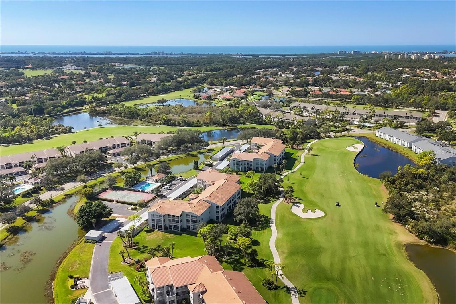 MOVE-IN READY and IMMACULATE 2 bedroom, 2 bath condo END UNIT in sought after Stoneybrook Golf & Country Club! This 3rd floor with ELEVATOR, enjoys a corner view of the newly designed 3rd hole, heated pool, abundant nature by the lake and preserve, all from your private, bird's eye view on your screened and glassed in lanai. This 3rd floor condo boasts VAULTED CEILINGS, that give an impressive and spacious vibe in this open floor plan. Kitchen has a charming dinette under the large front window, and loads of cabinet space. Glass sliding doors give loads of natural light throughout this lovely home. For an additional BONUS.. SELLER PAID GOLF MODERNIZATION PROJECT IN FULL, AS WELL AS THE STORM/CARPORT assessment! Clubside South is a desirable area of Stoneybrook as it has its own tennis/pickle ball court, heated pool with screened in lanai, outdoor granite kitchen and grill area, and each unit has an assigned carport space and storage closet with plenty of room for your beach toys and golf clubs. Stoneybrook Golf and Country Club just completed their new 18 hole golf course designed by Kipp Schultes and is said to be one of the best on the West Coast! Other top-notch amenities include Lighted Har-Tru tennis/pickle ball courts, pro-shop, well-equipped fitness center, bocce court, putting greens, driving range, fitness studio, sharing library, additional heated pool/spa, full service restaurant/bar, meeting rooms, catering facility, outdoor dining patio, walking/biking trails, fishing, planned activities like yoga, mahjong, line dancing, and so much more! Stoneybrook Golf and Country Club is a prime location close to the Legacy Trail, beaches, Costco, Lowes, restaurants and all Sarasota and Venice has to enjoy! WELCOME HOME to RESORT-STYLE LIVING at its BEST!