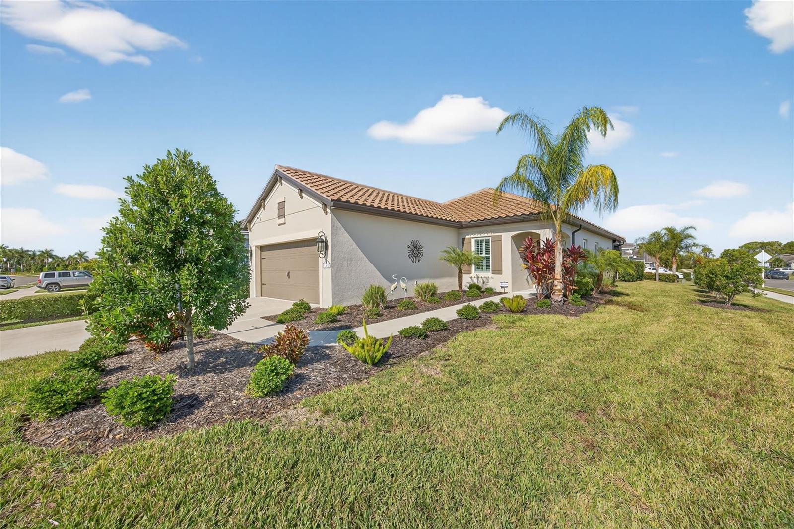 Stunning Liberty II on Prime Corner Lot in Coveted Indigo at Lakewood Ranch! Experience resort-style living in this exceptionally upgraded Liberty II model, perfectly situated on a premium corner lot in the heart of Indigo--a gated, maintenance-free community bursting with amenities. Step inside to a freshly painted, light-filled interior showcasing elegant ceramic tile flooring throughout, plantation shutters, 5" baseboards, and sleek LED recessed lighting. The open-concept kitchen is a showstopper, featuring glistening quartz countertops, shaker cabinetry with under-cabinet lighting, a modern tile backsplash, GE stainless steel appliances, a brand-new faucet, and a deep, single-basin sink--perfect for both everyday living and entertaining. Tech-savvy and secure, this home includes hurricane impact-rated windows and a hurricane impact-rated garage door, a Guardian whole-home security system, and smart home technology allowing remote control of the garage door, thermostat, front door, and alarm system. Unwind on the oversized screened lanai complete with LED lighting and motorized hurricane shades--your own private oasis for morning coffee or sunset cocktails. The luxurious primary suite offers dual walk-in closets, his and hers vanities, and a spa-like walk-in shower. Two inviting guest bedrooms share a beautifully appointed bath, while the spacious laundry room impresses with a Samsung washer and gas dryer, built-in folding station, and ample storage. The 2-car garage stands out with epoxy flooring, a utility sink, and hurricane impact-rated doors for added peace of mind. Enjoy Indigo's incredible amenities: resort-style pool, state-of-the-art fitness center, playground, four pickleball courts, two bocce courts, meeting room, and the convenience of an on-site manager and full-time lifestyle director. This is the Florida dream realized--luxury, low maintenance, and lifestyle all in one. Don't miss your chance to make 12735 Aquamarine Ave your next home!