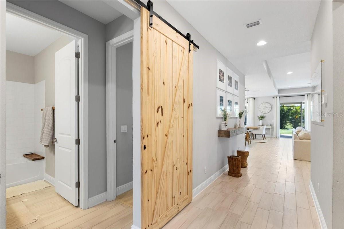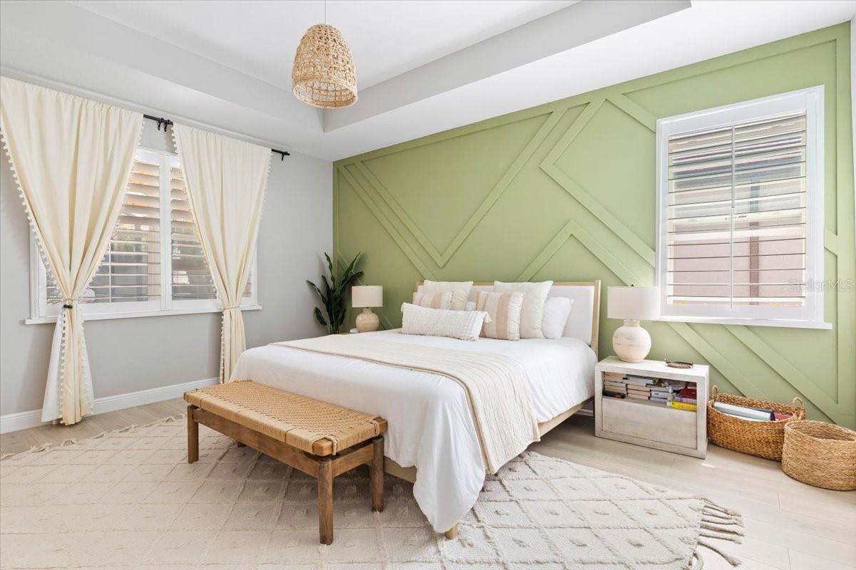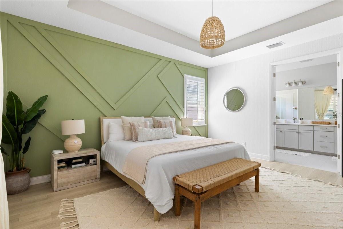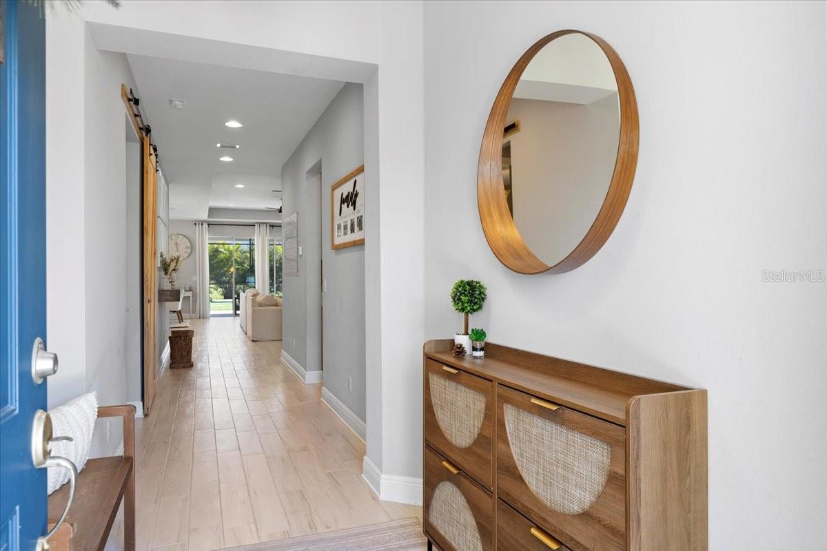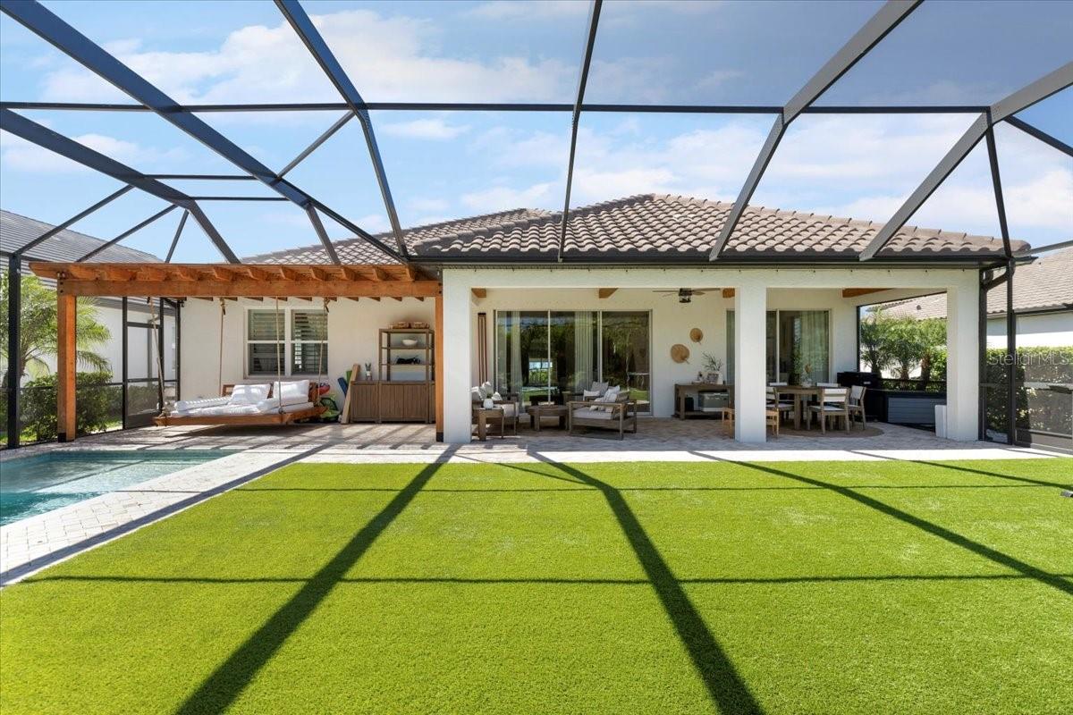 This immaculate one-story Crystal model from MI homes offers 4 bedrooms and 3 bathrooms in the prestige community of Woodleaf at Lakewood Ranch. This is luxury in paradise, don't look any further. You walk into an ample foyer that takes you to find 2 bedrooms to the left with a full bathroom that has being enclosed with a barn door to provide privacy. At your right, you can find the landing from the garage with a spacious laundry room. At the end of the hallway, you will enter the open concept great room with kitchen and dining room. To the right of the living room you will find a 3rd bedroom with a full bathroom and at the other side, the primary suite with walk-in closet and double door for the spa style primary bathroom. The back part of the house will lead you to a magnificent yard thru glass sliding doors. The extended lanai will finish with a custom-made cedar gazebo overlooking the custom-made heated pool. The yard has artificial turf for natural look, pets or exercise. This gem has custom curtains, window shades, floored attic for storage, connection for electrical car charger, irrigation, hurricane shutters, manicured landscape, water filtration system with osmosis, tile roof, a gym setup, etc. This very well-located property is one of the few communities close to I-75 within Lakewood Ranch to make it easy drive to Sarasota, St Pete and Tampa with top rated school zone.