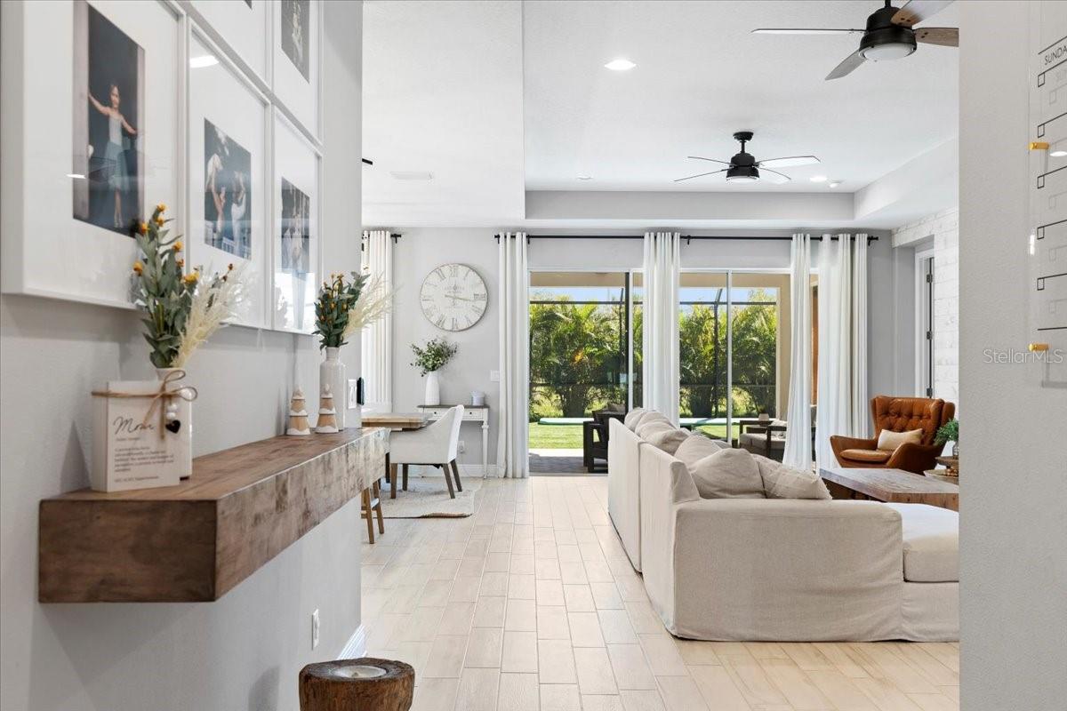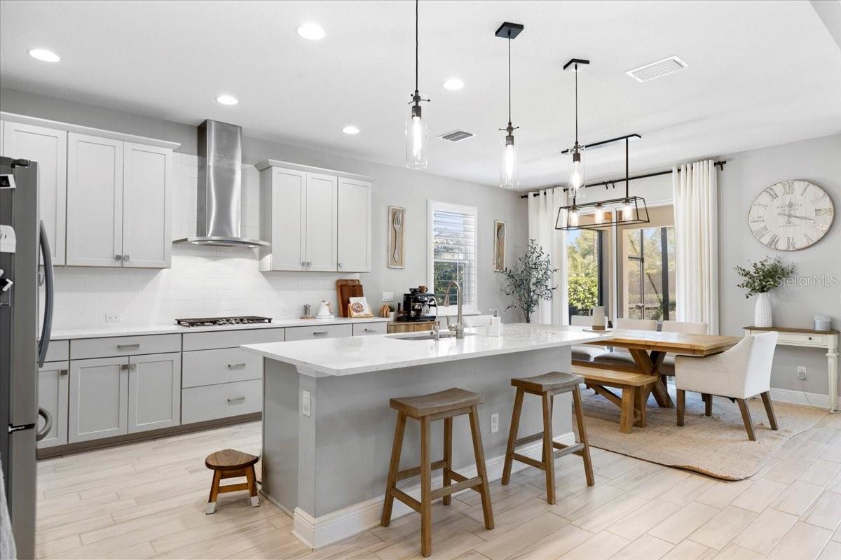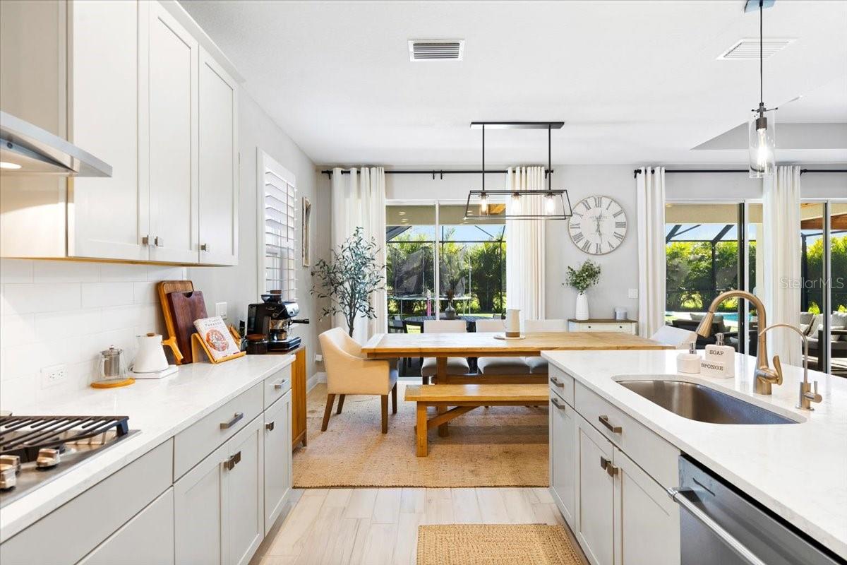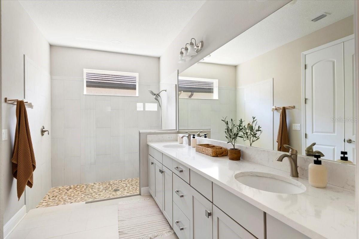 This immaculate one-story Crystal model from MI homes offers 4 bedrooms and 3 bathrooms in the prestige community of Woodleaf at Lakewood Ranch. This is luxury in paradise, don't look any further. You walk into an ample foyer that takes you to find 2 bedrooms to the left with a full bathroom that has being enclosed with a barn door to provide privacy. At your right, you can find the landing from the garage with a spacious laundry room. At the end of the hallway, you will enter the open concept great room with kitchen and dining room. To the right of the living room you will find a 3rd bedroom with a full bathroom and at the other side, the primary suite with walk-in closet and double door for the spa style primary bathroom. The back part of the house will lead you to a magnificent yard thru glass sliding doors. The extended lanai will finish with a custom-made cedar gazebo overlooking the custom-made heated pool. The yard has artificial turf for natural look, pets or exercise. This gem has custom curtains, window shades, floored attic for storage, connection for electrical car charger, irrigation, hurricane shutters, manicured landscape, water filtration system with osmosis, tile roof, a gym setup, etc. This very well-located property is one of the few communities close to I-75 within Lakewood Ranch to make it easy drive to Sarasota, St Pete and Tampa with top rated school zone.
