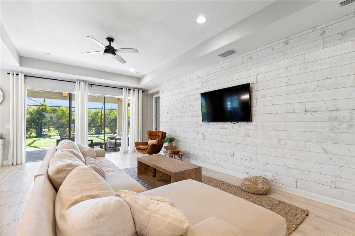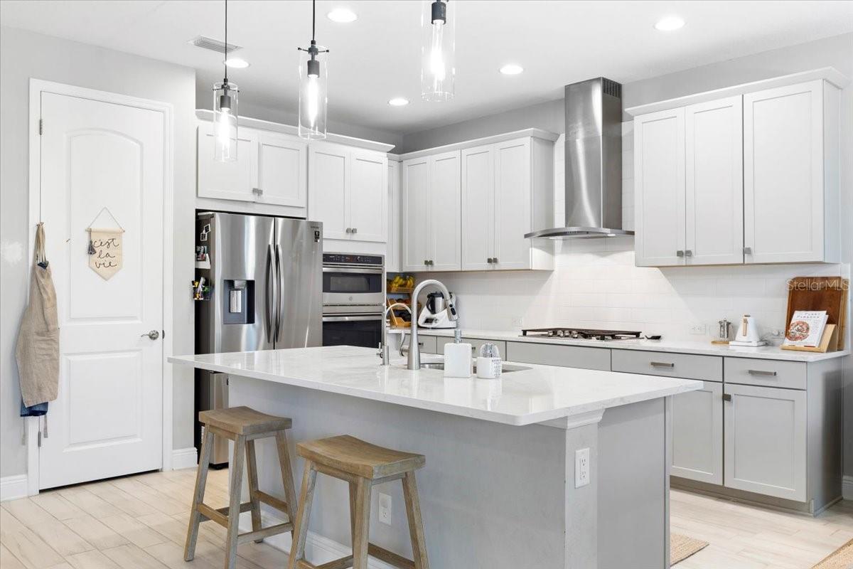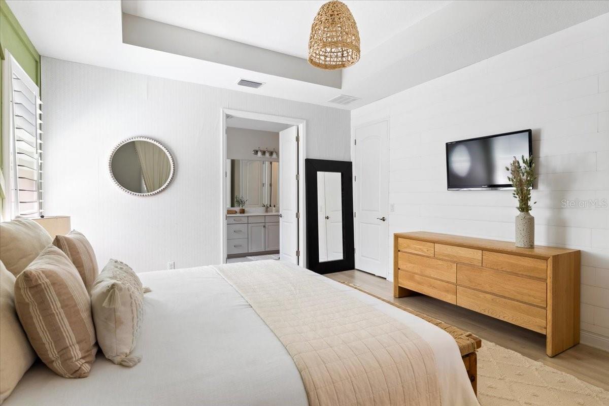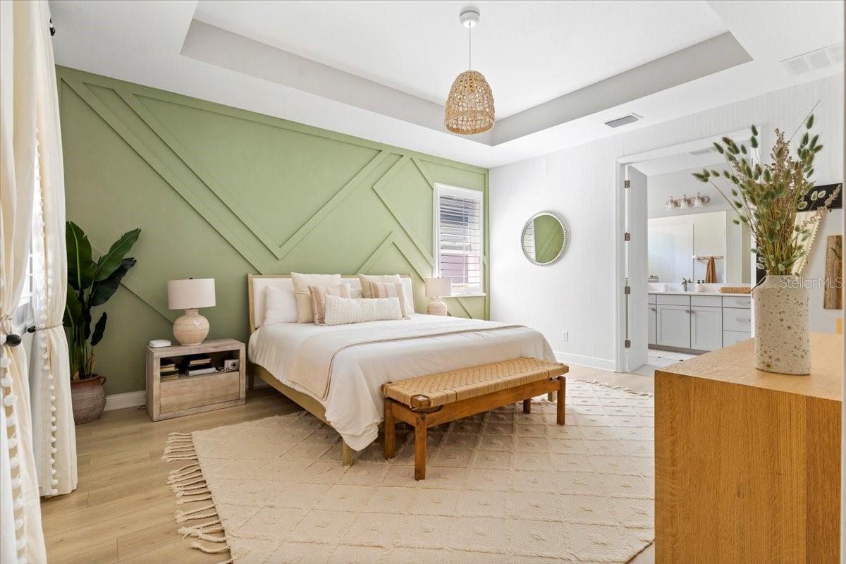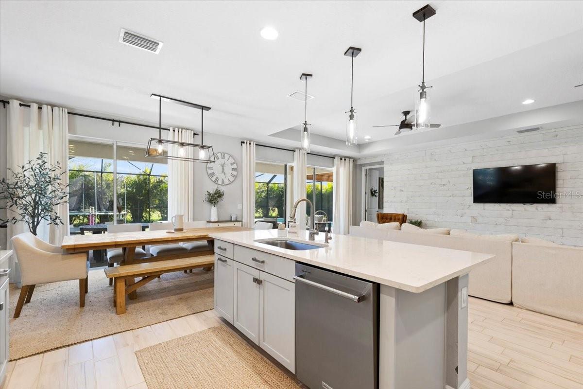 This immaculate one-story Crystal model from MI homes offers 4 bedrooms and 3 bathrooms in the prestige community of Woodleaf at Lakewood Ranch. This is luxury in paradise, don't look any further. You walk into an ample foyer that takes you to find 2 bedrooms to the left with a full bathroom that has being enclosed with a barn door to provide privacy. At your right, you can find the landing from the garage with a spacious laundry room. At the end of the hallway, you will enter the open concept great room with kitchen and dining room. To the right of the living room you will find a 3rd bedroom with a full bathroom and at the other side, the primary suite with walk-in closet and double door for the spa style primary bathroom. The back part of the house will lead you to a magnificent yard thru glass sliding doors. The extended lanai will finish with a custom-made cedar gazebo overlooking the custom-made heated pool. The yard has artificial turf for natural look, pets or exercise. This gem has custom curtains, window shades, floored attic for storage, connection for electrical car charger, irrigation, hurricane shutters, manicured landscape, water filtration system with osmosis, tile roof, a gym setup, etc. This very well-located property is one of the few communities close to I-75 within Lakewood Ranch to make it easy drive to Sarasota, St Pete and Tampa with top rated school zone.