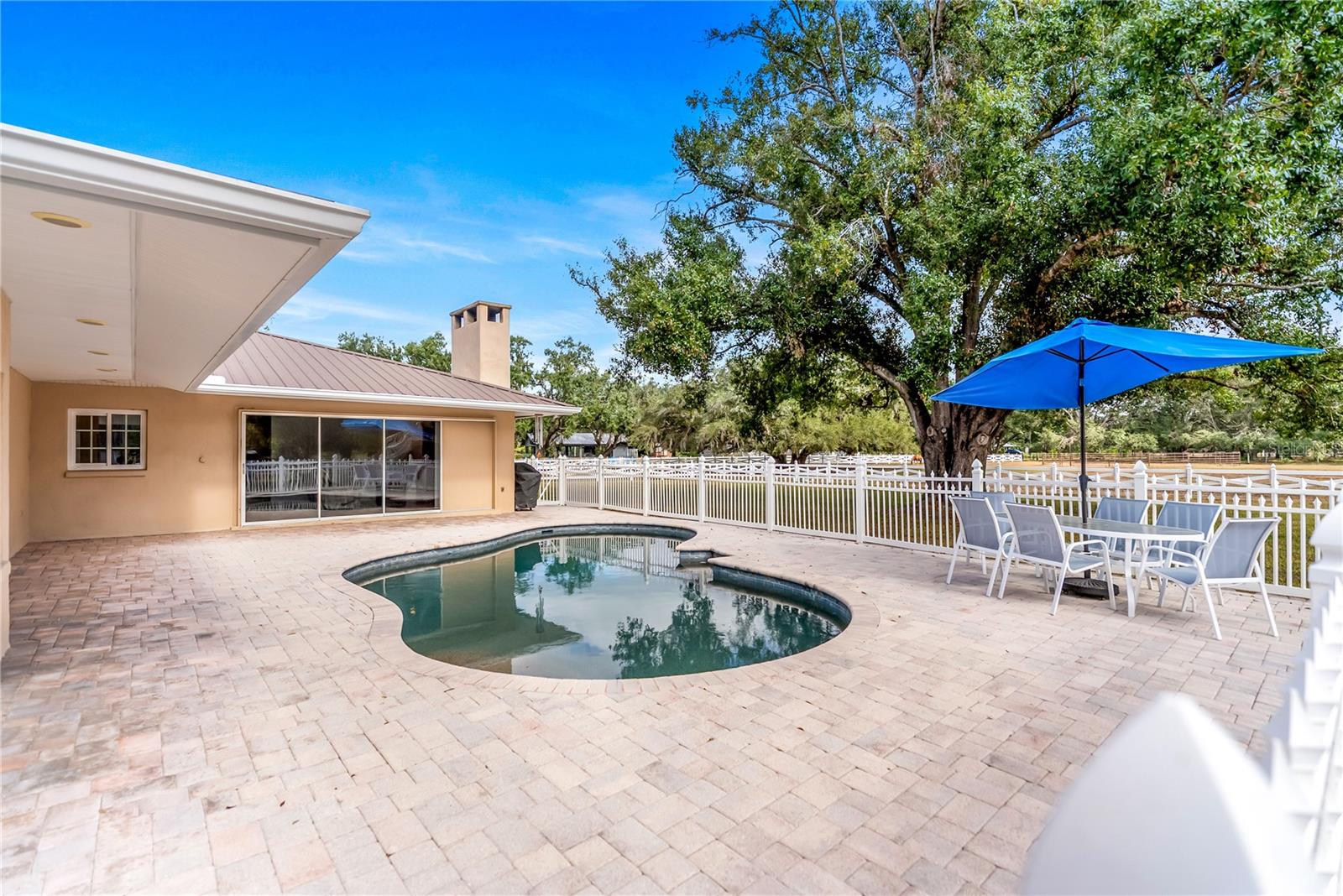 Welcome to a private 5 acre luxury estate, a rare multi residence retreat in the heart of Sarasota. Tucked behind a picturesque canopy of mature oaks and white ranch fencing, this exceptional property offers unmatched space, serenity, and versatility, featuring a beautifully maintained main residence, a fully equipped two story barn home with both upstairs and downstairs living accommodations, a sparkling saltwater pool, and acres of cleared usable land. The main home offers 3 bedrooms plus a large game room with a full closet that can serve as a fourth bedroom, office, or flex space depending on the buyer's needs, along with multiple living areas and wide open spaces filled with natural light and peaceful views of the pool and surrounding acreage. Meaningful updates include appliances replaced in 2024, a whole house water softener system in 2024 including the apartment, septic pumped in 2024 with a new leech bed installed for both the home and apartment, a saltwater pool pump replaced in 2024, AC replaced in 2020, water heater replaced in 2019, and a durable metal roof from 2008. The expansive kitchen opens to the pool and living areas, complemented by a beautiful stone fireplace and a large bonus room perfect for a billiards room, playroom, gym, or hobby space. Outdoor living shines with a fenced saltwater pool and paver deck, ideal for sunny afternoons and relaxed evenings under the mature oak trees. The two story barn home is divided into two separate units, offering incredible flexibility for multigenerational living or rental income. The upstairs unit features 2 bedrooms and 1 and a half bathrooms, along with 2015 appliances and a private screened balcony overlooking the property. The downstairs unit includes 1 bedroom and 1 bathroom, updated flooring, granite counters, a 2020 stove and dishwasher, and a 2022 refrigerator. The barn also features a metal roof from 2006 and benefits from the recent septic upgrades. The full 5 acres are fully fenced and usable, perfect for horses, gardens, recreational vehicles, or future expansion, all accessed by a beautiful winding paved driveway and an oversized three car garage. This property offers peaceful privacy while still being close to shopping, dining, medical facilities, parks, I 75, and just a short drive to Siesta Key, Lido Key, and the world renowned Gulf Coast beaches.