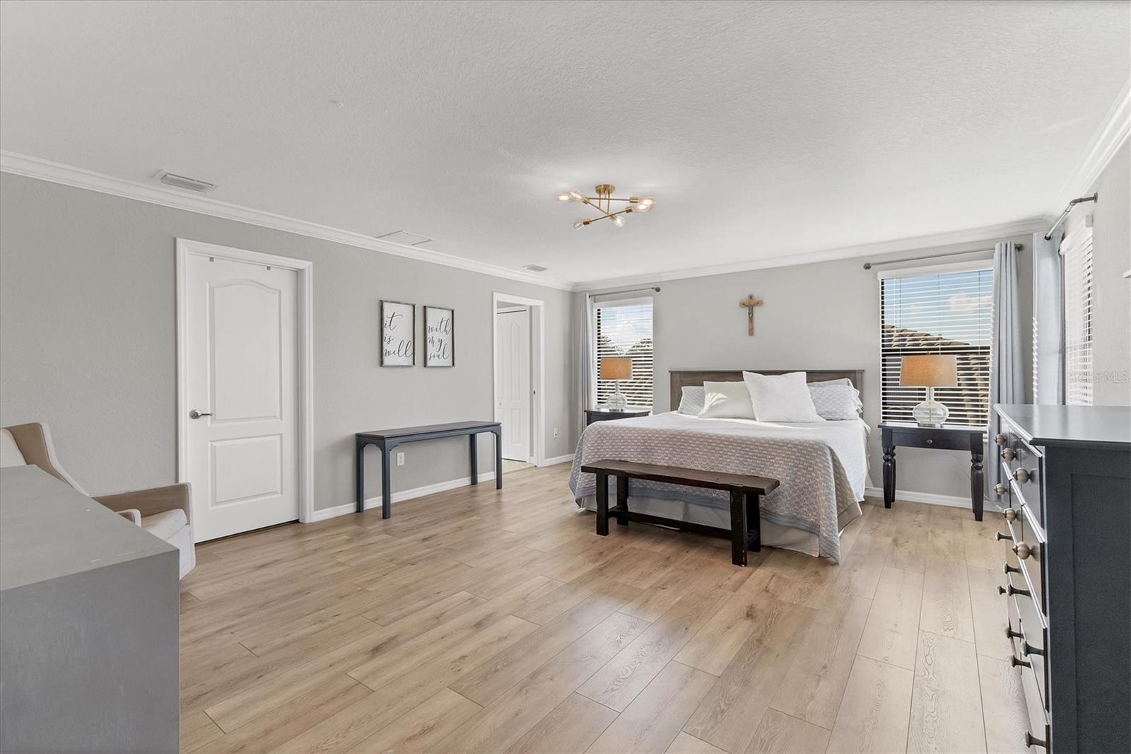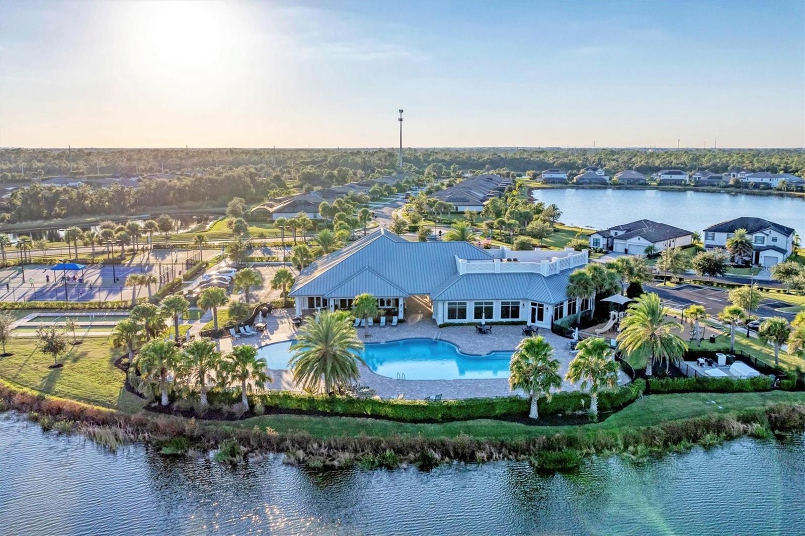 Welcome to this expansive and versatile over 3,900-square-foot residence in the highly desirable, solar-powered community of Polo Run. Thoughtfully designed for modern living, this six-bedroom, four-and-a-half-bath Lennar Next Gen® Liberation model offers a completely private multigeneration suite perfect for in-laws, college-aged children, or anyone seeking independence. As you approach the home, the paver driveway and lush tropical landscaping maintained by the HOA create a warm and welcoming first impression. Step inside to an inviting open-concept living area that seamlessly connects the formal dining room, great room and a bright eat-in kitchen. The kitchen boasts white cabinetry, a stylish shiplap island, granite countertops, stainless steel appliances and a spacious walk-in pantry. Sliding doors from the great room lead to the oversized, covered lanai, perfect for dining, entertaining, or simply enjoying peaceful preserve views with no neighbors in sight. Upstairs, a generous multipurpose loft anchors the second floor, surrounded by five bedrooms. The owner's suite offers a relaxing retreat with a large walk-in closet and spa-like en-suite bath featuring dual sinks, a soaking tub and a walk-in shower. Four additional bedrooms provide endless flexibility for guest rooms, offices, fitness space or playrooms. The second floor also includes two full baths and a conveniently placed laundry room. A standout feature of this home is the Lennar Next Gen® model design, offering a completely private multigenerational suite with its own separate entrance, single garage, living room, kitchenette, bedroom, full bath, walk-in closet, washer and dryer, and sophisticated upgrades like crown molding, window molding, chair rail and wainscoting. Both the main home and the Next Gen® suite enjoy direct access to the lanai, where a large, covered area with built-in bar invites year-round outdoor living. Additional highlights include solar panels for energy efficiency, hurricane shutters, and a tankless water heater for added comfort and peace of mind. Residents of Polo Run enjoy a vibrant, maintenance-free lifestyle with resort-style amenities, including a clubhouse, resort pool, fitness center, bocce ball, tennis, pickleball and basketball courts. The community also features a dog park, playground and an active social calendar filled with classes, events and activities. With convenient proximity to shopping, dining, A-rated schools and quick access to I-75, this home offers the perfect blend of luxury, location and sustainability. Don't miss your opportunity to live beautifully and independently in one of Lakewood Ranch's premier communities!