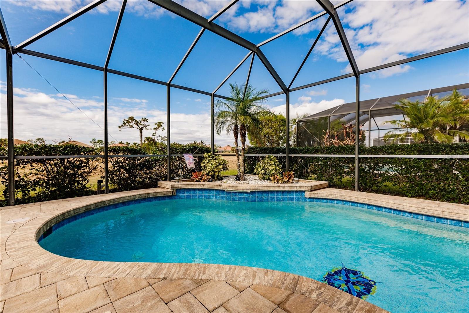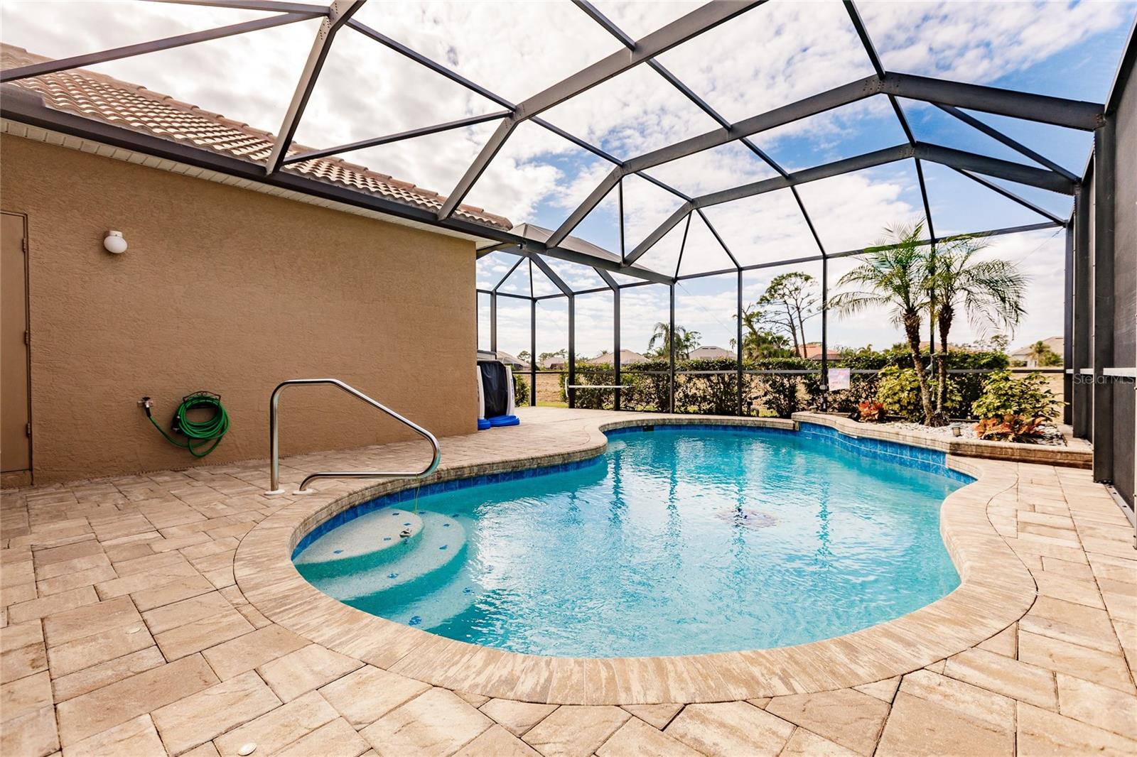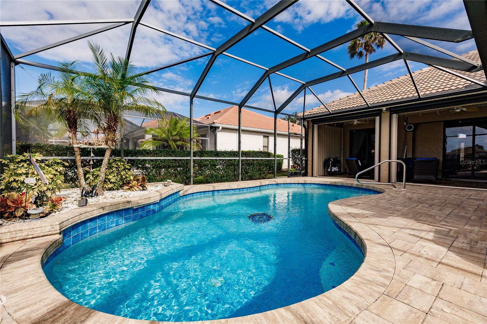Welcome to this beautifully maintained home in the Fairway Commons section of Bobcat Trail gated and deed restricted community. This three bedroom (all with walk-in closets) two bath home has been updated extensively and there is no carpet in home. Please see attached list of improvements, including a new roof in 2023. Fairway Commons homes have a $218 monthly HOA fee that covers lawn fertilization/weed control and cutting as well as mulch and trimming and irrigation. There is also a master HOA with a fee of $124 per year! The primary suite is truly a retreat with a gorgeous newly renovated bathroom with high end finishes. This suite also features two closets.The recently remodeled kitchen is a chef's dream with a natural gas stove.The washer and gas dryer are included. The second bath doubles as a pool bath so no one must walk through the house with wet feet.Improvements made by current owners. 2014 Honey Comb Shades 2015 Front Screen Door, New Gas Range and Water Filter in Kitchen. 2016 Chandelier in Dining Room New Fridge, Kitchen Remodel. Upgraded Lighting in Kitchen and over counters. New Garbage Disposal and Dishwasher. 2017 Remodeled Primary Bath. 2018 Shutters Installed part 1 and Blue Ultra Light in AC unit. 2019 New Garage Door and Lift Motor. 2020 New Pool liner and pavers. 2021 SPF Screens in lanai. New Pool Heat Pump. 2022 High performance pool pump. Kitchenaid workstation sink and faucet with accessories. 2023 New Roof and gutters. New Salt Chlorine generator. 2024 New Attic ladder. new underground wiring to light post. New Gas Hot Water Heater. Shutters installed part 2. 2025 New Rheem AC unit and compressor.This is a true Florida home with a large west facing lanai for sunsets and a beautiful newly re-done pool. For cooler winter nights this home also has a gas fireplace.Bobcat Trail amenities include a heated community pool a community center with library and regularly scheduled events. There is also pickleball and tennis on premises. The community is in North Port located within 20 minutes of two spring training facilities and beautiful beaches.