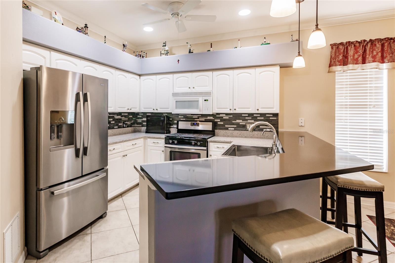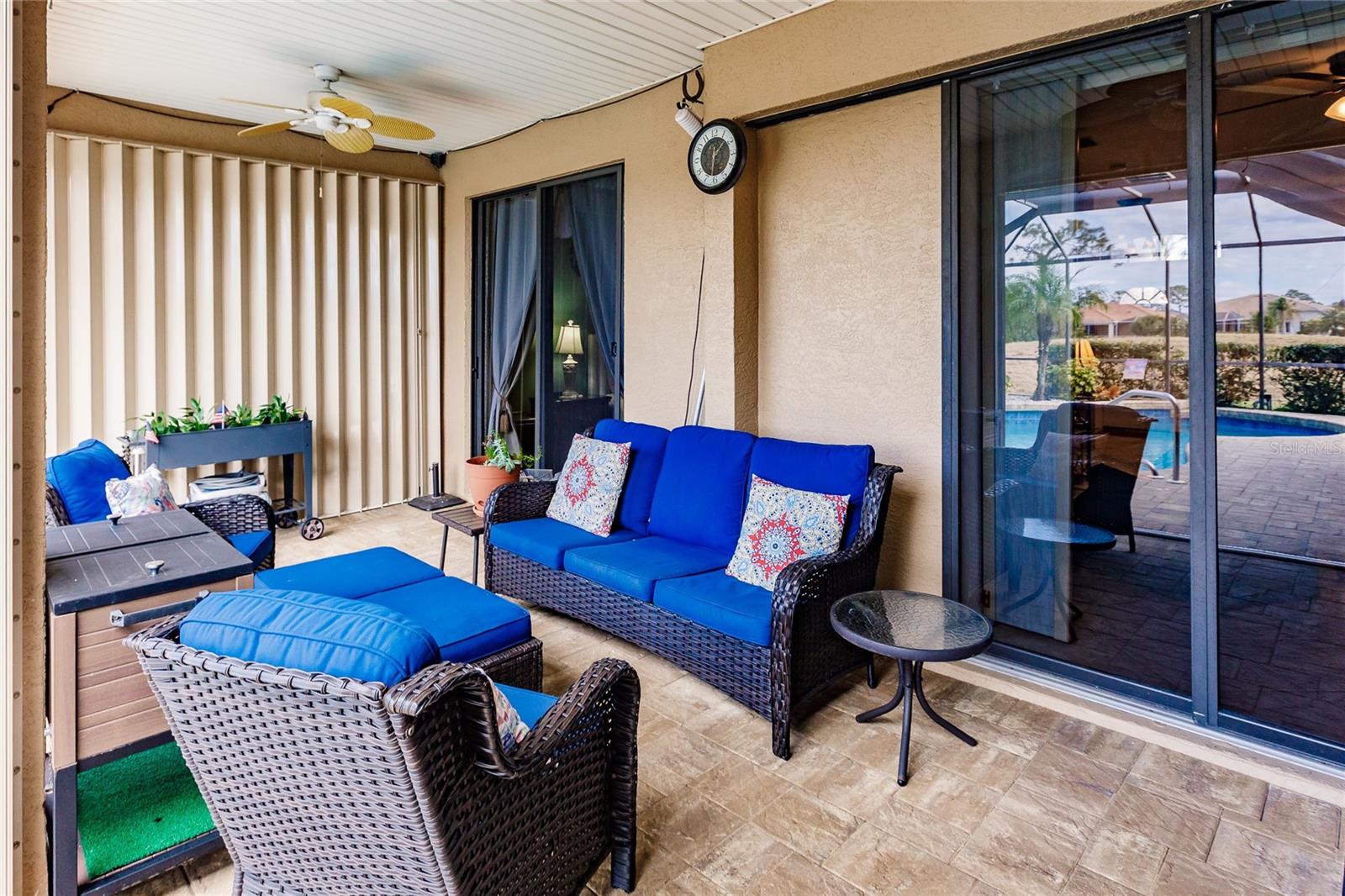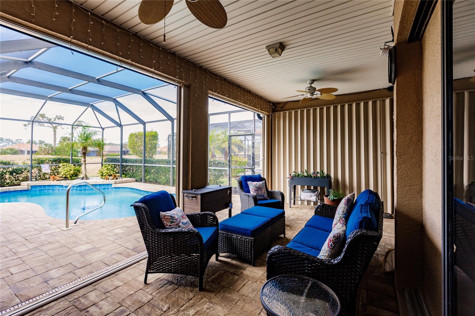 Welcome to this beautifully maintained home in the Fairway Commons section of Bobcat Trail gated and deed restricted community. This three bedroom (all with walk-in closets) two bath home has been updated extensively and there is no carpet in home. Please see attached list of improvements, including a new roof in 2023. Fairway Commons homes have a $218 monthly HOA fee that covers lawn fertilization/weed control and cutting as well as mulch and trimming and irrigation. There is also a master HOA with a fee of $124 per year! The primary suite is truly a retreat with a gorgeous newly renovated bathroom with high end finishes. This suite also features two closets.The recently remodeled kitchen is a chef's dream with a natural gas stove.The washer and gas dryer are included. The second bath doubles as a pool bath so no one must walk through the house with wet feet.Improvements made by current owners. 2014 Honey Comb Shades 2015 Front Screen Door, New Gas Range and Water Filter in Kitchen. 2016 Chandelier in Dining Room New Fridge, Kitchen Remodel. Upgraded Lighting in Kitchen and over counters. New Garbage Disposal and Dishwasher. 2017 Remodeled Primary Bath. 2018 Shutters Installed part 1 and Blue Ultra Light in AC unit. 2019 New Garage Door and Lift Motor. 2020 New Pool liner and pavers. 2021 SPF Screens in lanai. New Pool Heat Pump. 2022 High performance pool pump. Kitchenaid workstation sink and faucet with accessories. 2023 New Roof and gutters. New Salt Chlorine generator. 2024 New Attic ladder. new underground wiring to light post. New Gas Hot Water Heater. Shutters installed part 2. 2025 New Rheem AC unit and compressor.This is a true Florida home with a large west facing lanai for sunsets and a beautiful newly re-done pool. For cooler winter nights this home also has a gas fireplace.Bobcat Trail amenities include a heated community pool a community center with library and regularly scheduled events. There is also pickleball and tennis on premises. The community is in North Port located within 20 minutes of two spring training facilities and beautiful beaches.