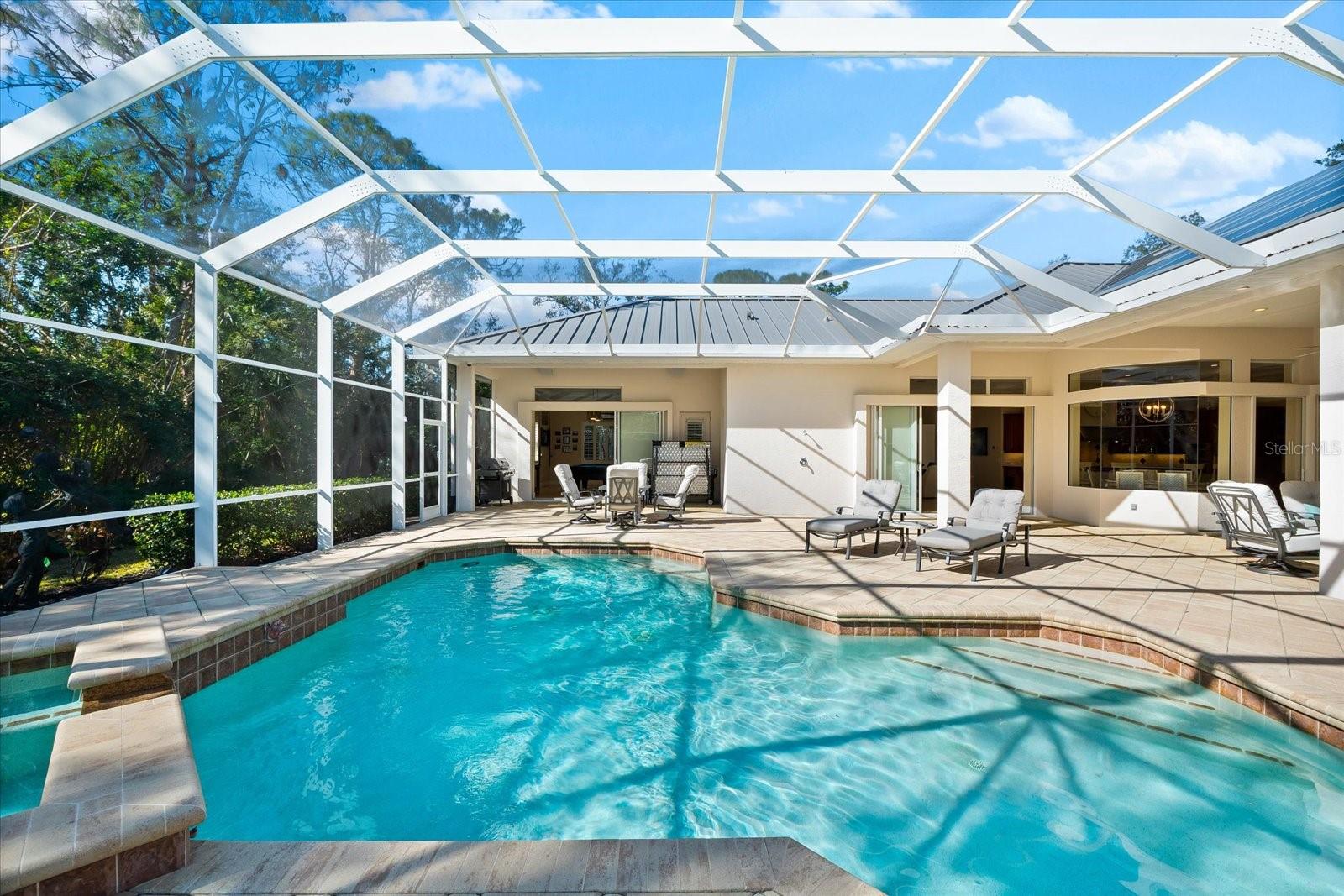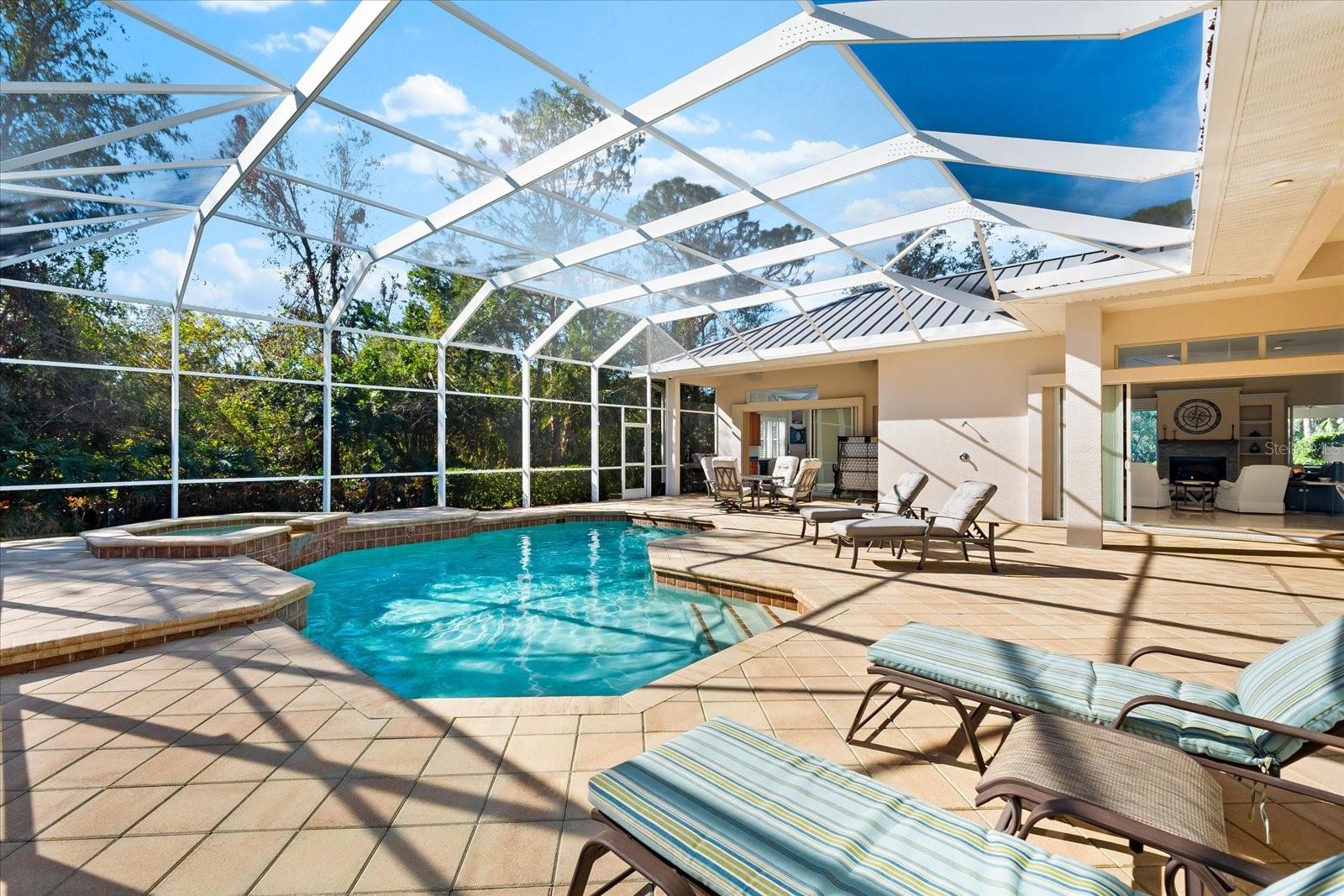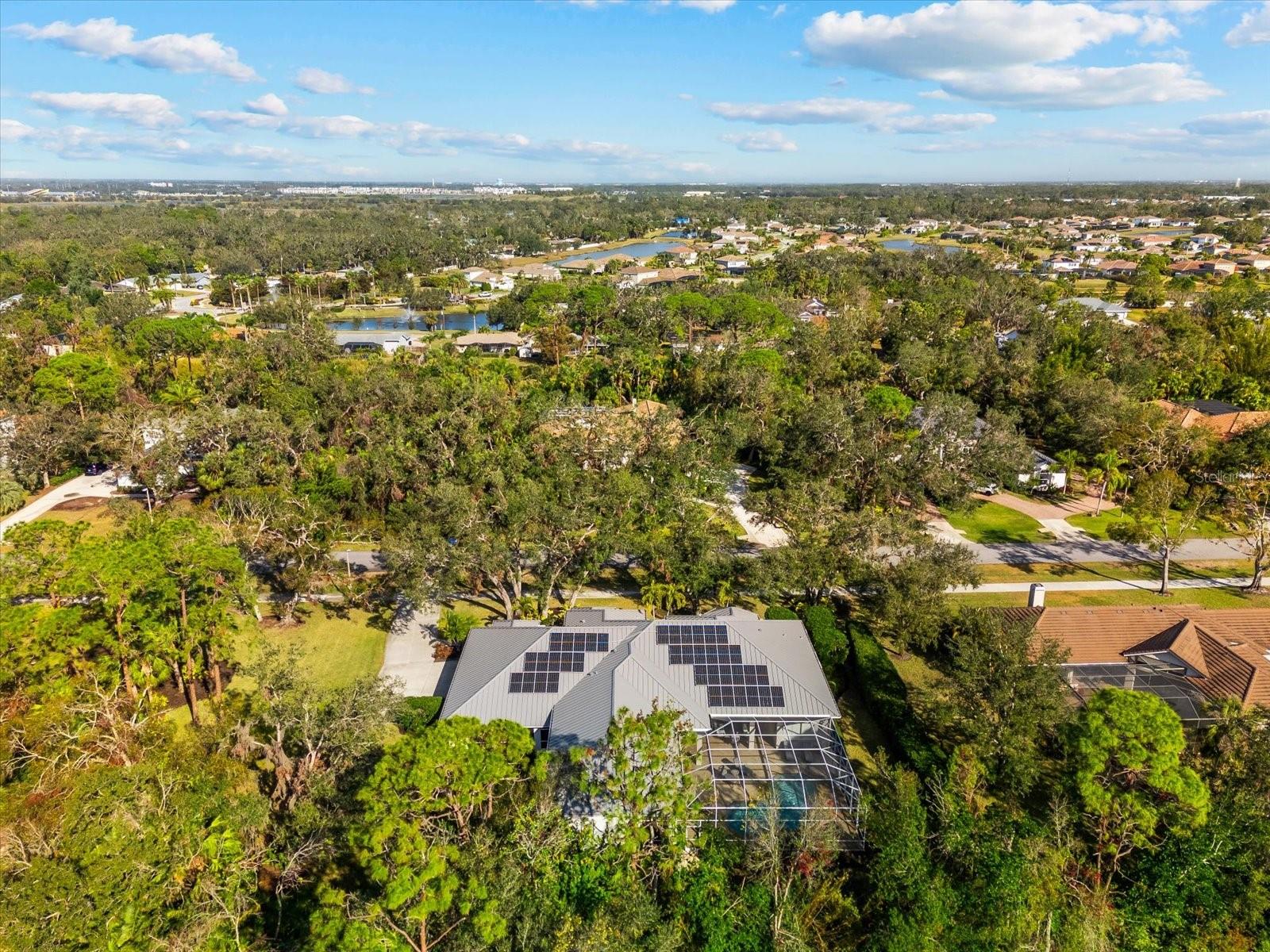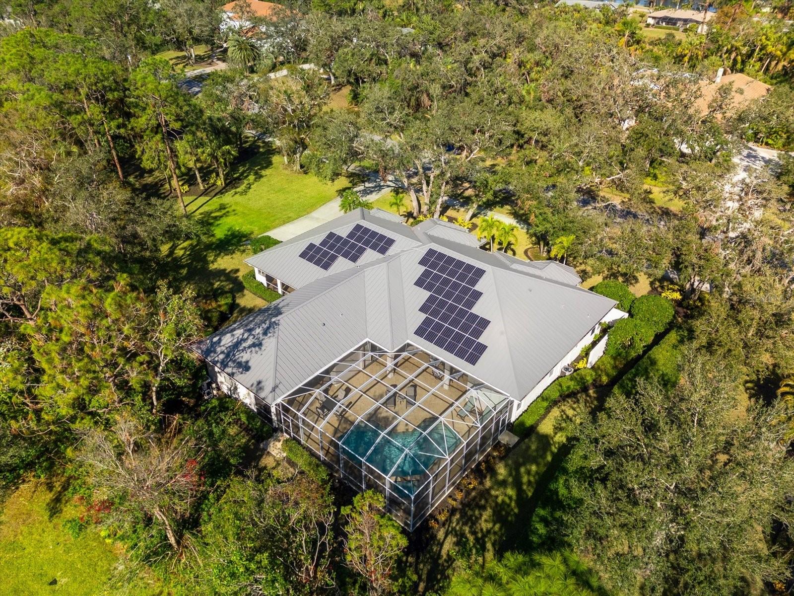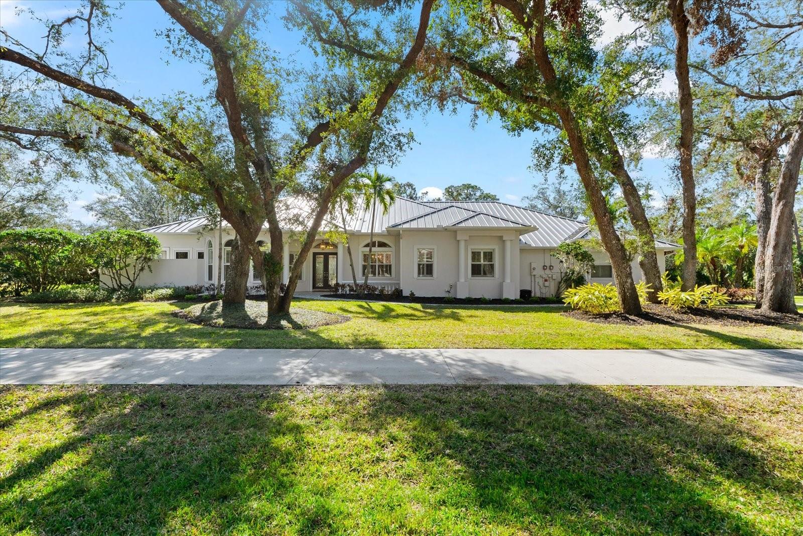 This stunning 4 Bedroom, 4.5 bath meticulously crafted 2002 residence has been updated and modernized with Smart Home technology including Control 4, Sonos, Lutron, Tesla, ClareVision, Pentair, and MyQ. Experience unparallelled convenience by controlling nearly every aspect of your living environment from anywhere--whether you're cozied up on the couch, on the way home, or away on vacation. A new metal roof and solar panels (PV) with Tesla inverters installed in March 2024 are the ultimate energy saver and have dramatically slashed electricity bills by over 80%. The inviting family room complete with gas fireplace, large screen TV and an immersive Klipsch surround sound system is perfect for movie nights and gatherings. Challenge friends in the game room equipped with a TV, pool table and dartboard, or retreat to the elegantly appointed office featuring built-ins and a serene reading tower. The gourmet kitchen is a chef's delight, showcasing a Wolf 6-burner cooktop, stainless steel appliances, endless granite countertops, cherry cabinetry, and a large walk-in pantry. Enjoy the tranquility of the secluded screened outdoor area with gas fireplace and a soothing fountain. The spotless 3-car garage comes with a new epoxy floor, a dedicated workbench area, and an additional refrigerator for your convenience. The home opens seamlessly to the sprawling lanai, where you'll find multiple seating and entertaining areas and an incredible heated pool with spillover spa, all basking in prime southern sun. Situated on a serene .95-acre wooded lot offering complete privacy with deer wandering through your backyard and birds and wildlife abound. Laurel Oak Estates is a 24/7 guard gated community with 405 homes spread over an expansive 813 acres, with 8+ miles of walking and biking paths. Laurel Oak Country Club is one of Sarasota's premier member-owned golf clubs with 36 holes of golf, tennis, pickleball, aquatics and endless social activities. Active men's and women's golf leagues as well as daily drop-in games for all handicap levels. The staff and membership are super friendly and new members are openly welcomed. IMMEDIATE GOLF - Golf enthusiasts looking to join Laurel Oak Country Club jump straight to the top of their waitlist at closing!