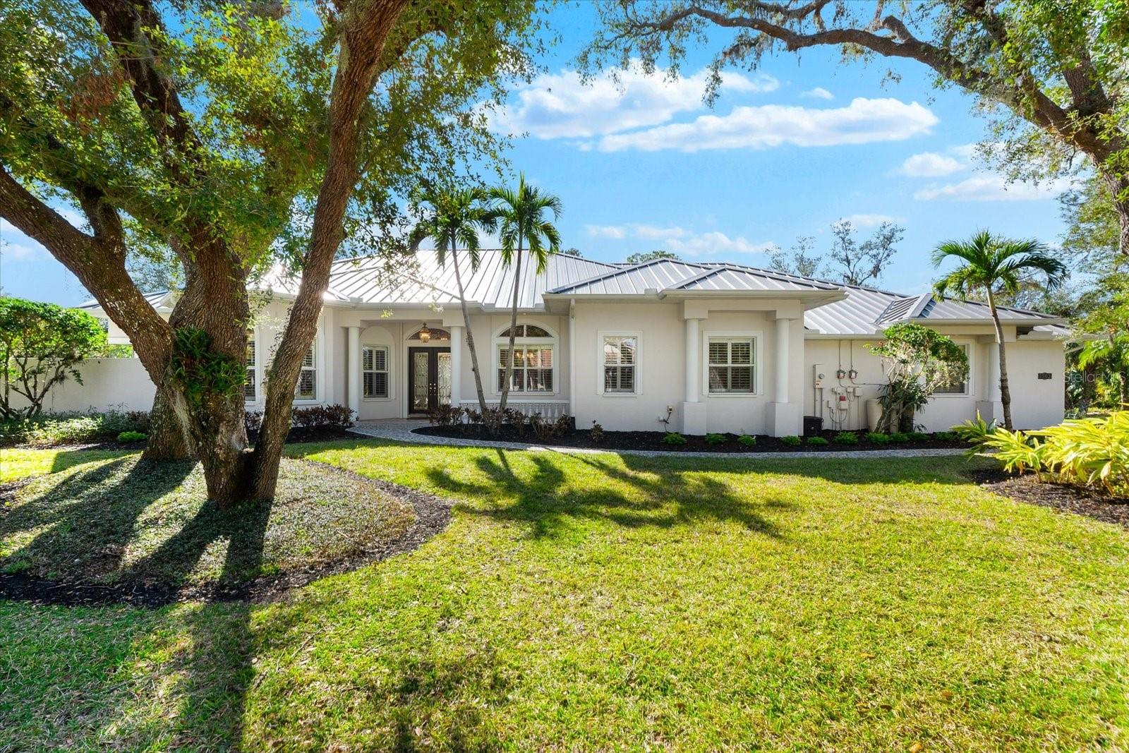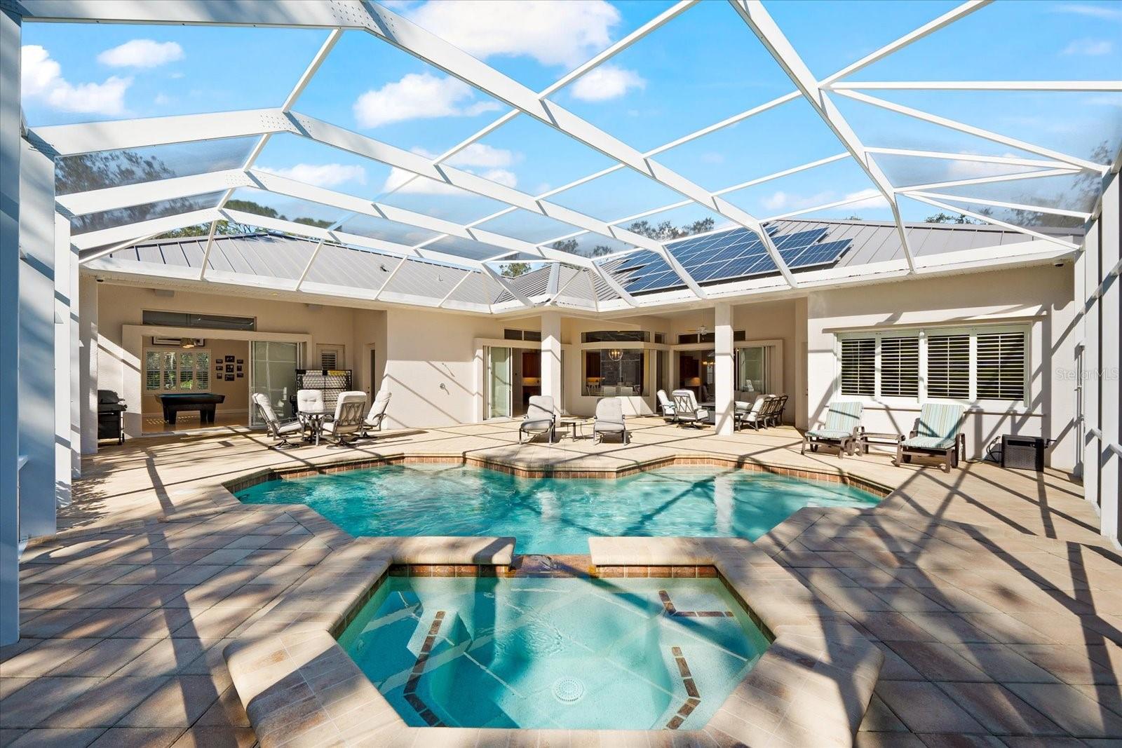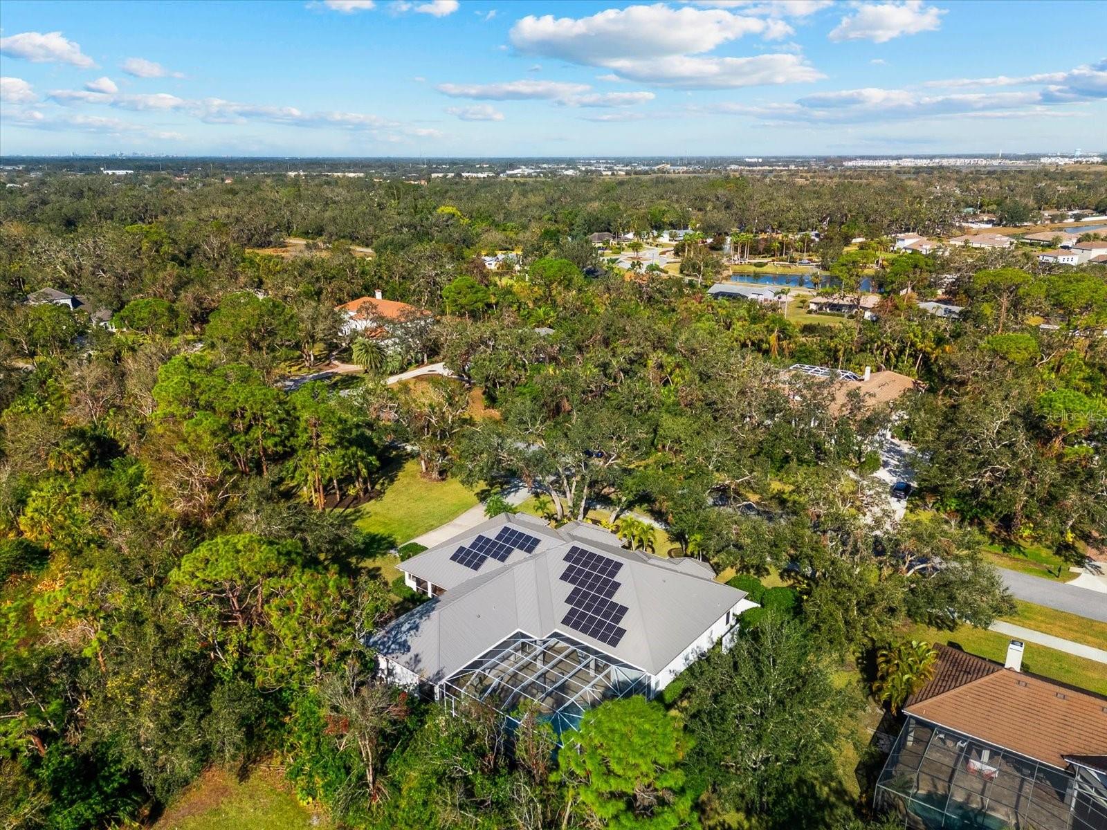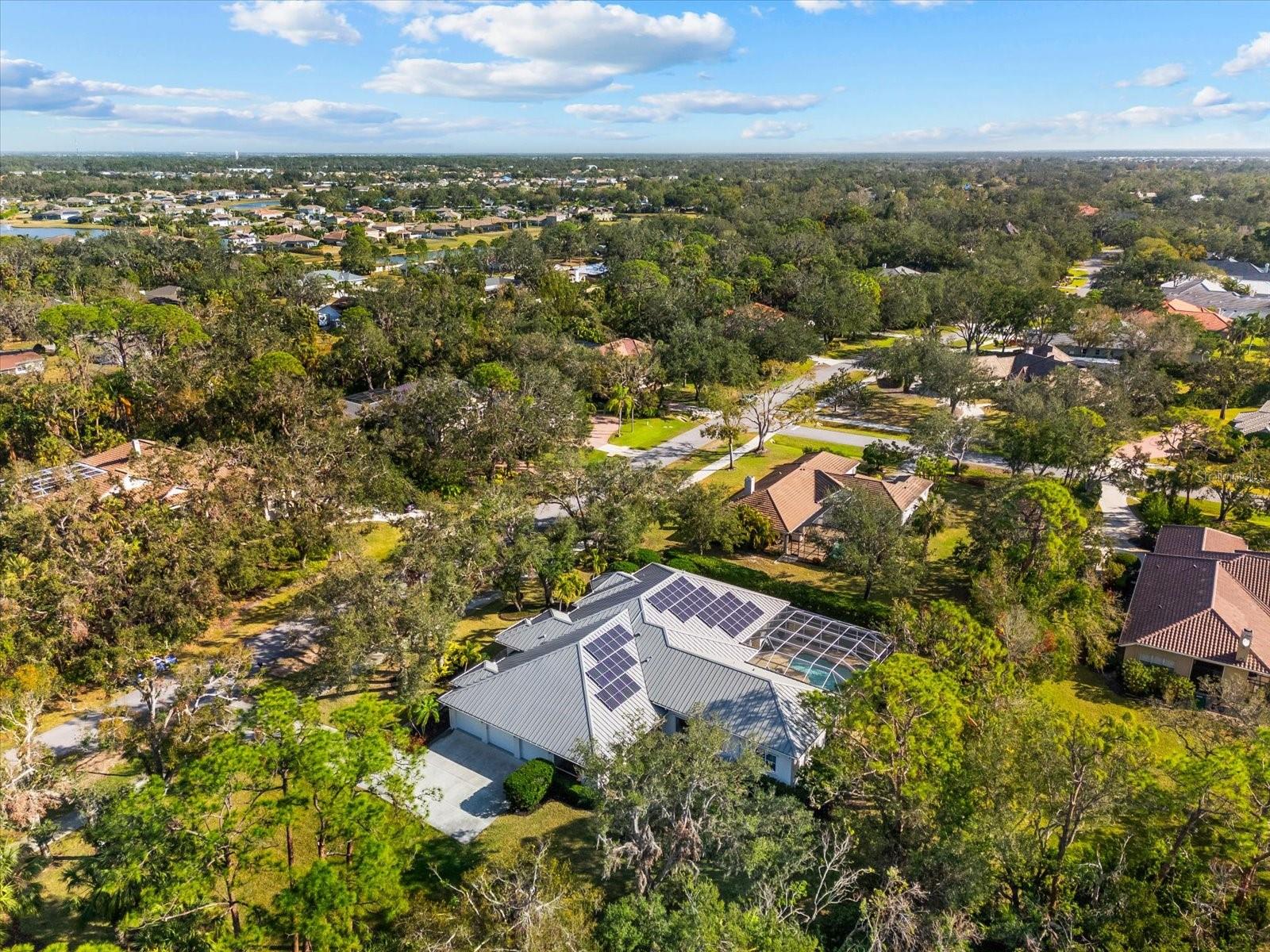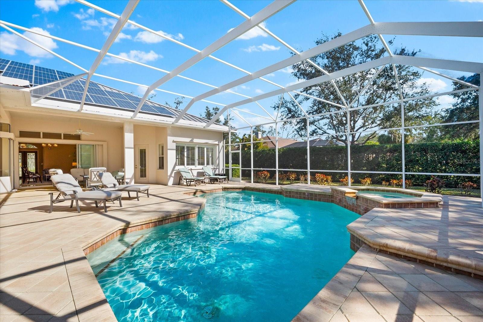 This stunning 4 Bedroom, 4.5 bath meticulously crafted 2002 residence has been updated and modernized with Smart Home technology including Control 4, Sonos, Lutron, Tesla, ClareVision, Pentair, and MyQ. Experience unparallelled convenience by controlling nearly every aspect of your living environment from anywhere--whether you're cozied up on the couch, on the way home, or away on vacation. A new metal roof and solar panels (PV) with Tesla inverters installed in March 2024 are the ultimate energy saver and have dramatically slashed electricity bills by over 80%. The inviting family room complete with gas fireplace, large screen TV and an immersive Klipsch surround sound system is perfect for movie nights and gatherings. Challenge friends in the game room equipped with a TV, pool table and dartboard, or retreat to the elegantly appointed office featuring built-ins and a serene reading tower. The gourmet kitchen is a chef's delight, showcasing a Wolf 6-burner cooktop, stainless steel appliances, endless granite countertops, cherry cabinetry, and a large walk-in pantry. Enjoy the tranquility of the secluded screened outdoor area with gas fireplace and a soothing fountain. The spotless 3-car garage comes with a new epoxy floor, a dedicated workbench area, and an additional refrigerator for your convenience. The home opens seamlessly to the sprawling lanai, where you'll find multiple seating and entertaining areas and an incredible heated pool with spillover spa, all basking in prime southern sun. Situated on a serene .95-acre wooded lot offering complete privacy with deer wandering through your backyard and birds and wildlife abound. Laurel Oak Estates is a 24/7 guard gated community with 405 homes spread over an expansive 813 acres, with 8+ miles of walking and biking paths. Laurel Oak Country Club is one of Sarasota's premier member-owned golf clubs with 36 holes of golf, tennis, pickleball, aquatics and endless social activities. Active men's and women's golf leagues as well as daily drop-in games for all handicap levels. The staff and membership are super friendly and new members are openly welcomed. IMMEDIATE GOLF - Golf enthusiasts looking to join Laurel Oak Country Club jump straight to the top of their waitlist at closing!