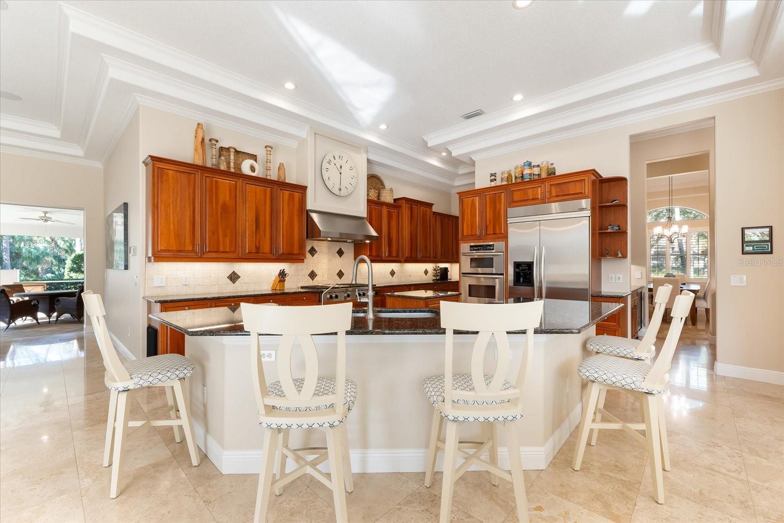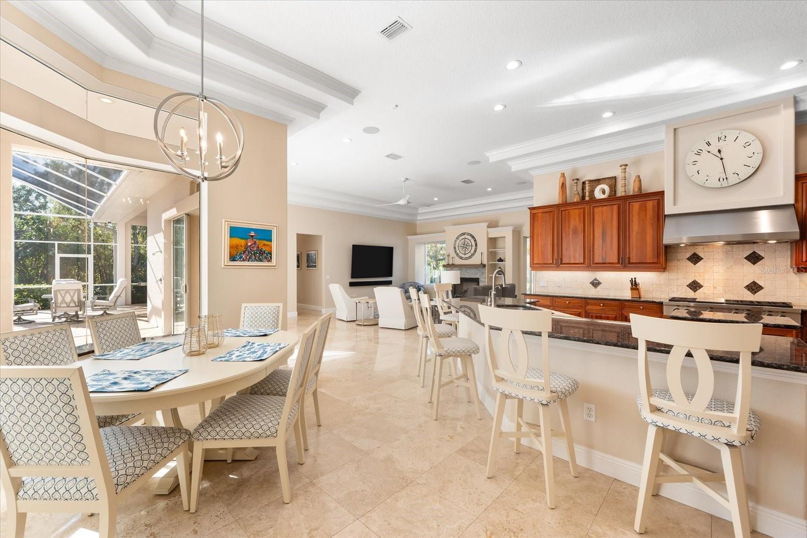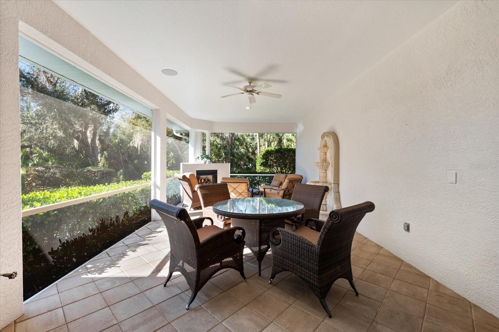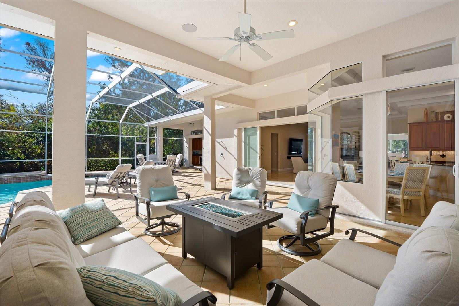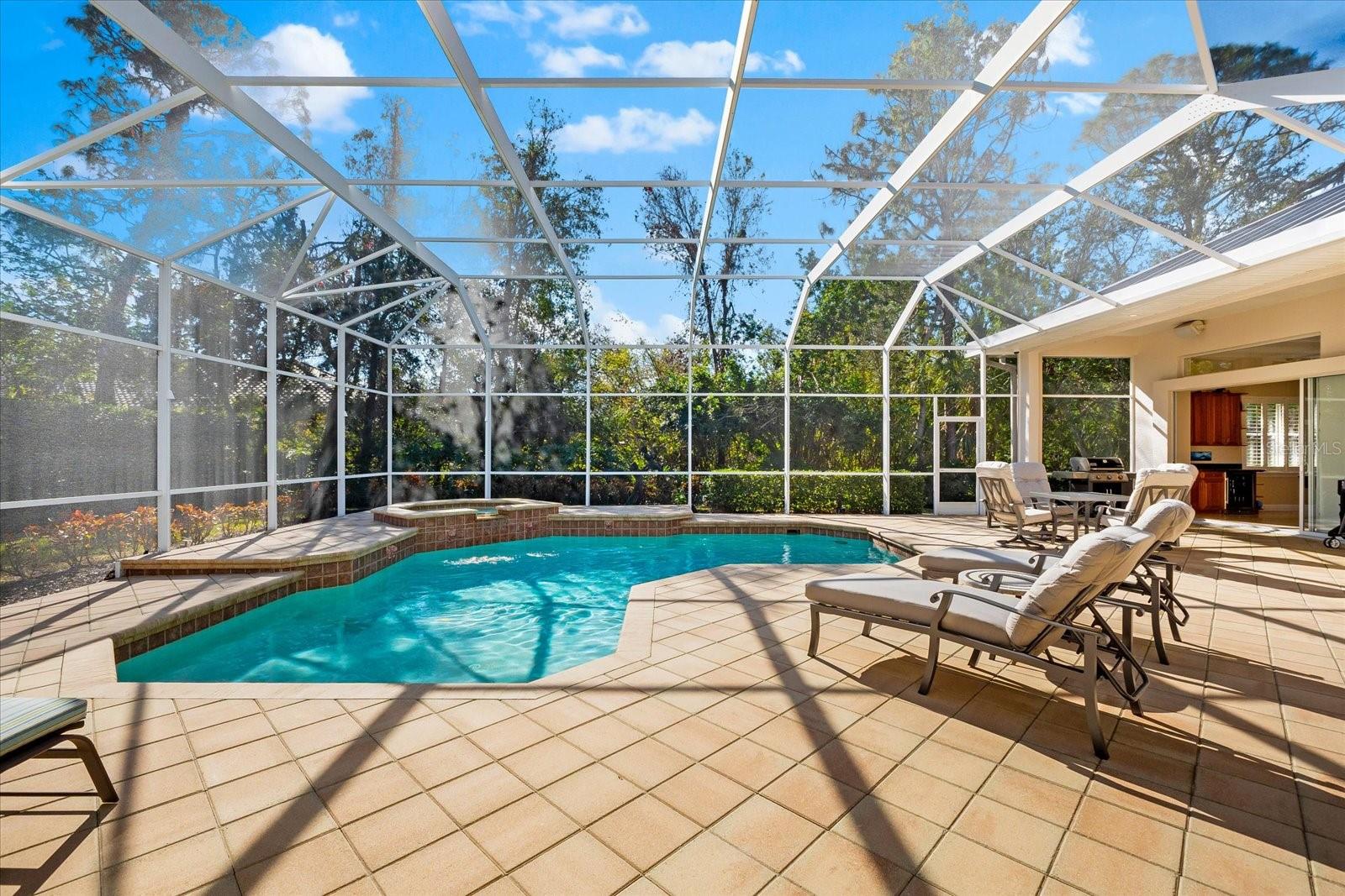 This stunning 4 Bedroom, 4.5 bath meticulously crafted 2002 residence has been updated and modernized with Smart Home technology including Control 4, Sonos, Lutron, Tesla, ClareVision, Pentair, and MyQ. Experience unparallelled convenience by controlling nearly every aspect of your living environment from anywhere--whether you're cozied up on the couch, on the way home, or away on vacation. A new metal roof and solar panels (PV) with Tesla inverters installed in March 2024 are the ultimate energy saver and have dramatically slashed electricity bills by over 80%. The inviting family room complete with gas fireplace, large screen TV and an immersive Klipsch surround sound system is perfect for movie nights and gatherings. Challenge friends in the game room equipped with a TV, pool table and dartboard, or retreat to the elegantly appointed office featuring built-ins and a serene reading tower. The gourmet kitchen is a chef's delight, showcasing a Wolf 6-burner cooktop, stainless steel appliances, endless granite countertops, cherry cabinetry, and a large walk-in pantry. Enjoy the tranquility of the secluded screened outdoor area with gas fireplace and a soothing fountain. The spotless 3-car garage comes with a new epoxy floor, a dedicated workbench area, and an additional refrigerator for your convenience. The home opens seamlessly to the sprawling lanai, where you'll find multiple seating and entertaining areas and an incredible heated pool with spillover spa, all basking in prime southern sun. Situated on a serene .95-acre wooded lot offering complete privacy with deer wandering through your backyard and birds and wildlife abound. Laurel Oak Estates is a 24/7 guard gated community with 405 homes spread over an expansive 813 acres, with 8+ miles of walking and biking paths. Laurel Oak Country Club is one of Sarasota's premier member-owned golf clubs with 36 holes of golf, tennis, pickleball, aquatics and endless social activities. Active men's and women's golf leagues as well as daily drop-in games for all handicap levels. The staff and membership are super friendly and new members are openly welcomed. IMMEDIATE GOLF - Golf enthusiasts looking to join Laurel Oak Country Club jump straight to the top of their waitlist at closing!