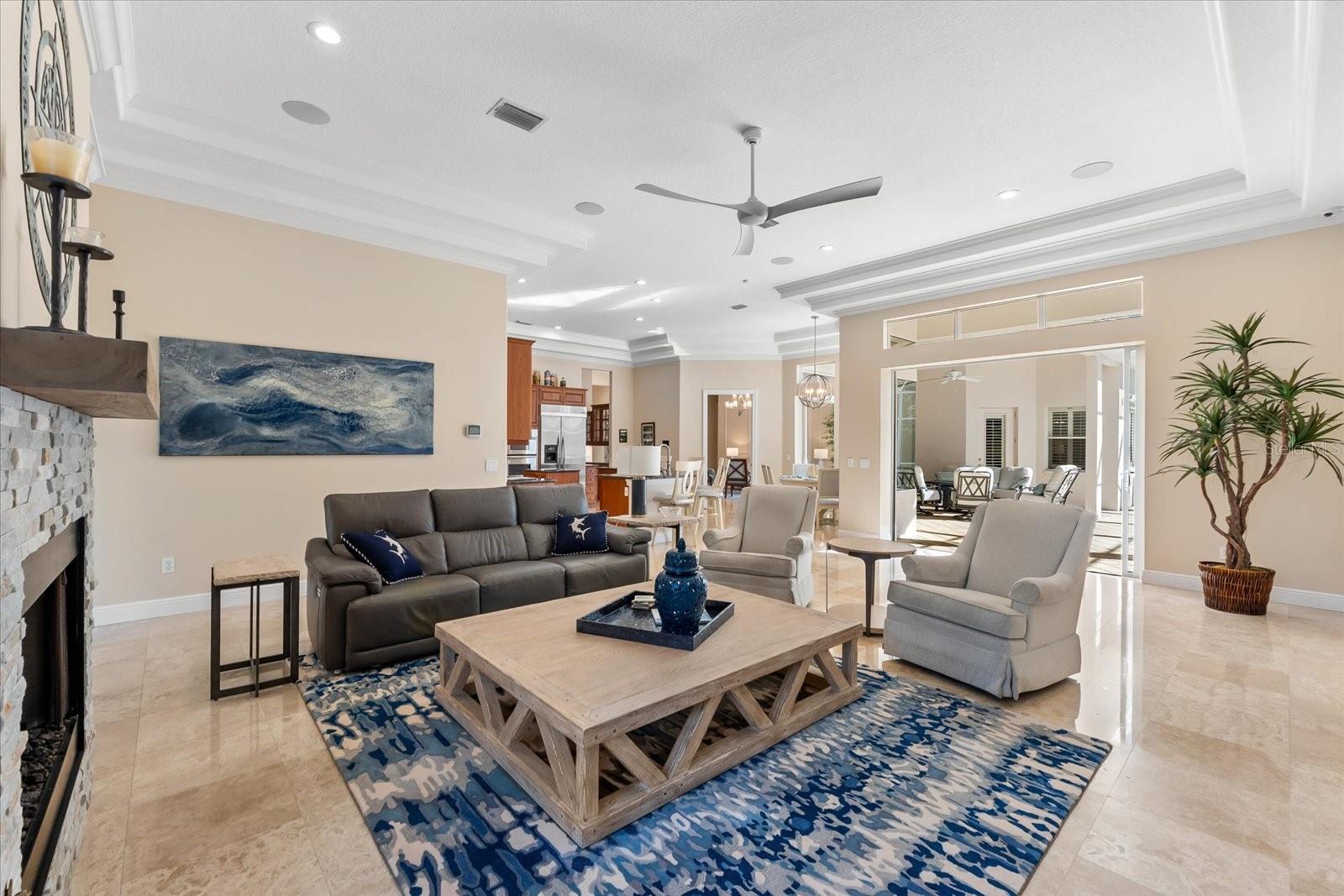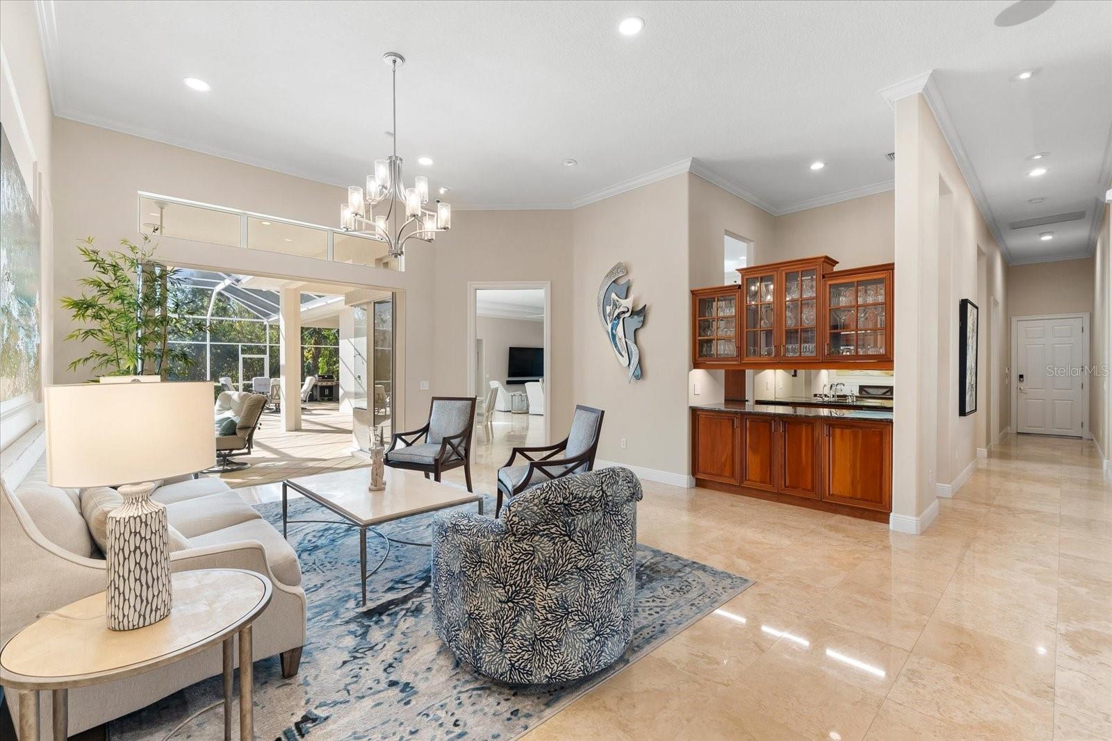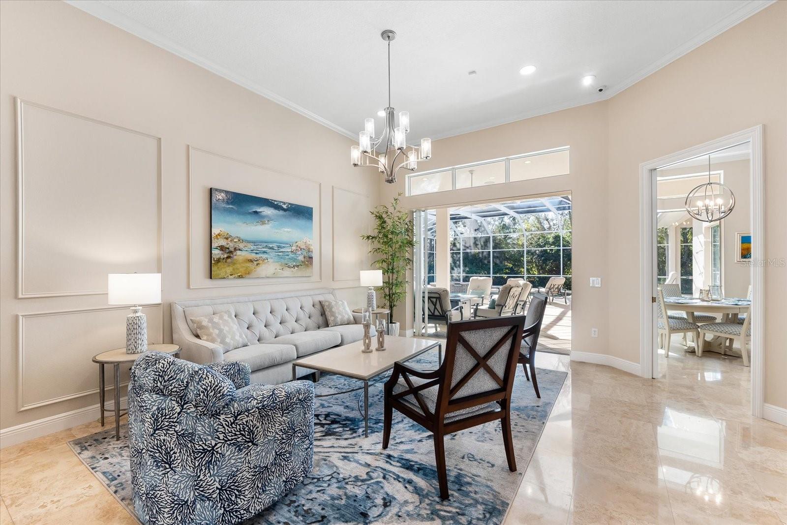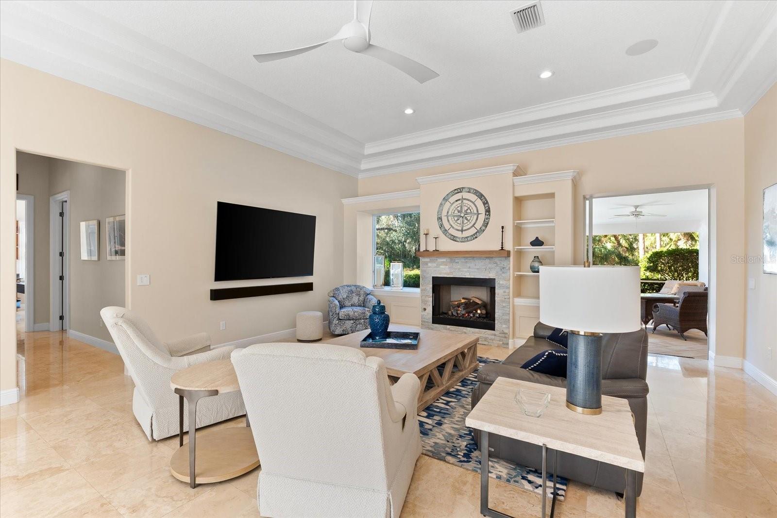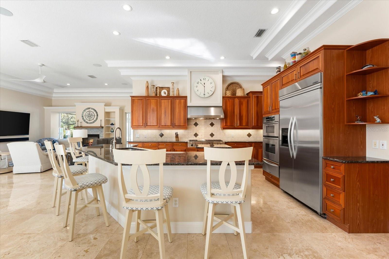 This stunning 4 Bedroom, 4.5 bath meticulously crafted 2002 residence has been updated and modernized with Smart Home technology including Control 4, Sonos, Lutron, Tesla, ClareVision, Pentair, and MyQ. Experience unparallelled convenience by controlling nearly every aspect of your living environment from anywhere--whether you're cozied up on the couch, on the way home, or away on vacation. A new metal roof and solar panels (PV) with Tesla inverters installed in March 2024 are the ultimate energy saver and have dramatically slashed electricity bills by over 80%. The inviting family room complete with gas fireplace, large screen TV and an immersive Klipsch surround sound system is perfect for movie nights and gatherings. Challenge friends in the game room equipped with a TV, pool table and dartboard, or retreat to the elegantly appointed office featuring built-ins and a serene reading tower. The gourmet kitchen is a chef's delight, showcasing a Wolf 6-burner cooktop, stainless steel appliances, endless granite countertops, cherry cabinetry, and a large walk-in pantry. Enjoy the tranquility of the secluded screened outdoor area with gas fireplace and a soothing fountain. The spotless 3-car garage comes with a new epoxy floor, a dedicated workbench area, and an additional refrigerator for your convenience. The home opens seamlessly to the sprawling lanai, where you'll find multiple seating and entertaining areas and an incredible heated pool with spillover spa, all basking in prime southern sun. Situated on a serene .95-acre wooded lot offering complete privacy with deer wandering through your backyard and birds and wildlife abound. Laurel Oak Estates is a 24/7 guard gated community with 405 homes spread over an expansive 813 acres, with 8+ miles of walking and biking paths. Laurel Oak Country Club is one of Sarasota's premier member-owned golf clubs with 36 holes of golf, tennis, pickleball, aquatics and endless social activities. Active men's and women's golf leagues as well as daily drop-in games for all handicap levels. The staff and membership are super friendly and new members are openly welcomed. IMMEDIATE GOLF - Golf enthusiasts looking to join Laurel Oak Country Club jump straight to the top of their waitlist at closing!