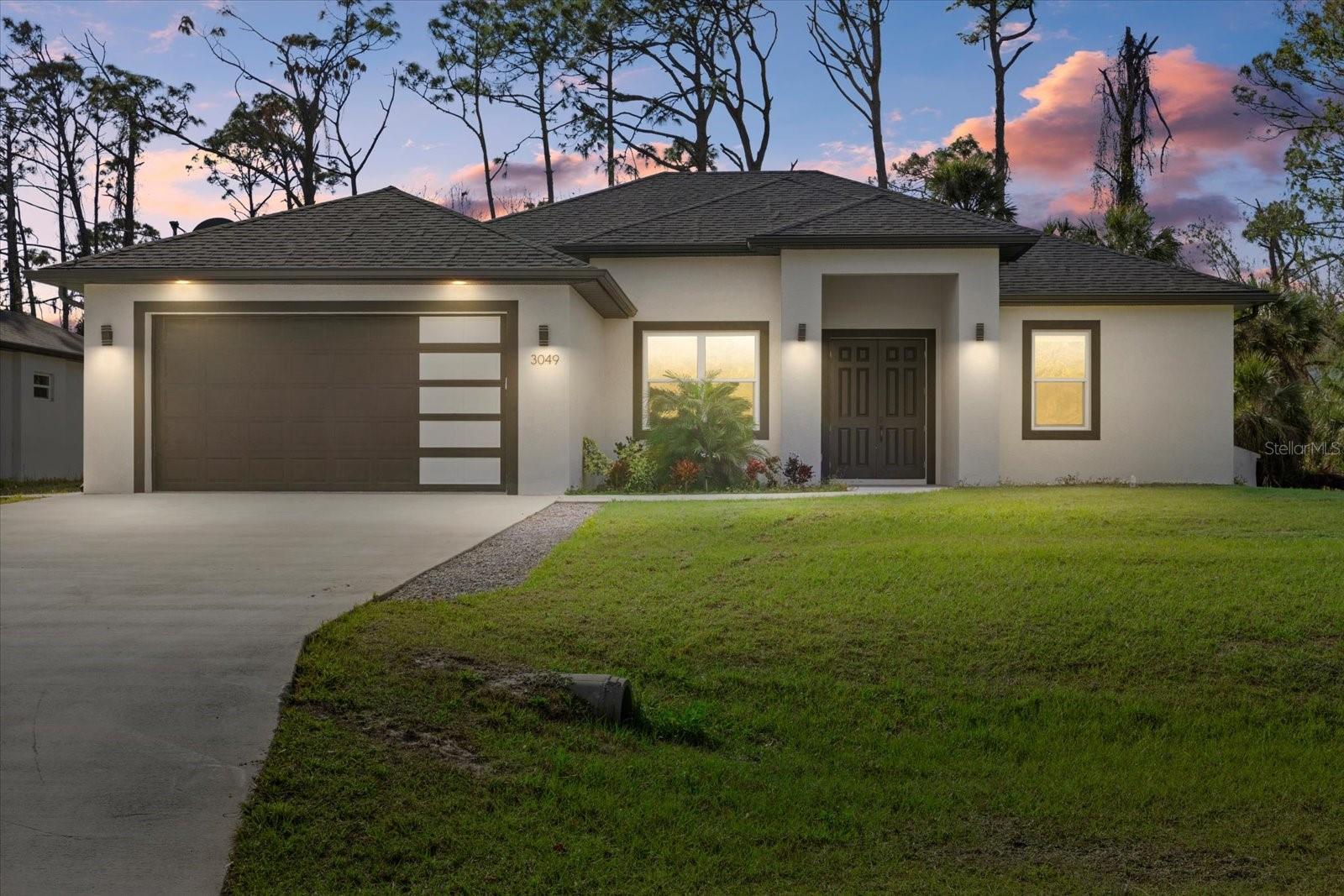 This stunning 2022 CUSTOM-BUILT HOME offers expansive living across 2,648 total square feet and 1,826 heated square feet, perfectly positioned on an OVERSIZED LOT with ample space for RV or BOAT PARKING. Embrace the Florida lifestyle with this OPEN CONCEPT design, featuring THREE BEDROOMS, a flexible DEN/OFFICE, TWO FULL BATHROOMS, and a SPACIOUS TWO-CAR GARAGE. This home is equipped with premium upgrades including, IMPACT WINDOWS AND DOORS, whole house REVERSE OSMOSIS water filtration system, WATERPROOF LUXURY VINYL FLOORING, tall 8" DOORS and stylish TALL BASEBOARDS. The gourmet kitchen features SOLID WOOD CABINETS WITH SOFT-CLOSE FUNCTIONALITY, QUARTZ COUNTERTOPS with a WATERFALL feature on the island, PANTRY CLOSET and CONTEMPORARY LIGHTING FIXTURES. The interior is distinguished by HIGH CEILINGS, with additional TRAY CEILINGS adding elegance to the living and primary bedroom area. Each room is equipped with CEILING FANS for added comfort, and the home includes a LARGE LAUNDRY ROOM with a SINK. The primary suite is a true retreat, complete with CUSTOM CABINETS in the WALK-IN CLOSETS, a DOUBLE VANITY, and a LUXURIOUS WALK-IN SHOWER. Expansive SLIDING DOORS from both the living room and master bedroom lead out to an IMPRESSIVE 27-FOOT BACK PORCH/LANAI, ideal for relaxation or entertaining. The tasteful COLOR PALETTE throughout the home enhances its MODERN APPEAL.Bring your toys! The oversized lot .29 of an acre gives you plenty of space to park them. The home is offered partially furnished.Located in a highly desirable area of North Port, this property is close to the renowned MINERAL SPRINGS, North Port's AQUATIC CENTER, as well as local schools, shopping, and dining options. Beautiful SANDY BEACHES are only a short drive away. Don't miss the chance to make this exquisite house your new home. Schedule your private showing today!