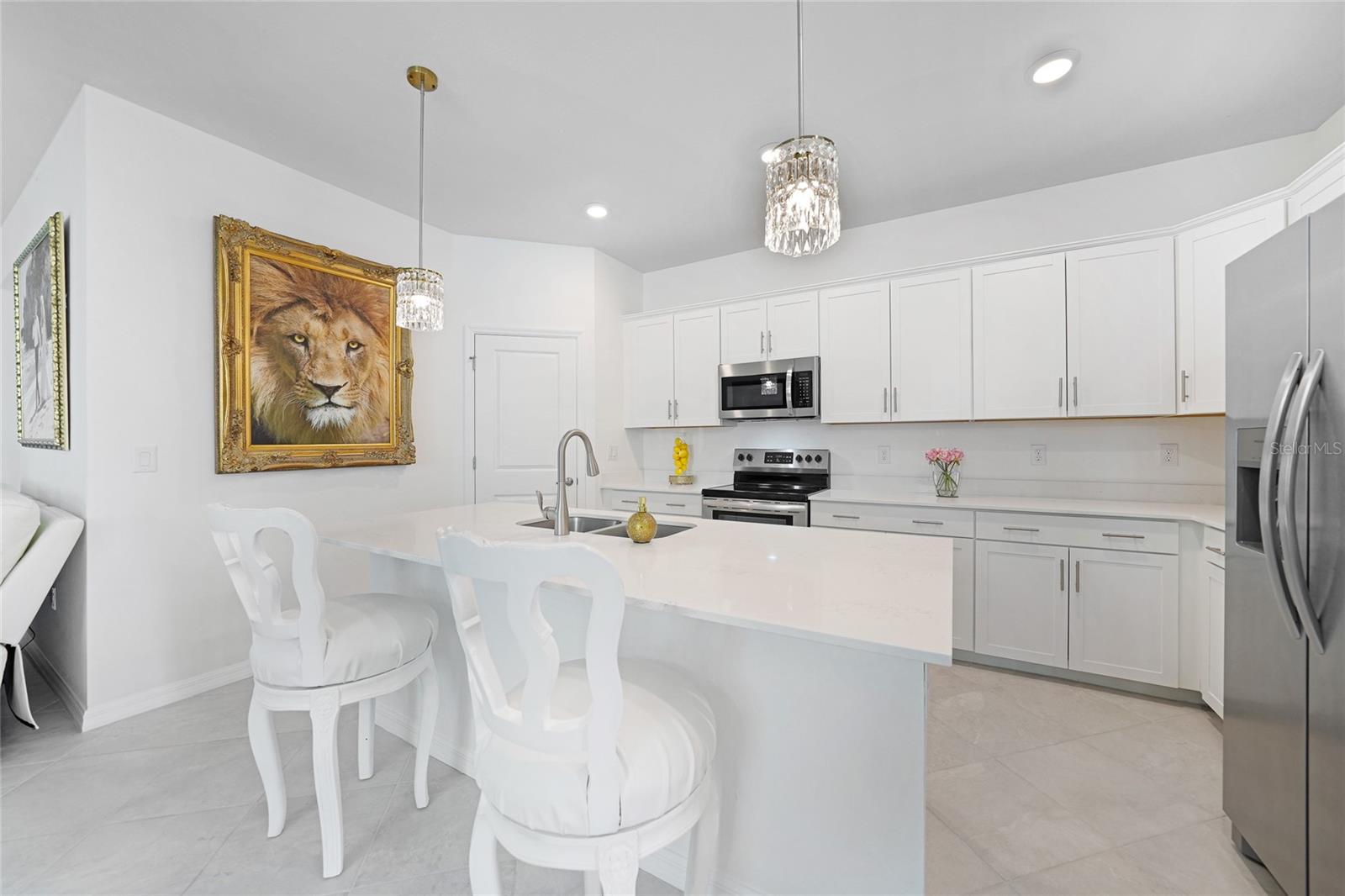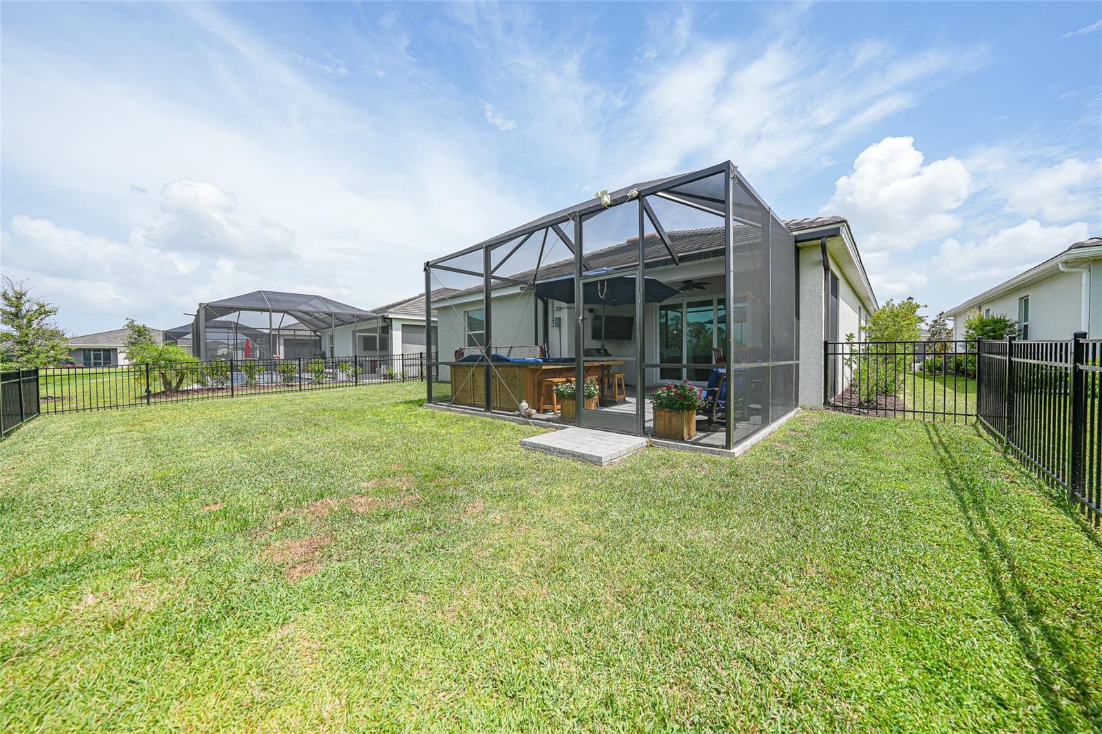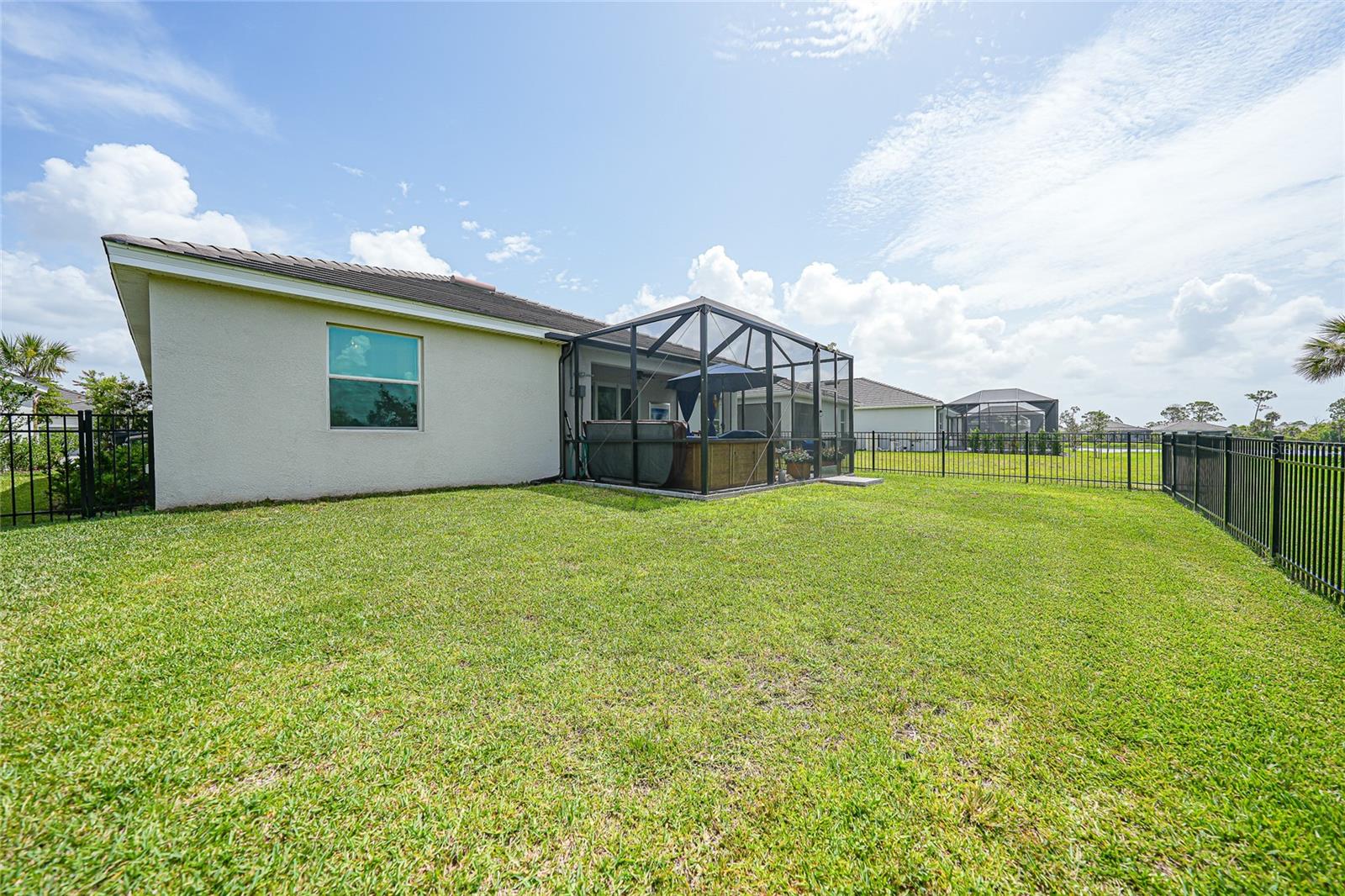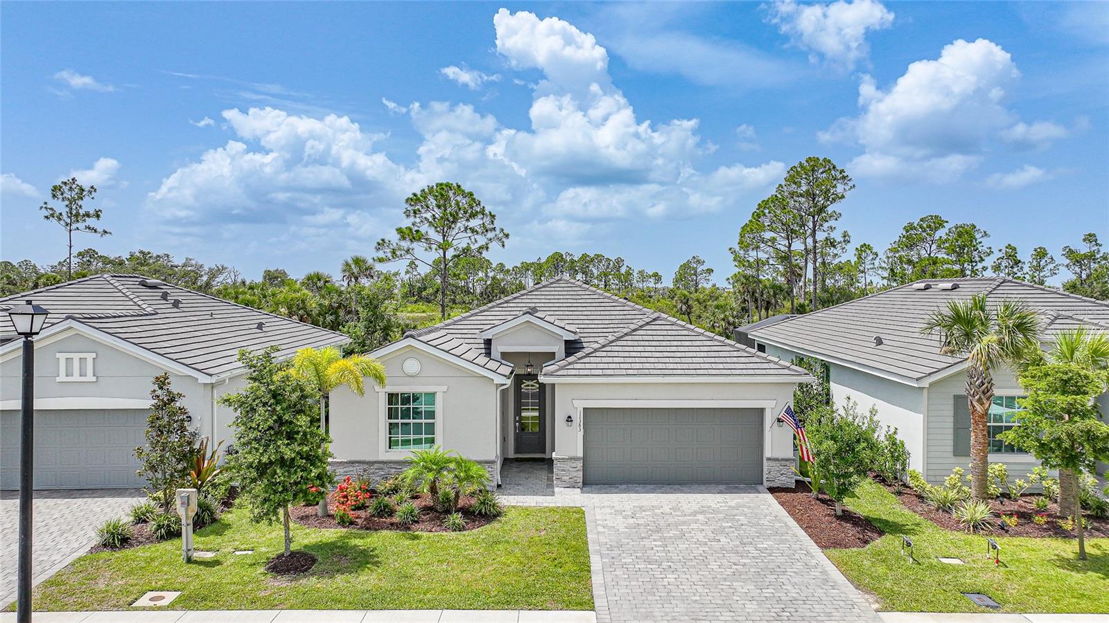 Experience the best of modern Florida living at 11383 Burgundy Drive, a beautifully concrete and stucco constructed 2023 home located in the heart of the vibrant Wellen Park community. This meticulously designed 4-bedroom, 3-bath residence offers 2,035 square feet of thoughtfully crafted living space, all on one level--ideal for families, retirees, or anyone seeking a comfortable, open-concept lifestyle. The smart split-bedroom floorplan ensures privacy for guests or multigenerational living, while soaring ceilings and ceramic tile flooring throughout create an airy, modern feel. The chef-inspired eat-in kitchen is a true centerpiece, featuring a large island, stone countertops, upgraded cabinetry, walk-in pantry, and stainless-steel appliances. Step outside into your private retreat: an extended, fully enclosed screened-in lanai with a brand-new 6-person spa and tranquil pond views, perfect for relaxing evenings or entertaining under the stars. The fenced-in backyard offers both privacy and space for pets or play, with ample room to add a custom pool or outdoor kitchen if desired. Enjoy year-round comfort and peace of mind with hurricane-impact windows and doors, smart-home technology, energy-efficient systems, and an epoxy-finished two-car garage. Sliding glass doors connect indoor and outdoor living spaces seamlessly, enhancing the home's easy flow. Situated on a beautifully landscaped lot in a quiet, gated, and deed-restricted community, this home also benefits from low-maintenance living with an HOA that includes lawn care, cable, internet, and irrigation. Wellen Park is known for its vibrant town center, boutique shopping, waterfront dining, outdoor concerts, and easy access to walking trails, conservation areas, parks, and beaches. You're just minutes from downtown Venice, the Gulf of Mexico, and major highways, with the Atlanta Braves Spring Training stadium right around the corner. Turnkey and move-in ready, 11383 Burgundy Drive offers the perfect blend of modern upgrades, flexible living, and the best of the Florida lifestyle. **The owners have made upgrades to home. A water filter treatment throughout home. Owners have added footage on to enclosed lanai, and patio with a 6/ person spa installation. Installed a rod iron fence in back yard. All new lighting of chandeliers all Through home. Installed a sealed floor in the 2-car garage. Owners will also Leave all dcor window treatments in home. Also, all patio furniture and TV will stay with home. **