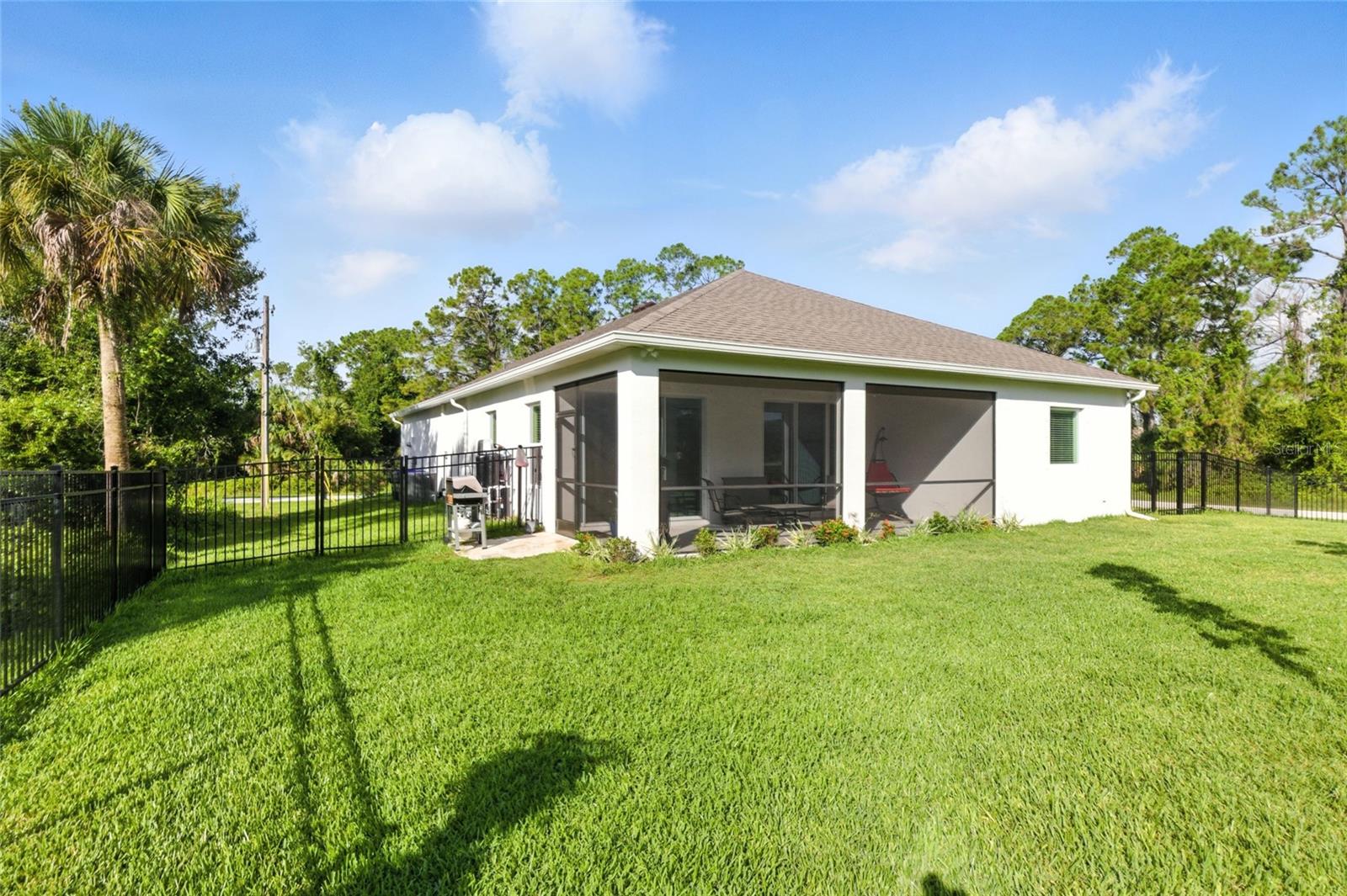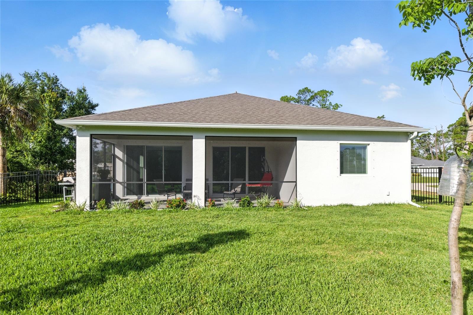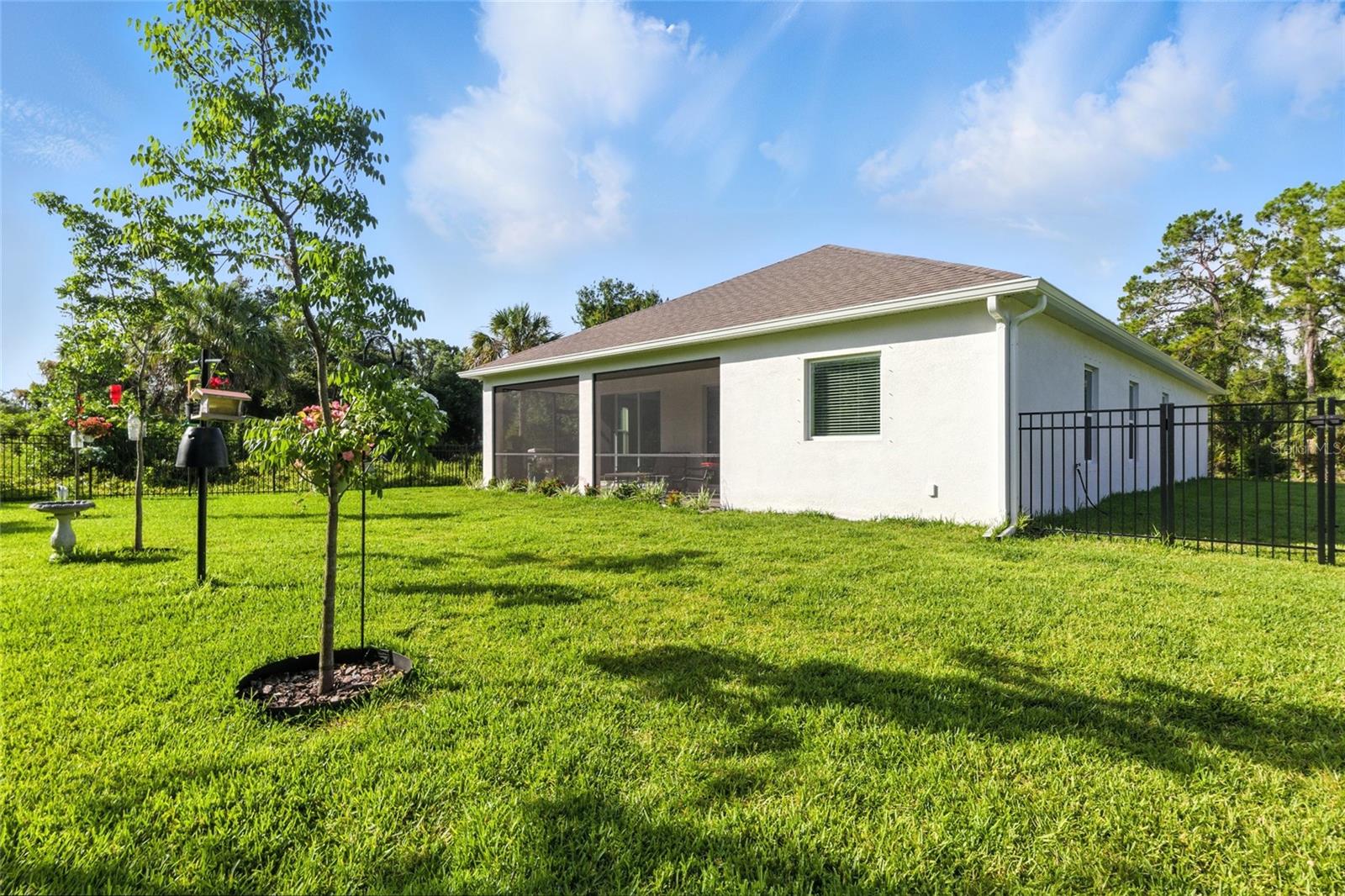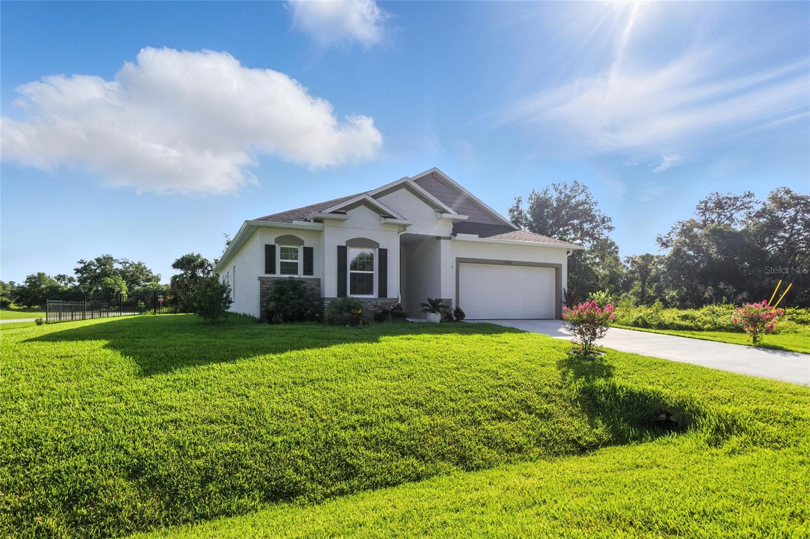 Like-New 3-Bedroom Home with Premium Designer Finishes and a Private Fenced Yard!Welcome home to this beautifully upgraded 3-bedroom, 2-bathroom residence offering 1,845 square feet of modern, open-concept living in a quiet and desirable North Port neighborhood. Every detail of this home has been thoughtfully designed to blend style, functionality, and comfort.Step inside to discover a spacious great room that seamlessly connects to the dining area and gourmet kitchen--ideal for both entertaining and everyday living. The kitchen is the centerpiece of the home, showcasing a stunning 11.5-foot island, sleek quartz countertops, soft-close cabinetry, brushed nickel fixtures, and ceramic tile flooring that flows throughout the main living areas.The primary suite offers a relaxing retreat with a tray ceiling, large walk-in closet, and a luxury en-suite bathroom featuring quartz counters, dual vanities, and a comfort-height toilet. Two additional bedrooms provide ample space for family, guests, or a home office--each carpeted for warmth and comfort.High-end touches are found throughout, including crown molding, 5" baseboards, cordless window blinds, and 9'4" ceilings that enhance the sense of space and sophistication. The home also includes a reverse osmosis filtration system under the kitchen sink and a whole-house water treatment system for added convenience.Step outside to enjoy the screened lanai overlooking a lush, fully fenced backyard with black aluminum fencing and vibrant St. Augustine grass kept green by an underground irrigation system. Exterior highlights include stone faade accents, decorative window shutters, upgraded landscaping, gutters, and a garage door opener with remotes.This home is truly move-in ready and offers the perfect combination of luxury, comfort, and low-maintenance living. With its designer finishes, modern features, and quiet location just minutes from schools, parks, shopping, and dining, this property is an exceptional find in North Port. Schedule your private showing today and fall in love with this stunning home!