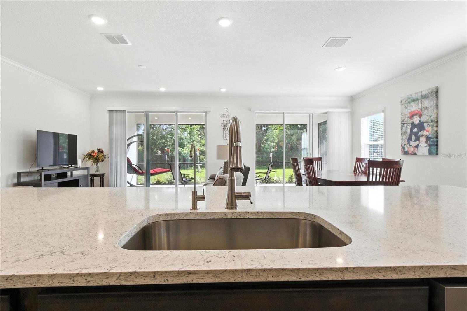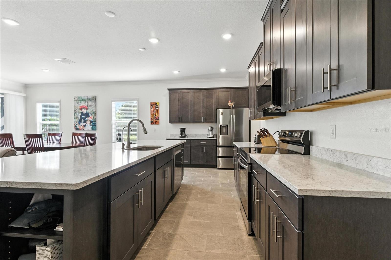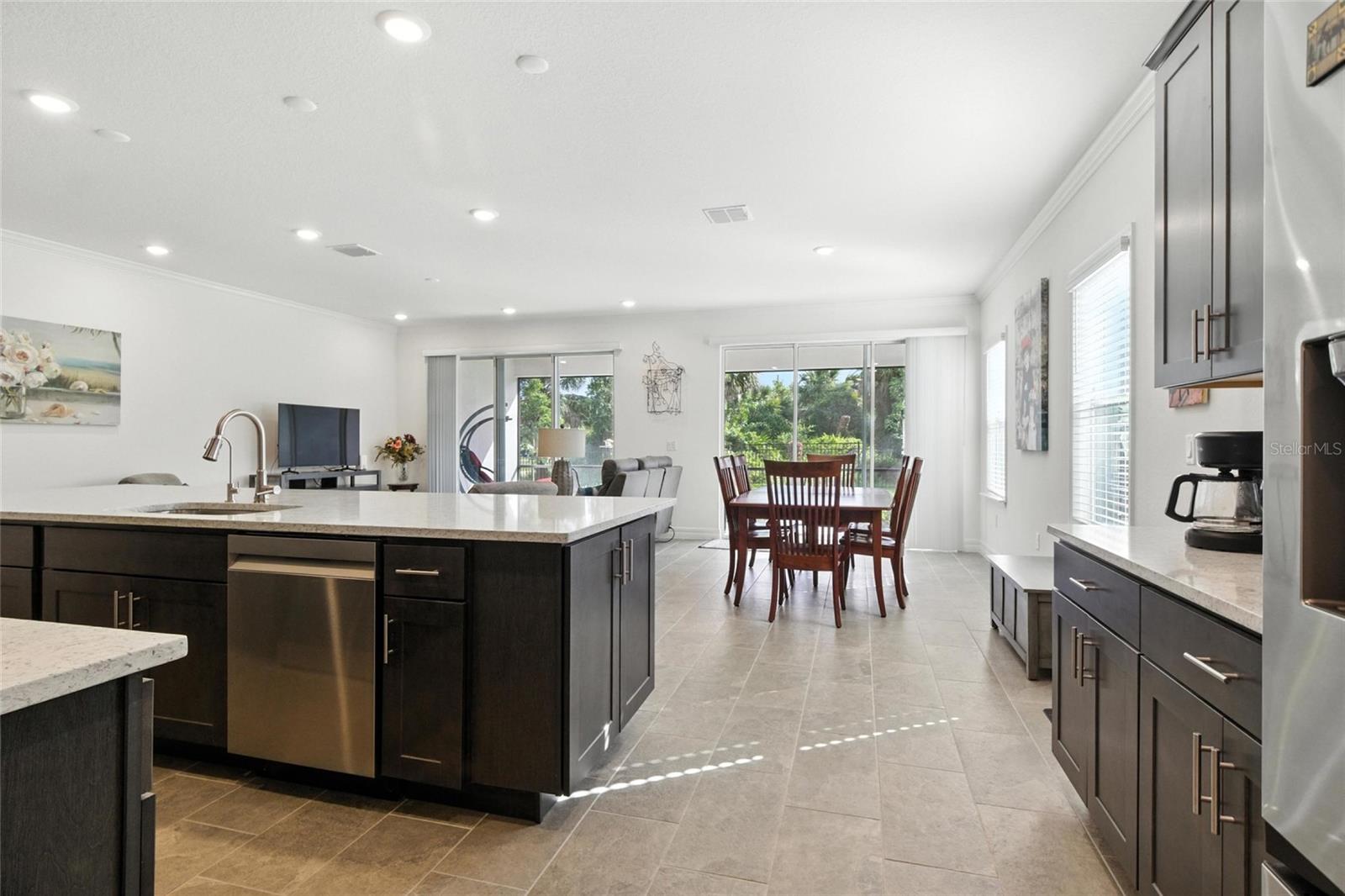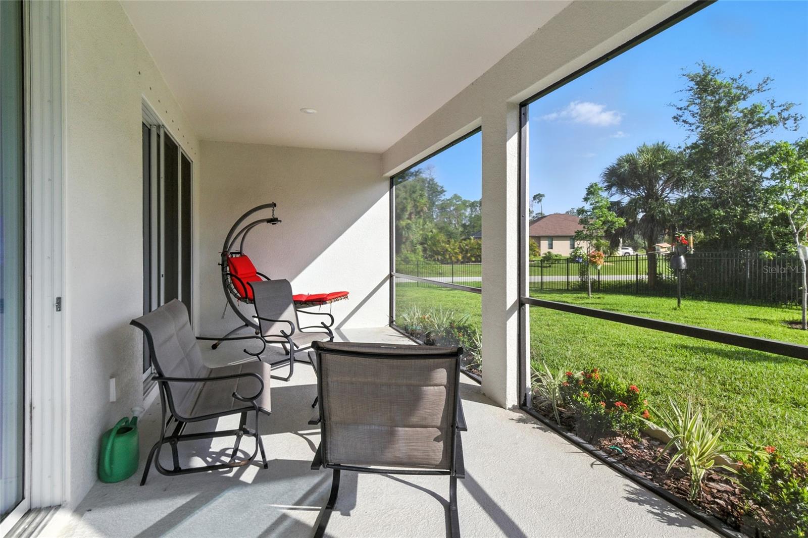 Like-New 3-Bedroom Home with Premium Designer Finishes and a Private Fenced Yard!Welcome home to this beautifully upgraded 3-bedroom, 2-bathroom residence offering 1,845 square feet of modern, open-concept living in a quiet and desirable North Port neighborhood. Every detail of this home has been thoughtfully designed to blend style, functionality, and comfort.Step inside to discover a spacious great room that seamlessly connects to the dining area and gourmet kitchen--ideal for both entertaining and everyday living. The kitchen is the centerpiece of the home, showcasing a stunning 11.5-foot island, sleek quartz countertops, soft-close cabinetry, brushed nickel fixtures, and ceramic tile flooring that flows throughout the main living areas.The primary suite offers a relaxing retreat with a tray ceiling, large walk-in closet, and a luxury en-suite bathroom featuring quartz counters, dual vanities, and a comfort-height toilet. Two additional bedrooms provide ample space for family, guests, or a home office--each carpeted for warmth and comfort.High-end touches are found throughout, including crown molding, 5" baseboards, cordless window blinds, and 9'4" ceilings that enhance the sense of space and sophistication. The home also includes a reverse osmosis filtration system under the kitchen sink and a whole-house water treatment system for added convenience.Step outside to enjoy the screened lanai overlooking a lush, fully fenced backyard with black aluminum fencing and vibrant St. Augustine grass kept green by an underground irrigation system. Exterior highlights include stone faade accents, decorative window shutters, upgraded landscaping, gutters, and a garage door opener with remotes.This home is truly move-in ready and offers the perfect combination of luxury, comfort, and low-maintenance living. With its designer finishes, modern features, and quiet location just minutes from schools, parks, shopping, and dining, this property is an exceptional find in North Port. Schedule your private showing today and fall in love with this stunning home!