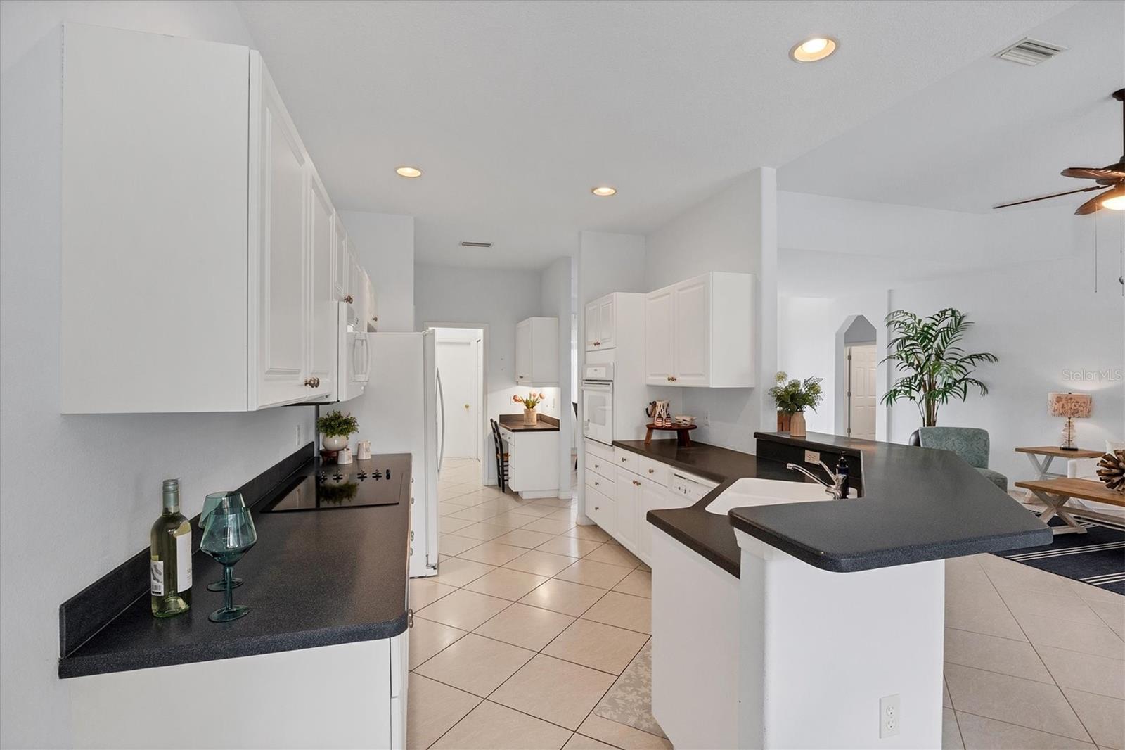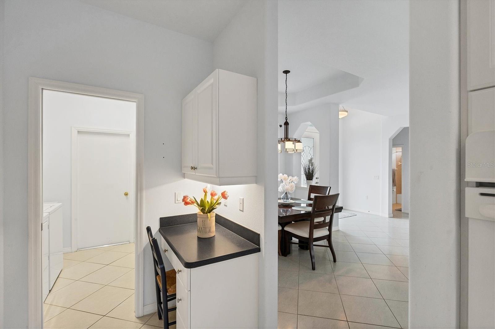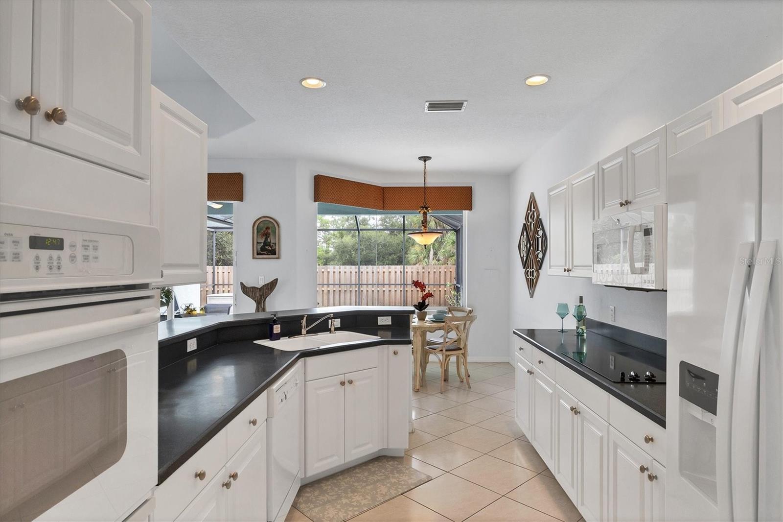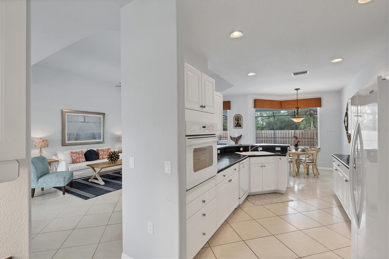 One or more photo(s) has been virtually staged. Relax, entertain, and enjoy it all! This 3-bedroom, 2-bath pool home is beautifully designed and ready to fit your lifestyle offering the perfect balance of indoor and outdoor living. From the charming front porch and double-door entry, step inside to a spacious open-concept layout with volume ceilings, abundant natural light, and a thoughtful split-bedroom design. The living room flows seamlessly to the lanai through oversized sliders, while the formal dining room boasts a tray ceiling that adds elegance to every gathering. The kitchen is a true centerpiece, featuring a breakfast bar, a built-in desk, a large pantry, and a breakfast nook framed by an aquarium window overlooking the sparkling pool. Ceramic tile flooring extends through the main living areas for easy maintenance and timeless appeal. The primary suite offers a generous 19x14 bedroom with tray ceiling, walk-in closet, and a spacious bath with dual sinks, a walk-in shower, and private slider access to the pool. Guests will enjoy their own wing with two additional bedrooms and a full bath, ensuring comfort and privacy. Beyond the living spaces you'll appreciate the large laundry room with storage and folding counter, plus an oversized 2+ car garage with a dedicated 13x10 workshop/storage area, pull-down attic stairs, and drop-down shelving. Step outside to your private backyard oasis, complete with a screened lanai and a sparkling pool. It's the perfect area for lounging or entertaining. The fenced yard provides peace of mind and added privacy. Recent updates add confidence with a brand-new roof (June 2025), new pool pump, 2024 hot water heater, and 2024 pool cage screens. Low HOA fee of just $889 per year (covering irrigation) and no CDD fee make this home affordable and stress-free. All of this in a prime Venice location, just minutes from Downtown Venice, Gulf beaches, golf courses, shopping, dining, and entertainment. Plus, it's not located in a flood zone. This home checks every box: style, space, updates, and location. Don't miss the opportunity to make it yours!