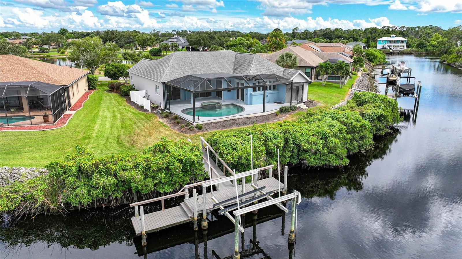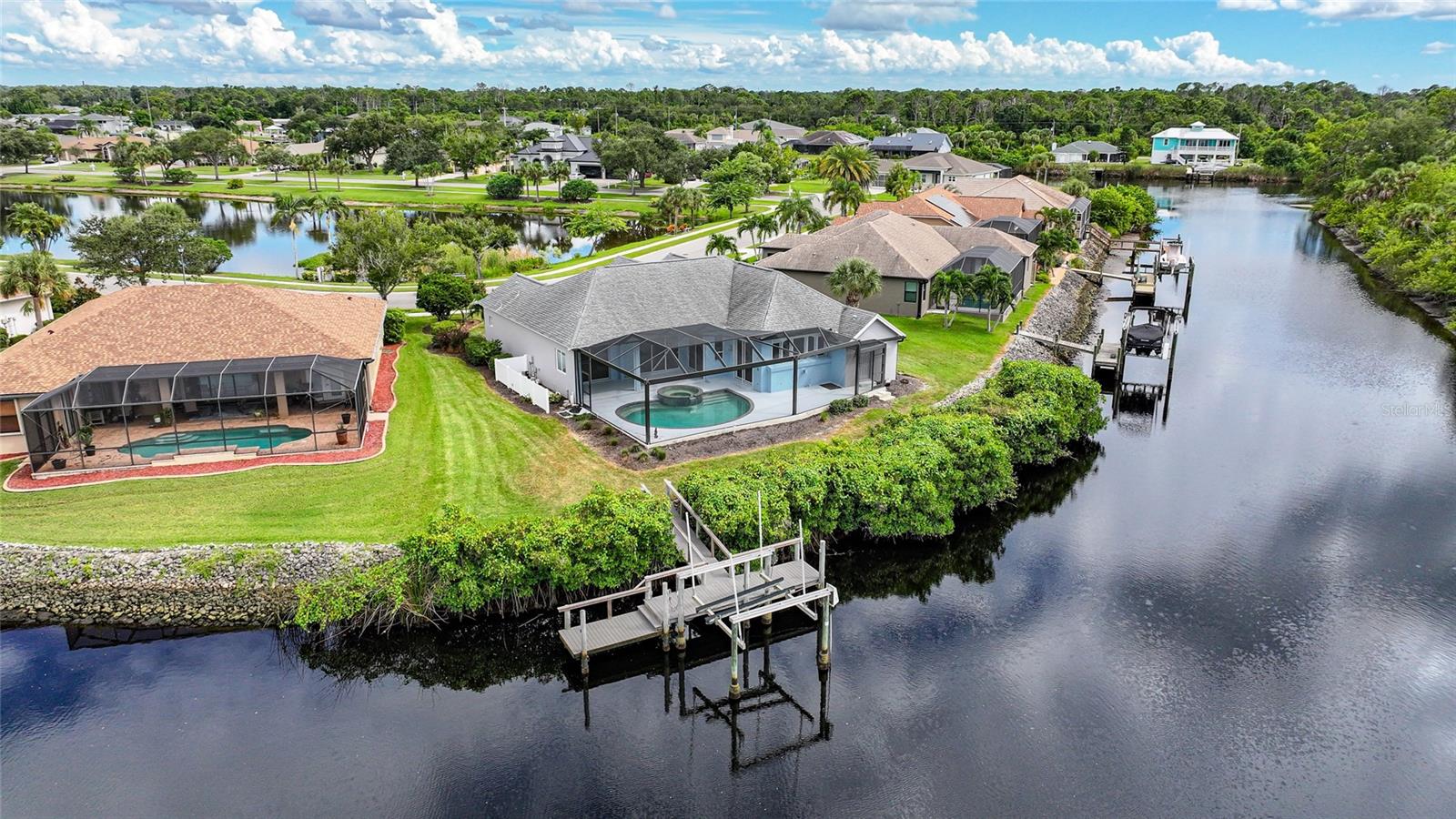 Under contract-accepting backup offers. Welcome to this beautifully maintained waterfront retreat in the highly sought-after community of North Port. This 3-bedroom, 3-bathroom pool and spa home with a 2-car garage blends elegance, functionality, and the ultimate Florida lifestyle. From the moment you arrive, you'll notice the pride of ownership and attention to detail that set this property apart.Step inside to find a bright, open floor plan designed for both comfort and entertaining. The spacious living areas flow seamlessly, enhanced by expansive windows and sliding doors that bring in abundant natural light while offering breathtaking water views. The home's hurricane-rated windows and shutters, including an electric shutter on the back slider, provide peace of mind during storm season, while recent upgrades ensure modern convenience. A new hot water heater was installed in 2022, and the "picture screen" pool cage was completed in 2021, maximizing panoramic views of the water while creating the perfect setting for outdoor living.The gourmet kitchen anchors the heart of the home, offering ample storage and a welcoming space for preparing meals or gathering with family and friends. The private primary suite offers a serene retreat, complete with direct access to the lanai and pool area, while the additional bedrooms are generously sized and perfect for family or guests.Step outside to your own private oasis. The expansive lanai features a sparkling pool and spa, all set against the backdrop of wide canal views. With 152 feet of waterfront and a 7,500 lb. boat lift, this property is a boater's dream, providing direct access to the waterways and endless opportunities to explore Southwest Florida's coastline. Whether you're relaxing poolside, entertaining outdoors, or heading out on the boat, this home was designed for a luxury waterfront lifestyle.Situated in a desirable location, you'll enjoy the best of both worlds--quiet living with easy access to shopping, dining, golf, and the Gulf beaches. This home is not just a place to live, but a true Florida escape.Don't miss the opportunity to own this meticulously cared-for waterfront gem. Schedule your private showing today and experience the lifestyle you've been waiting for.