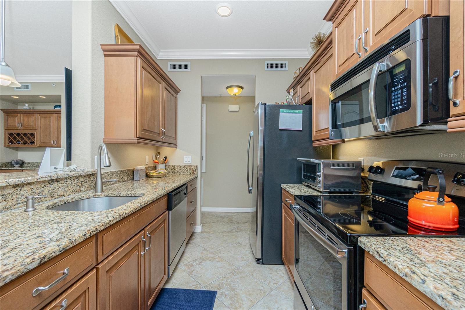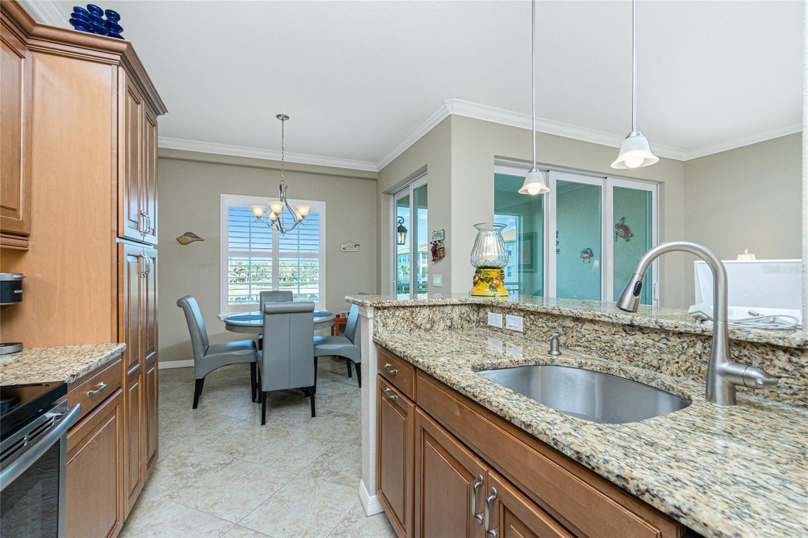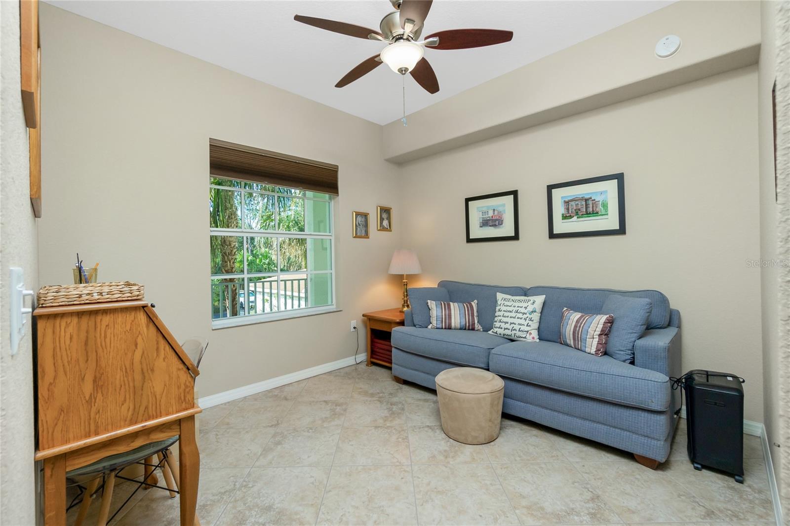 Fabulous Location and Modern Comfort in this meticulously maintained 2Bed/2Bath (+office/den) unit at San Lino Condominiums, a lovely 132-unit gated community nestled 2 miles from vibrant downtown Venice and only 3 miles to the beach. This move-in-ready condo offers the perfect blend of convenience, luxury and serene water views. Packed with upgrades and thoughtful details including diagonal tile flooring throughout, granite countertops, raised-panel wood cabinets with soft-close drawers, under-cabinet and recessed lighting, stainless steel appliances, including a new dishwasher, crown molding, trey ceiling in the foyer, and nice architectural touches like coved archways. The open layout, abundant natural light, high ceilings, a dry bar with wine rack, and a screened lanai overlooking the pond make this unit ideal for entertaining guests. The spacious Primary suite includes two closets and en-suite bathroom with dual sinks, and a tiled walk-in shower with updated glass doors. Additional features include a versatile den/office, a laundry room, interior storage room with built-in cabinets, a detached one-car garage (12'x19'), and a shared exterior storage room (8'x8') for all your extras. Safety and peace of mind are assured with impact-resistant glass windows and sliding doors, along with the security of a second-floor location. Amenities for San Lino residents include a clubhouse, fitness center, heated pool, and sidewalks that surround the community. Don't miss your chance to live the ultimate Florida lifestyle!