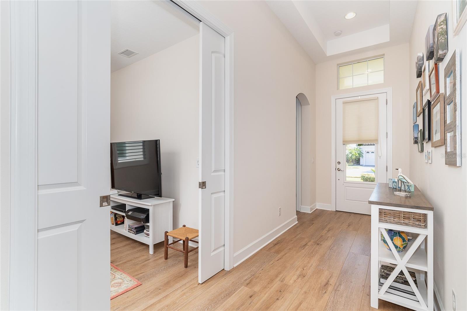Welcome to Venice FL, where you'll find the perfect blend of coastal beauty, small-town charm, and an active lifestyle. This island town's charming main street area offers everything from a seasonal farmer's market to shopping, dining and one of the country's largest community theaters. Grand Oaks is truly in the heart of it all, located three miles to downtown Venice and Venice Beach. Three semi-private Championship Golf Courses - Capri Isles, Calusa Lakes and Waterford Golf Club - are also just minutes away from this private, gated enclave of only 55 homes.There is nothing quite like Grand Oaks with its low fee, low maintenance, active social lifestyle centered around the Residents' Club. This Coastal themed Valencia plan offers 2 bedrooms and 2 baths plus a den. Hurricane impact glass throughout the home provides year-round peace of mind and comfort. Tray ceilings emphasize ceiling heights of 12' in the Foyer and 10' in the Great Room and Dining Room. The Kitchen is equipped with GE Slate fingerprint resistant appliances, custom wood cabinetry with 3" crown molding, under cabinet lighting, and granite tops with decorative backsplash. The open concept design and 8' tall by 12' wide pocketing glass doors open the home to the Lanai and enhance the lush, private view of the greenery surrounding the community. A relaxing Owner's bath features a luxurious soaking tub, separate shower, and separate vanities with abundant storage under granite counter tops. Please call now, your Grand Oaks lifestyle awaits!