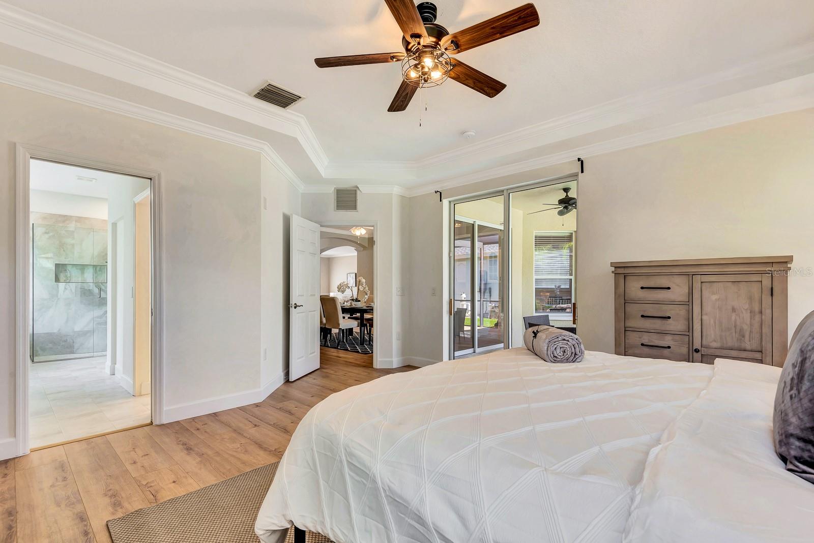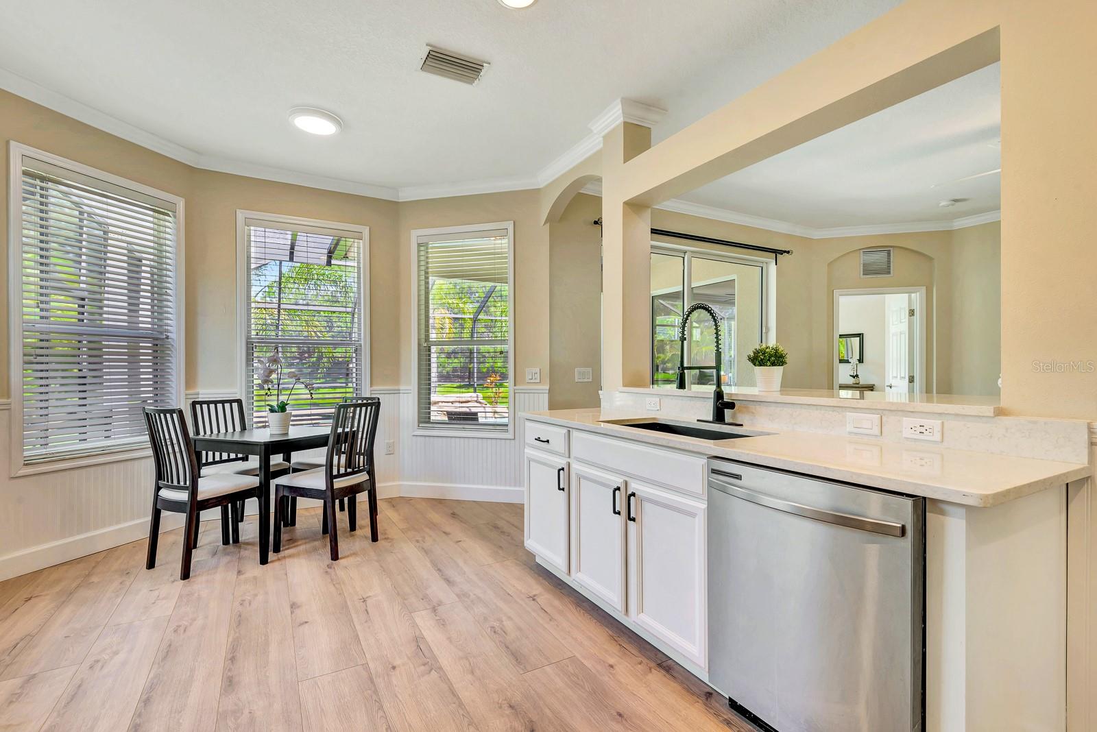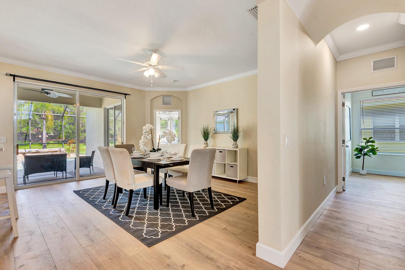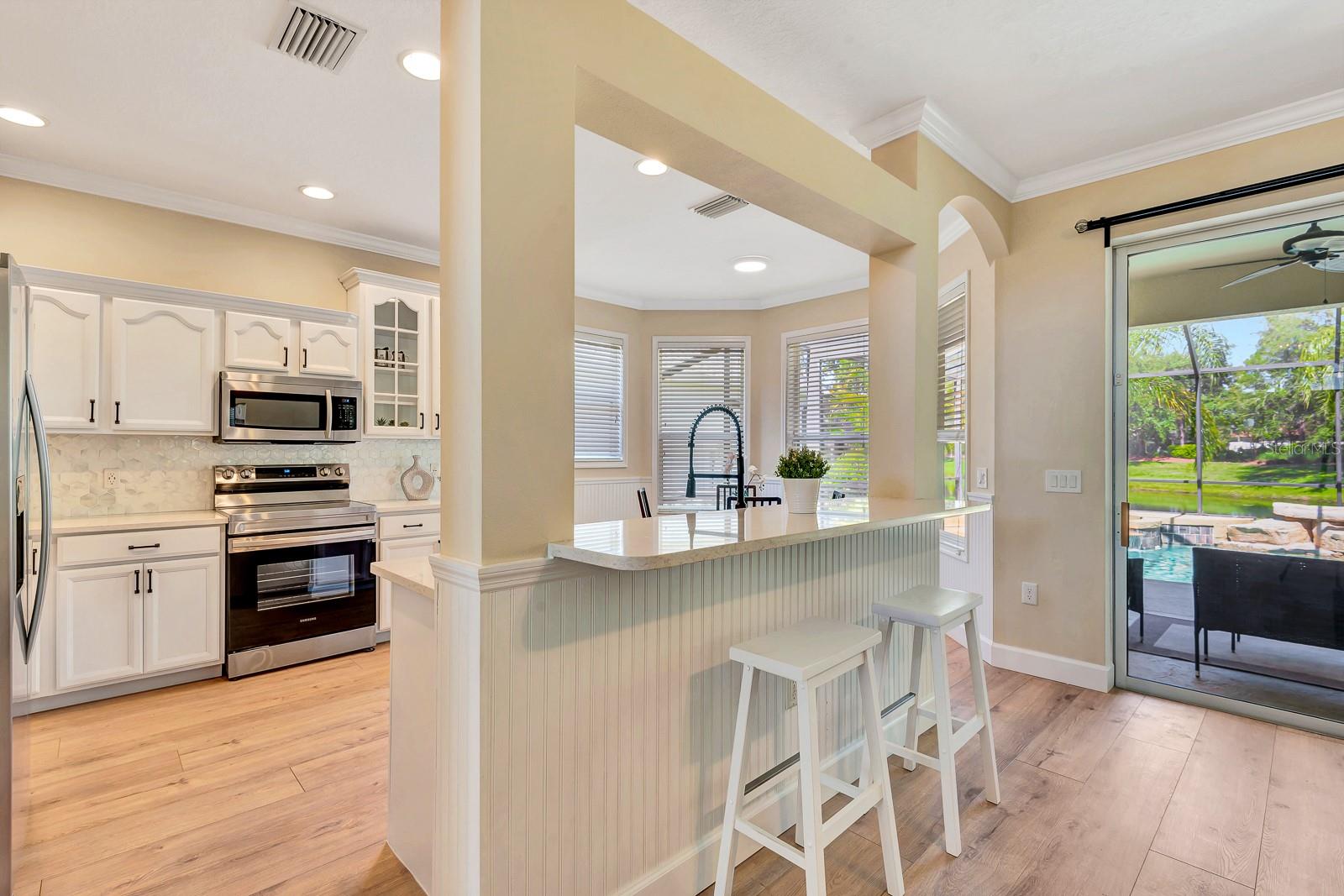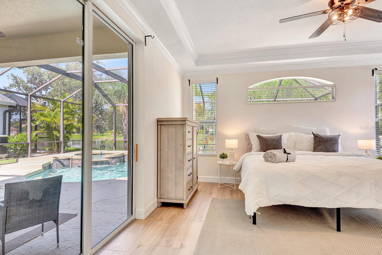 This beautifully updated 5-bedroom, 3.5-bath pool home with a 2-car garage in Greenbrook Village is tucked away in the highly desirable Lakewood Ranch community, offering the perfect blend of comfort, style, and functionality. Freshly painted and meticulously maintained, this 2,575-square-foot residence is move-in ready and designed for modern Florida living. From the moment you step inside, you're welcomed by a bright and airy open-concept floor plan featuring brand-new luxury vinyl flooring and a warm, neutral palette throughout. A spacious formal dining area sets the stage for special gatherings, while expansive sliding glass doors invite natural light and seamless indoor-outdoor living. At the heart of the home is the chef-inspired kitchen, showcasing sleek quartz countertops, stainless steel appliances, a breakfast bar, ample cabinetry, and an inviting eat-in nook perfect for casual mornings. Overlooking the kitchen is the cozy family room ideal for everyday living and entertaining alike. The first floor also features not one, but two generously sized bedrooms, including the luxurious primary suite with tray ceilings, walk-in closet, and private access to the screened lanai. The newly renovated spa-like primary bath is designed for relaxation, offering dual vanities, a soaking tub, and a walk-in shower. The second downstairs bedroom is perfect for guests, a nursery, or a home office, with easy access to the nearby half bath. Upstairs, a flexible loft area provides endless possibilities for a media room, study zone, or play space. Three additional bedrooms, each thoughtfully arranged, are accompanied by two fully renovated bathrooms featuring modern finishes and ample storage. Step outside to your private backyard oasis--an expansive screened lanai with a sparkling saltwater pool, peaceful pond views, and a fenced yard ideal for pets, play, or quiet relaxation. Additional upgrades include a new roof (2021), A/C (2018), water heater (2023), water softener, central vacuum system, newly renovated flooring, energy-efficient LED lighting, and tamper-proof outlets throughout. The home is also pre-wired for a security system for added peace of mind. Greenbrook village Amenities are Adventure park, Sports facilities, Walking and bike trails Top- Rated schools with common area maintenance of common areas and reclaimed Irrigation With a HOA annual Fee of $110.00, just minutes from shopping, dining, and I-75, with quick access to downtown Sarasota, the UTC Mall, and the pristine beaches of the Gulf Coast, this home truly offers the ultimate Lakewood Ranch lifestyle. Don't miss the opportunity to experience this exceptional property--schedule your private showing today!