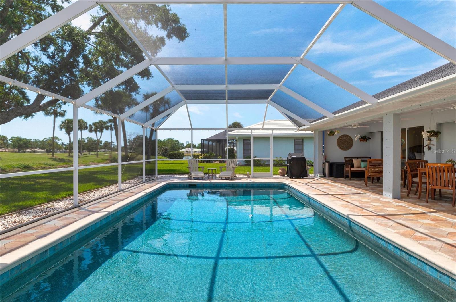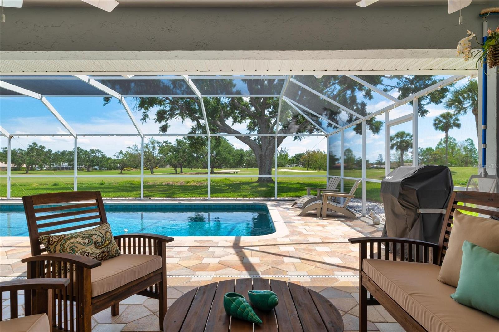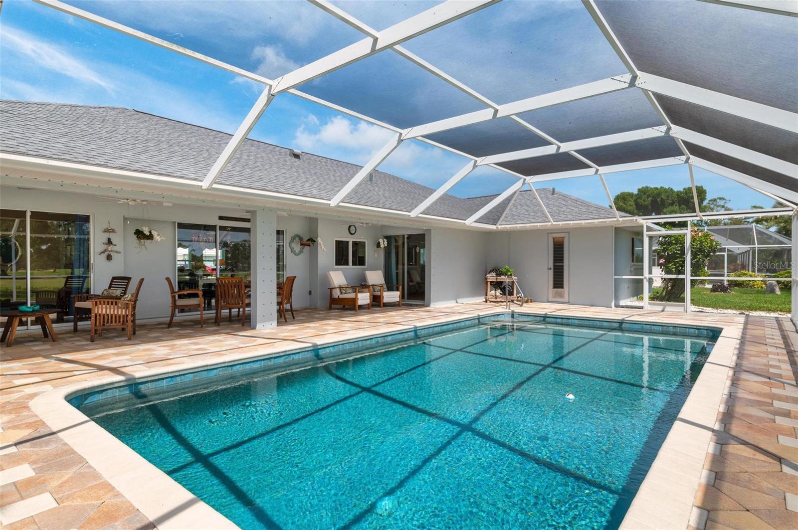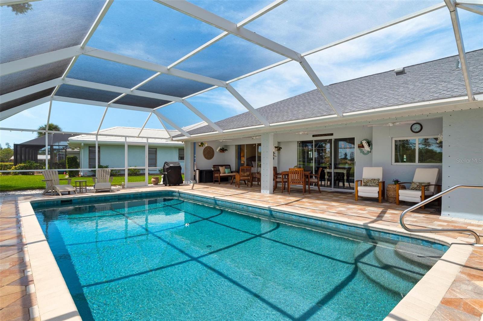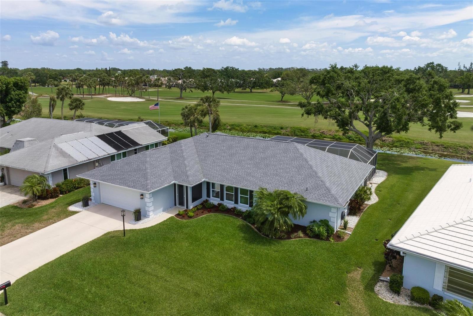 House Beautiful! You will appreciate the love and care that has gone into this stunning 3 bedroom, 3 bath custom King Built home set on a prime lot in The Jacaranda West Homeowner's Association enjoying sparkling water and panoramic fairway views of the Jacaranda Golf and Country Club. This delightful, beautifully decorated worry-free home has been updated throughout including hurricane protection for the whole house with new roof in 2020, impact resistant windows, Hurricane garage door, Hurricane rated entry door and Hurricane fabric for all lanai sliders. You'll find new stainless kitchen appliances 2021, fresh decorator Benjamin Moore paint inside and out, crown molding, shiplap, a new hot water heater and new fans inside and out, the list goes on and on. The sliding glass doors pocket in the living room and master bedroom opening the home to the expansive lanai area overlooking the huge sparkling pool that has been gorgeously resurfaced plus a new tile line and filter pump. The pool cage was renovated in 2020 with "no se-um' screening, ceramic coated screws and fresh paint. Worry -free! At days end come home and have dinner under the stars enjoying the gorgeous hues of the evening sunset and the flurry of the tropical Florida birds and wildlife for your daily viewing enjoyment. You are conveniently located minutes to your choice of area sandy beaches, downtown Venice for restaurants and shopping. What else can you do? How about playing golf or tennis, bike trails, fishing, boating, Wellen Park for the Atlantic Braves Spring training and outdoor events. Your choices are endless. Welcome to Paradise.