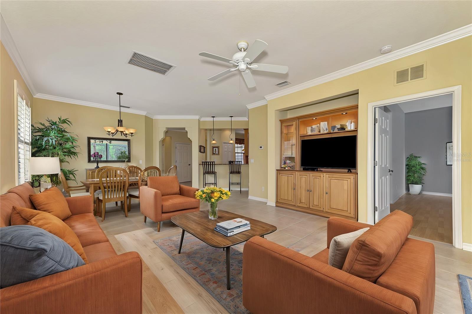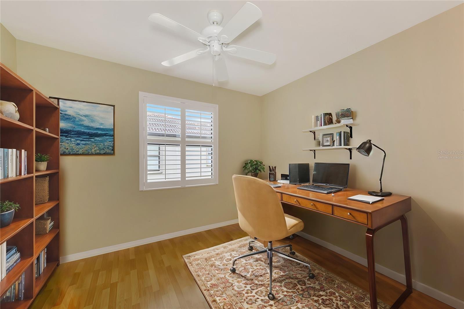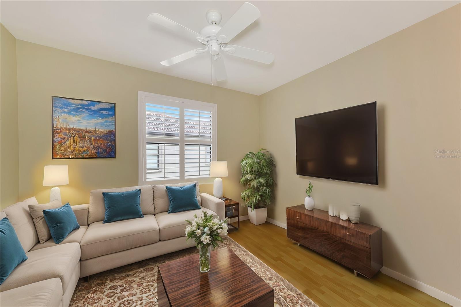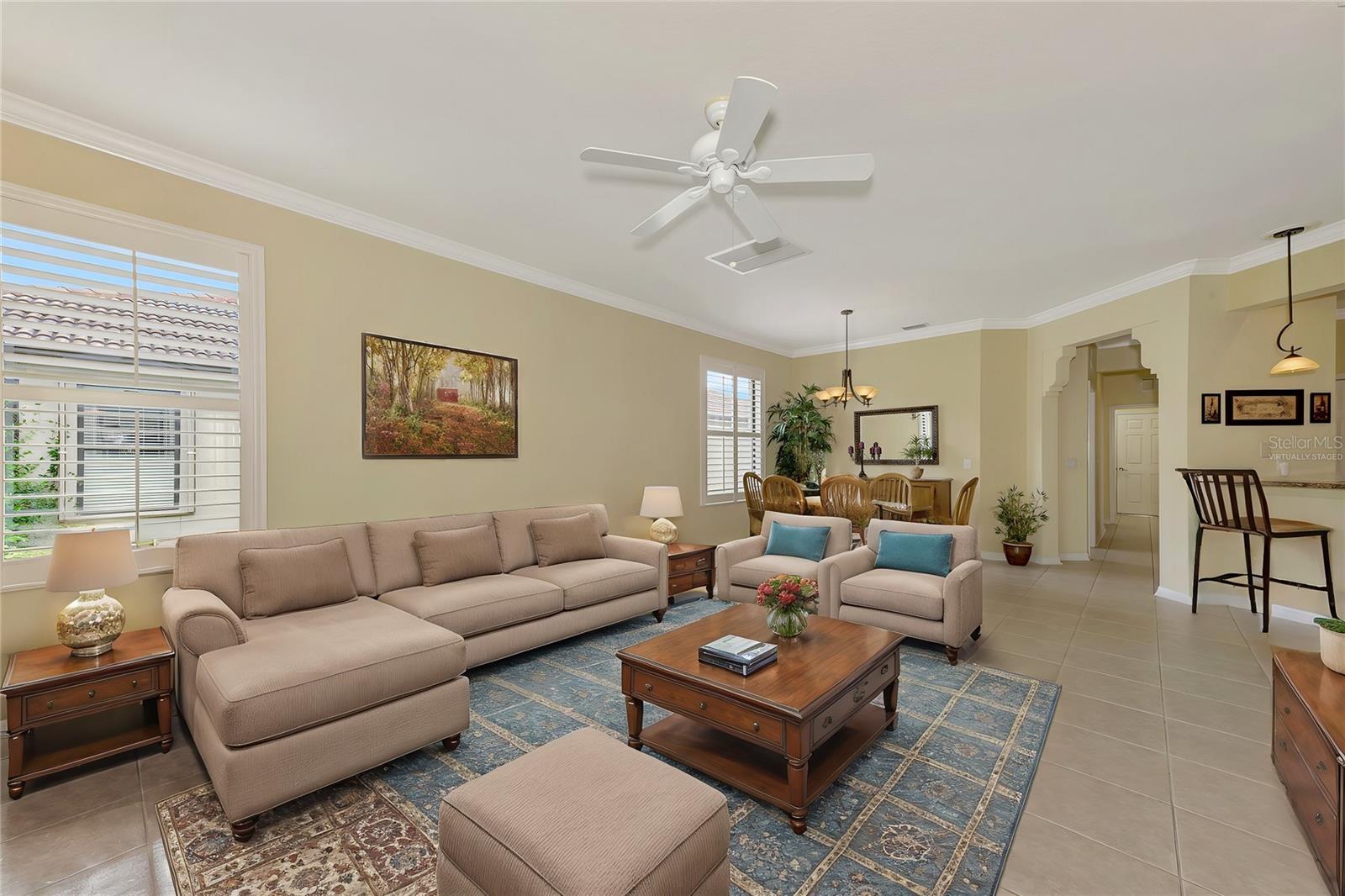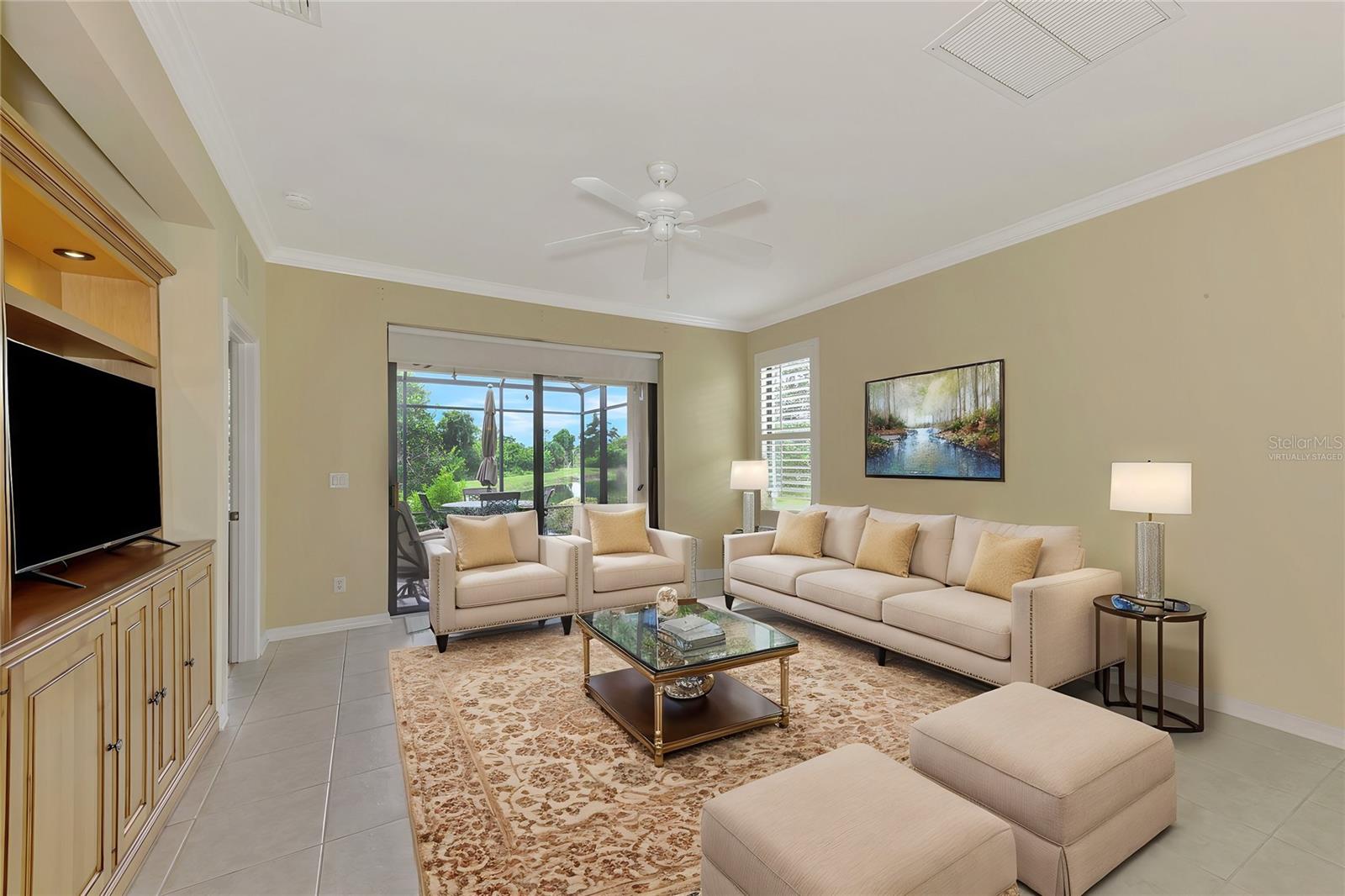 One or more photo(s) has been virtually staged. Welcome to this beautiful and serene end-unit villa offering 2 bedrooms, 2 baths, and a versatile den, perfect for a home office or guest room. Located in the very active 55+ community, Venetian Falls, this home offers an exciting lifestyle filled with tons of amenities and social activities for residents to enjoy. Nestled in a peaceful setting, the villa boasts breathtaking lake and preserve views, providing both privacy and tranquility. The spacious extended lanai is ideal for outdoor entertaining or relaxing while soaking in the surrounding natural beauty. Inside, you'll find plantation shutters throughout, adding a touch of elegance and practicality. The kitchen and primary bath are bright and welcoming thanks to tubular skylights that bring in abundant natural light. This community offers a wealth of amenities, ensuring there's always something fun to do--whether it's taking part in fitness classes, social clubs, or enjoying the pool and clubhouse. It's the perfect place for active adults looking to make the most of every day. Come experience the perfect blend of comfort, luxury, and a vibrant lifestyle--your private oasis in this highly sought-after 55+ community awaits!