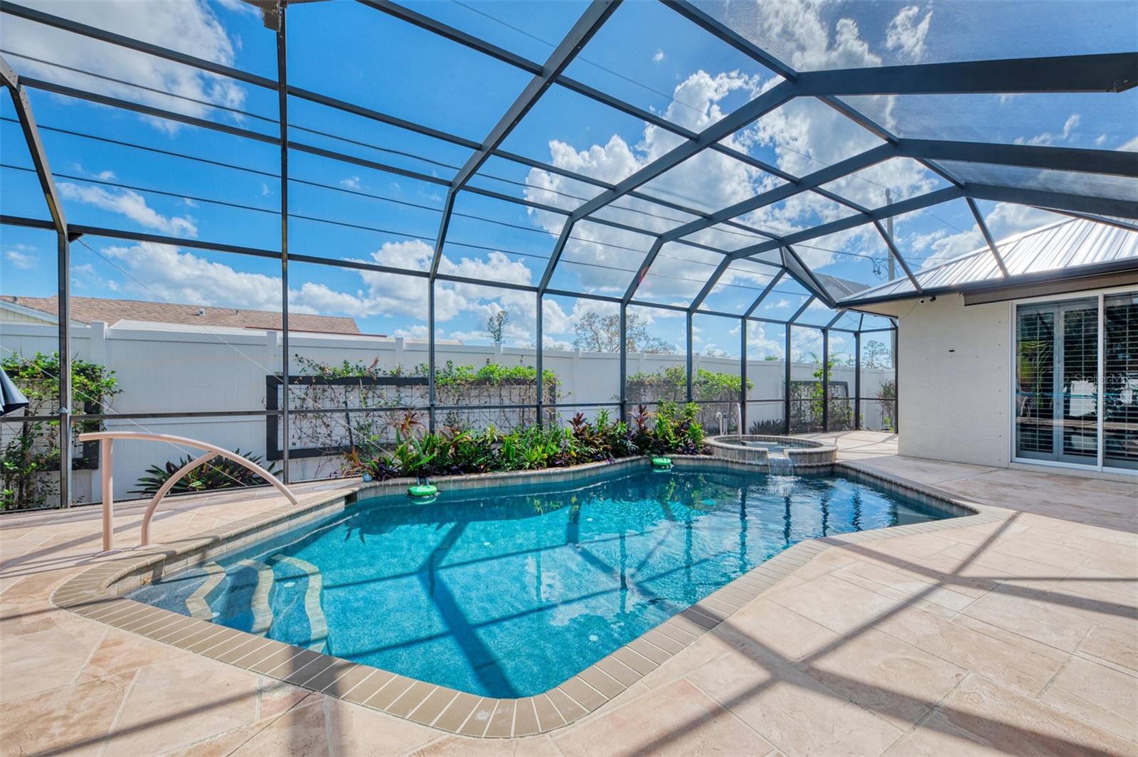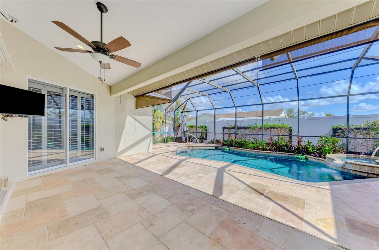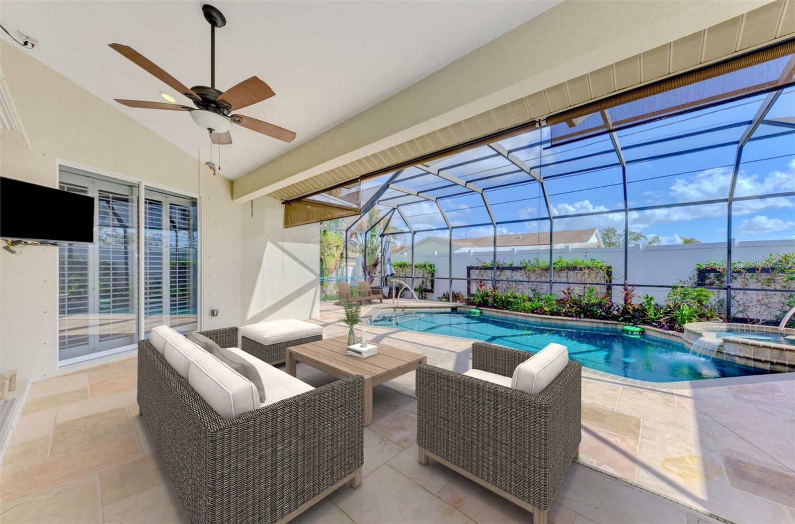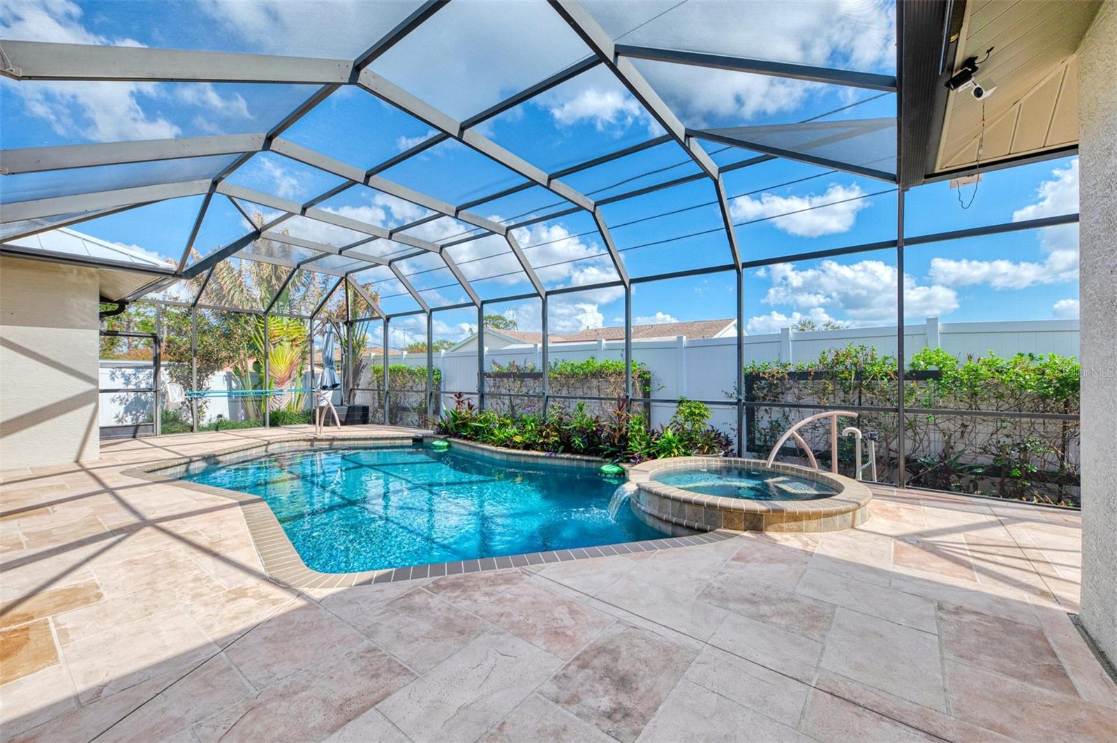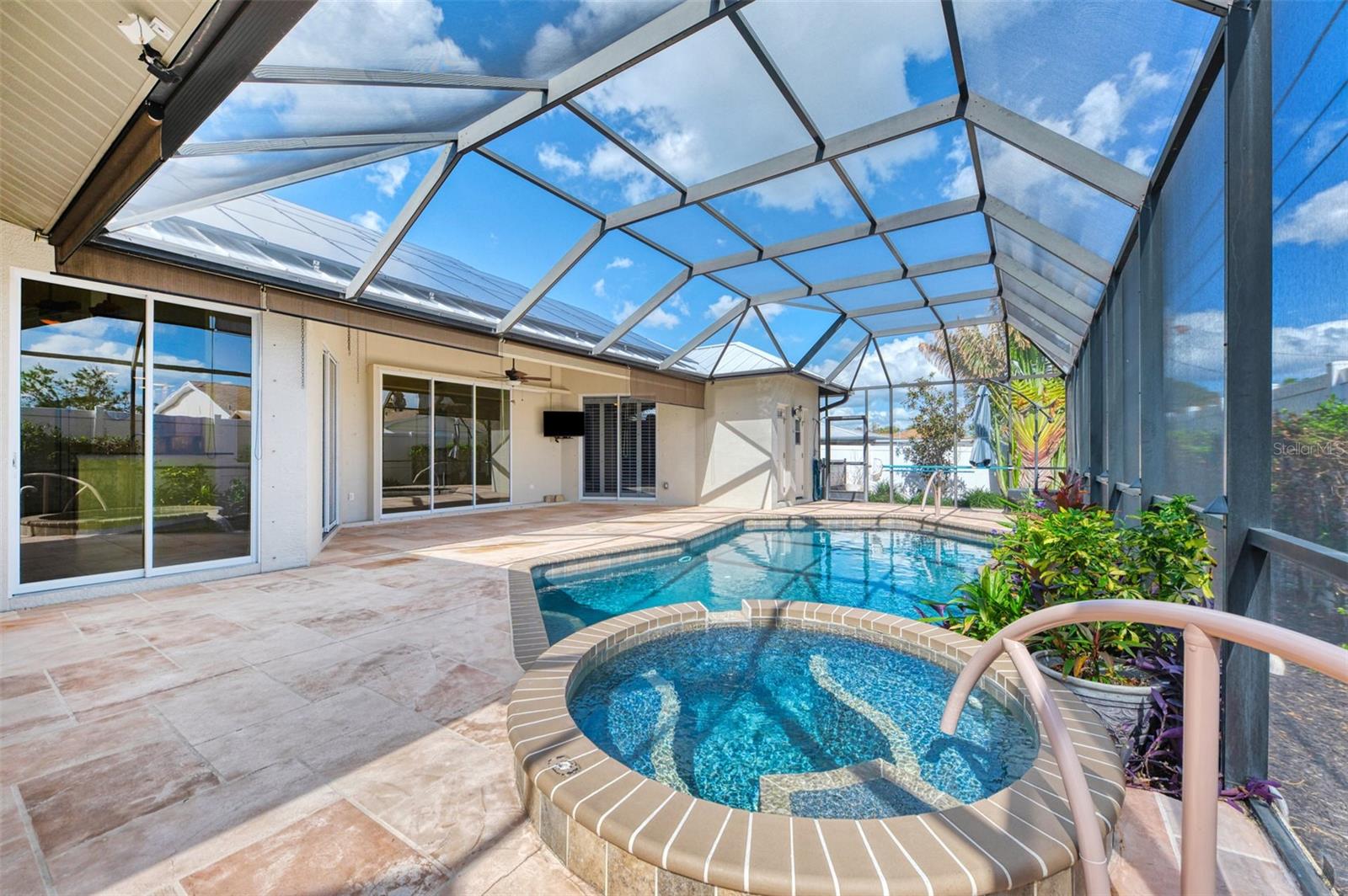 One or more photo(s) has been virtually staged. GREAT HOME for an "Airbnb" has been FRESHLY PAINTED stop on by and see!!! This Stunning "Fireside "Custom-BUILT" home is the one you've been waiting for. Situated at an impressive elevation of 15 feet above sea level. Owners have meticulously thought of every detail, from the Whole House Generator and hurricane-proof windows to the added Kevlar window protectors, ensuring your home remains secure through any storm. A 2024-installed metal roof and a leased solar system further enhance both protection and energy efficiency. Inside, this bright and cheerful 3-bedroom, 2.5-bath home boasts a spacious, Open floor plan that seamlessly flows to a beautiful pool/spa area. Sliders surround the pool, bringing the outdoors in and allowing for effortless indoor-outdoor living--perfect for enjoying the Florida sunshine. The home is a Smart Home, with high-end features like 20' tile throughout, a central vacuum system, and elegant plantation shutters. The kitchen is a chef's dream, featuring a breakfast bar, Granite counters, soft-close wood cabinetry with metal pullouts, stainless steel appliances, plus hot water dispenser, and a reverse osmosis water filtration system. The breakfast nook includes a built-in buffet and wine rack, ideal for entertaining. Great room offers a built-in entertainment center, creating a cozy yet modern space for relaxation. The master suite is a true retreat, complete with walk-in closets and a mini-split for personalized climate control. Master bathroom includes a Roman shower and dual granite sinks. Two guest bedrooms, both with wall-to-wall closets, share a well-appointed guest bath. The laundry room features front-load washer/dryer, a built-in folding table, and a pull-down ironing board for added convenience.For those with hobbies or extra storage needs, the 10x20 workshop/golf garage provides ample space with shelving and storage. Outside, the oasis-like backyard includes a screened self-cleaning, heated swimming pool with a spa, beautiful landscaping, and a covered lanai with rolled down shades and a TV for effortless outdoor entertaining, plus you have a side covered area for mechanical systems. Community features include a boat ramp, and access to a private community beach via ferry, as well as a kayak/canoe/paddle-board launch area for a small yearly fee. No HOA or CDD fees. Located just a short distance from the famous Legacy Trail for biking, numerous beaches, and the charming downtown Venice with its shopping and dining options, this home is truly a dream come true.Don't miss the chance to own this exceptional home--where comfort, security, and style come together to create the perfect Florida lifestyle.