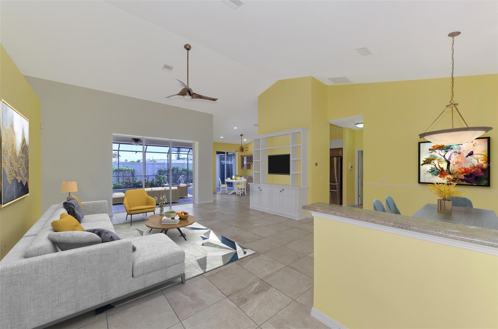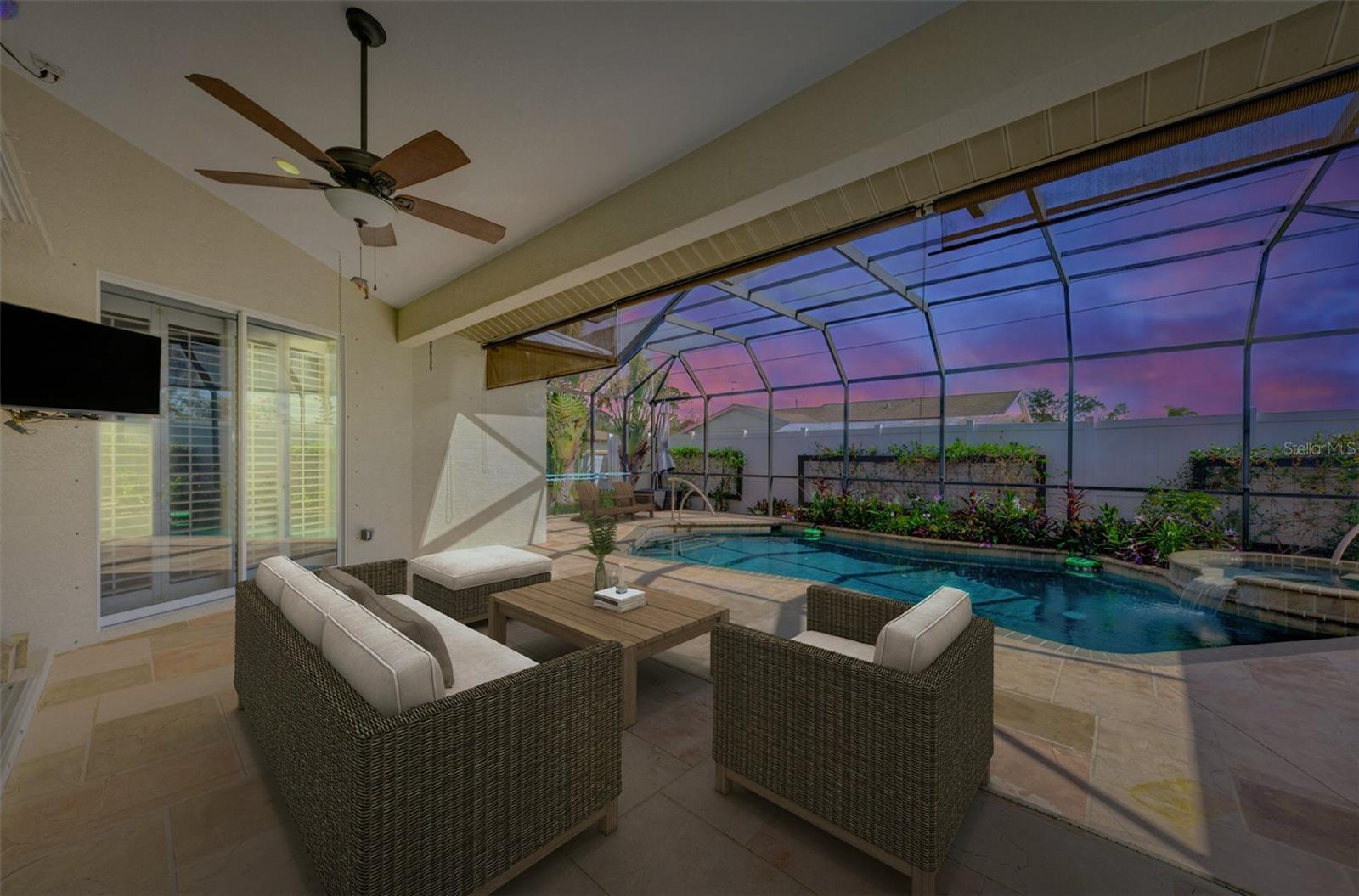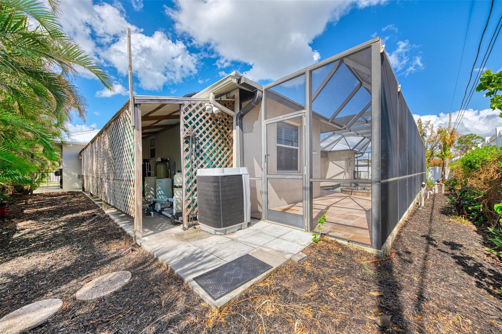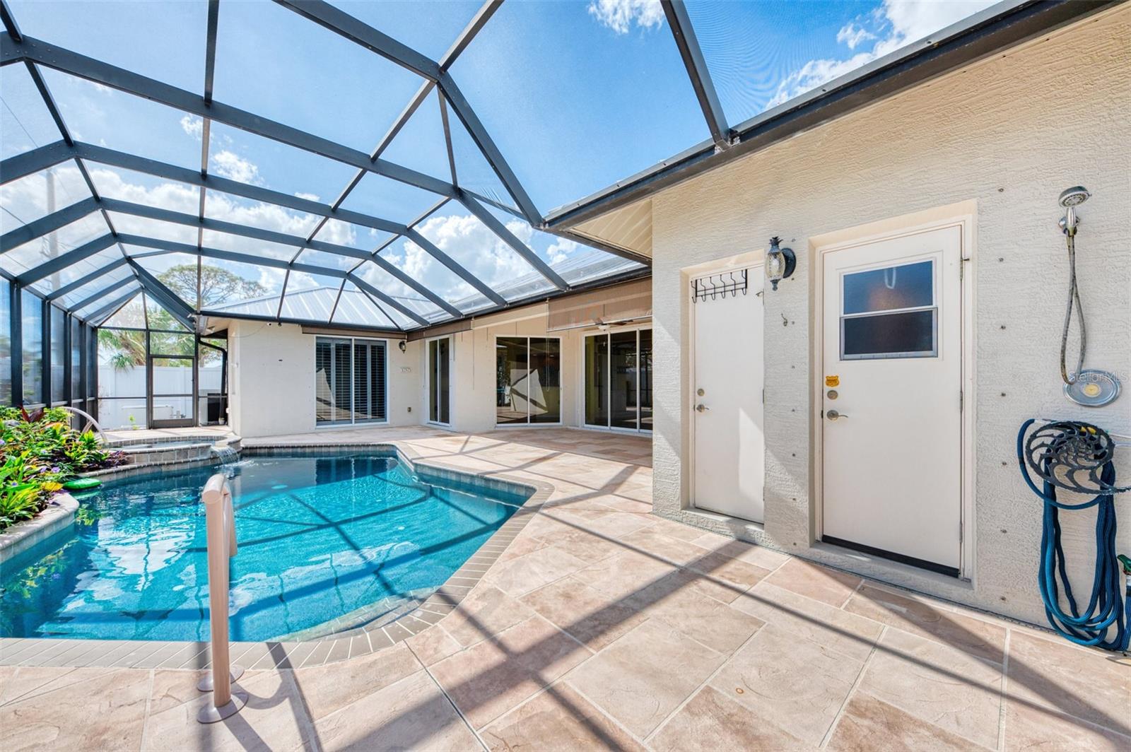 One or more photo(s) has been virtually staged. GREAT HOME for an "Airbnb" has been FRESHLY PAINTED stop on by and see!!! This Stunning "Fireside "Custom-BUILT" home is the one you've been waiting for. Situated at an impressive elevation of 15 feet above sea level. Owners have meticulously thought of every detail, from the Whole House Generator and hurricane-proof windows to the added Kevlar window protectors, ensuring your home remains secure through any storm. A 2024-installed metal roof and a leased solar system further enhance both protection and energy efficiency. Inside, this bright and cheerful 3-bedroom, 2.5-bath home boasts a spacious, Open floor plan that seamlessly flows to a beautiful pool/spa area. Sliders surround the pool, bringing the outdoors in and allowing for effortless indoor-outdoor living--perfect for enjoying the Florida sunshine. The home is a Smart Home, with high-end features like 20' tile throughout, a central vacuum system, and elegant plantation shutters. The kitchen is a chef's dream, featuring a breakfast bar, Granite counters, soft-close wood cabinetry with metal pullouts, stainless steel appliances, plus hot water dispenser, and a reverse osmosis water filtration system. The breakfast nook includes a built-in buffet and wine rack, ideal for entertaining. Great room offers a built-in entertainment center, creating a cozy yet modern space for relaxation. The master suite is a true retreat, complete with walk-in closets and a mini-split for personalized climate control. Master bathroom includes a Roman shower and dual granite sinks. Two guest bedrooms, both with wall-to-wall closets, share a well-appointed guest bath. The laundry room features front-load washer/dryer, a built-in folding table, and a pull-down ironing board for added convenience.For those with hobbies or extra storage needs, the 10x20 workshop/golf garage provides ample space with shelving and storage. Outside, the oasis-like backyard includes a screened self-cleaning, heated swimming pool with a spa, beautiful landscaping, and a covered lanai with rolled down shades and a TV for effortless outdoor entertaining, plus you have a side covered area for mechanical systems. Community features include a boat ramp, and access to a private community beach via ferry, as well as a kayak/canoe/paddle-board launch area for a small yearly fee. No HOA or CDD fees. Located just a short distance from the famous Legacy Trail for biking, numerous beaches, and the charming downtown Venice with its shopping and dining options, this home is truly a dream come true.Don't miss the chance to own this exceptional home--where comfort, security, and style come together to create the perfect Florida lifestyle.