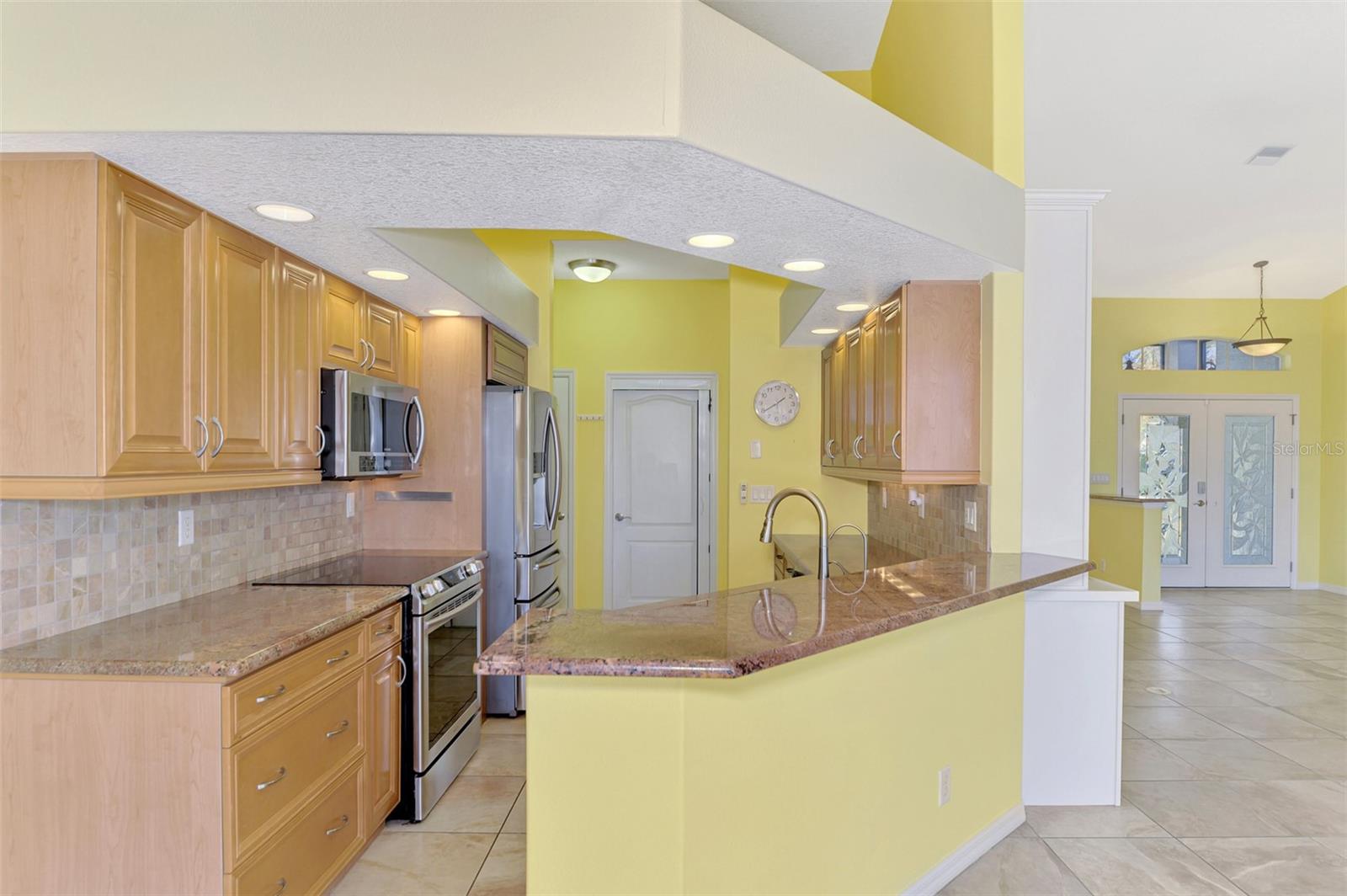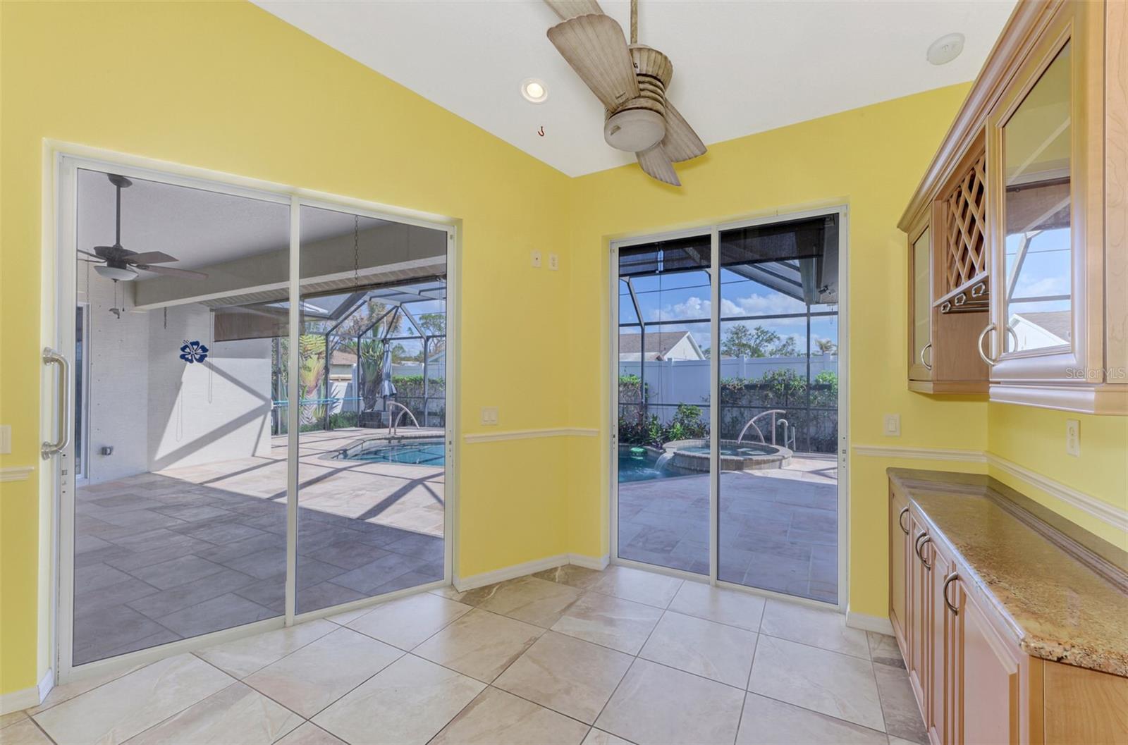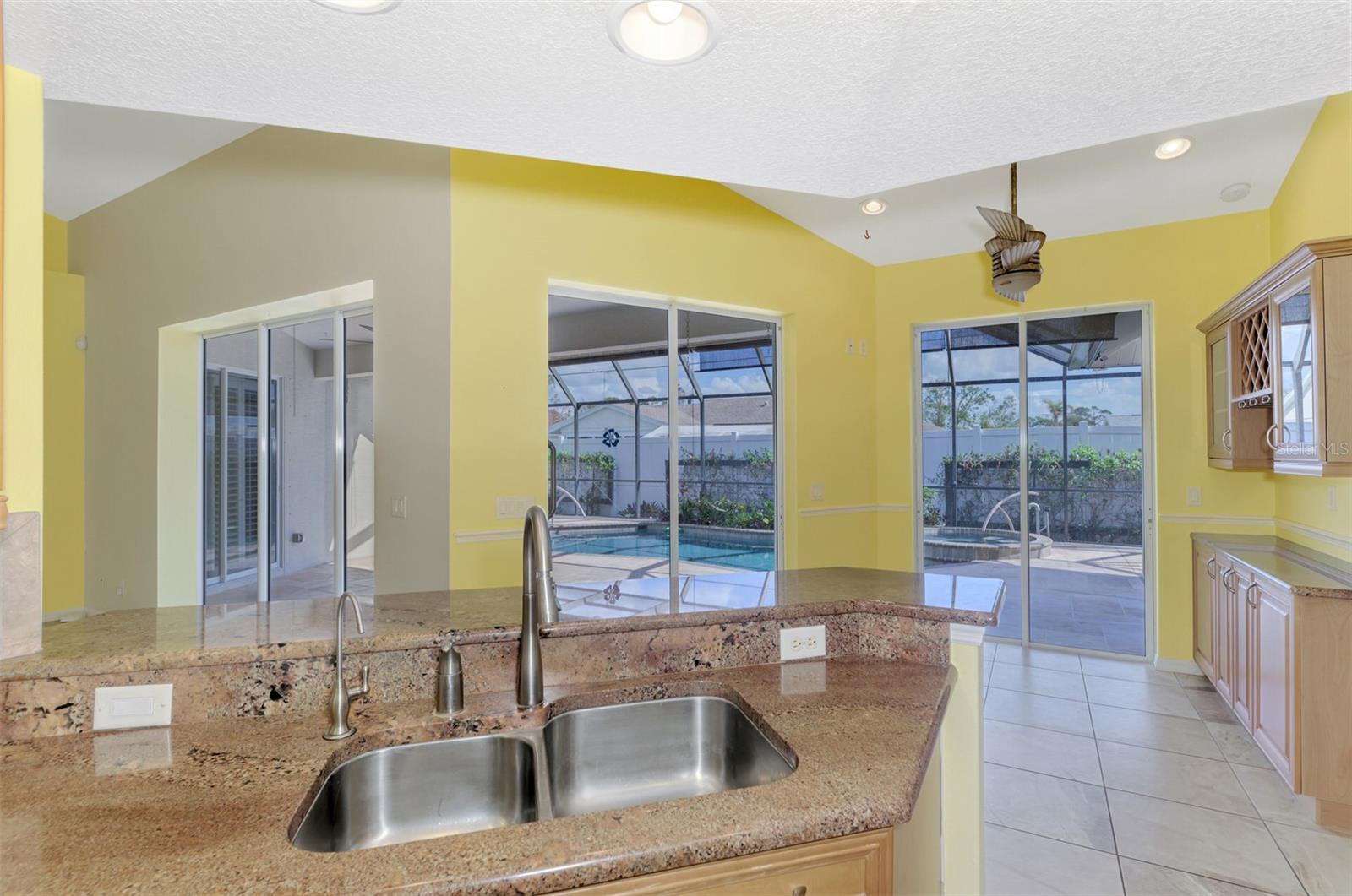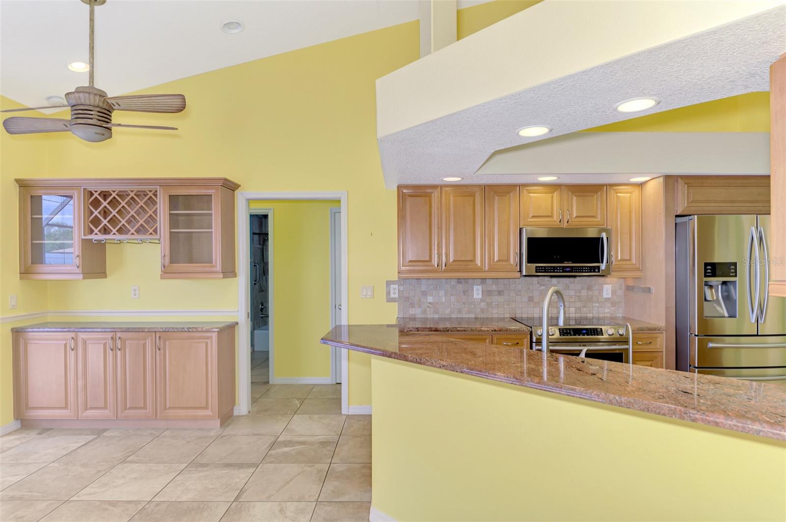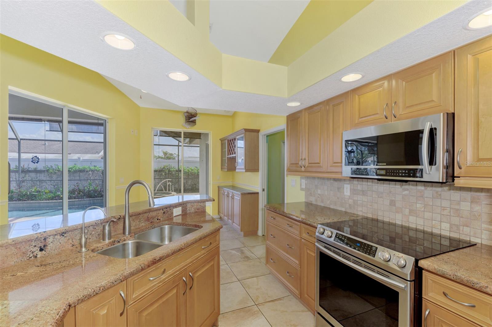One or more photo(s) has been virtually staged. GREAT HOME for an "Airbnb" has been FRESHLY PAINTED stop on by and see!!! This Stunning "Fireside "Custom-BUILT" home is the one you've been waiting for. Situated at an impressive elevation of 15 feet above sea level. Owners have meticulously thought of every detail, from the Whole House Generator and hurricane-proof windows to the added Kevlar window protectors, ensuring your home remains secure through any storm. A 2024-installed metal roof and a leased solar system further enhance both protection and energy efficiency. Inside, this bright and cheerful 3-bedroom, 2.5-bath home boasts a spacious, Open floor plan that seamlessly flows to a beautiful pool/spa area. Sliders surround the pool, bringing the outdoors in and allowing for effortless indoor-outdoor living--perfect for enjoying the Florida sunshine. The home is a Smart Home, with high-end features like 20' tile throughout, a central vacuum system, and elegant plantation shutters. The kitchen is a chef's dream, featuring a breakfast bar, Granite counters, soft-close wood cabinetry with metal pullouts, stainless steel appliances, plus hot water dispenser, and a reverse osmosis water filtration system. The breakfast nook includes a built-in buffet and wine rack, ideal for entertaining. Great room offers a built-in entertainment center, creating a cozy yet modern space for relaxation. The master suite is a true retreat, complete with walk-in closets and a mini-split for personalized climate control. Master bathroom includes a Roman shower and dual granite sinks. Two guest bedrooms, both with wall-to-wall closets, share a well-appointed guest bath. The laundry room features front-load washer/dryer, a built-in folding table, and a pull-down ironing board for added convenience.For those with hobbies or extra storage needs, the 10x20 workshop/golf garage provides ample space with shelving and storage. Outside, the oasis-like backyard includes a screened self-cleaning, heated swimming pool with a spa, beautiful landscaping, and a covered lanai with rolled down shades and a TV for effortless outdoor entertaining, plus you have a side covered area for mechanical systems. Community features include a boat ramp, and access to a private community beach via ferry, as well as a kayak/canoe/paddle-board launch area for a small yearly fee. No HOA or CDD fees. Located just a short distance from the famous Legacy Trail for biking, numerous beaches, and the charming downtown Venice with its shopping and dining options, this home is truly a dream come true.Don't miss the chance to own this exceptional home--where comfort, security, and style come together to create the perfect Florida lifestyle.