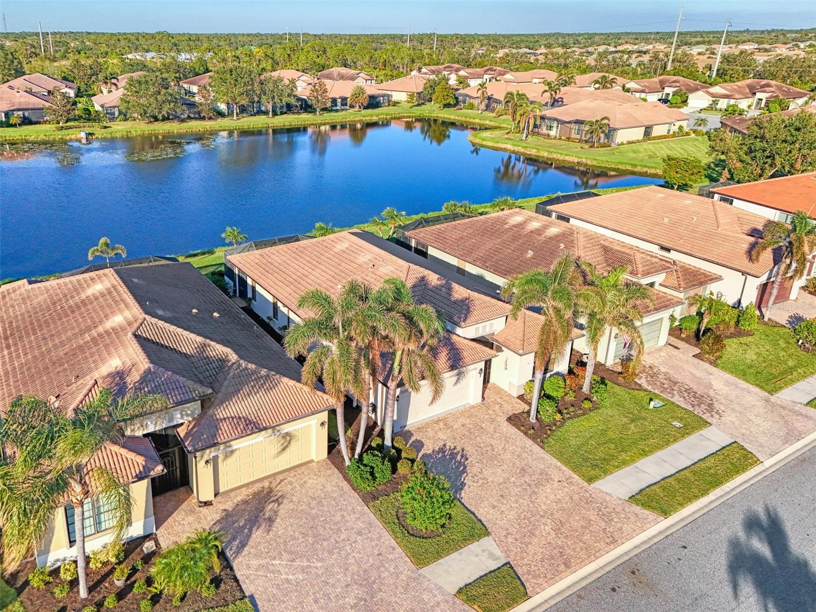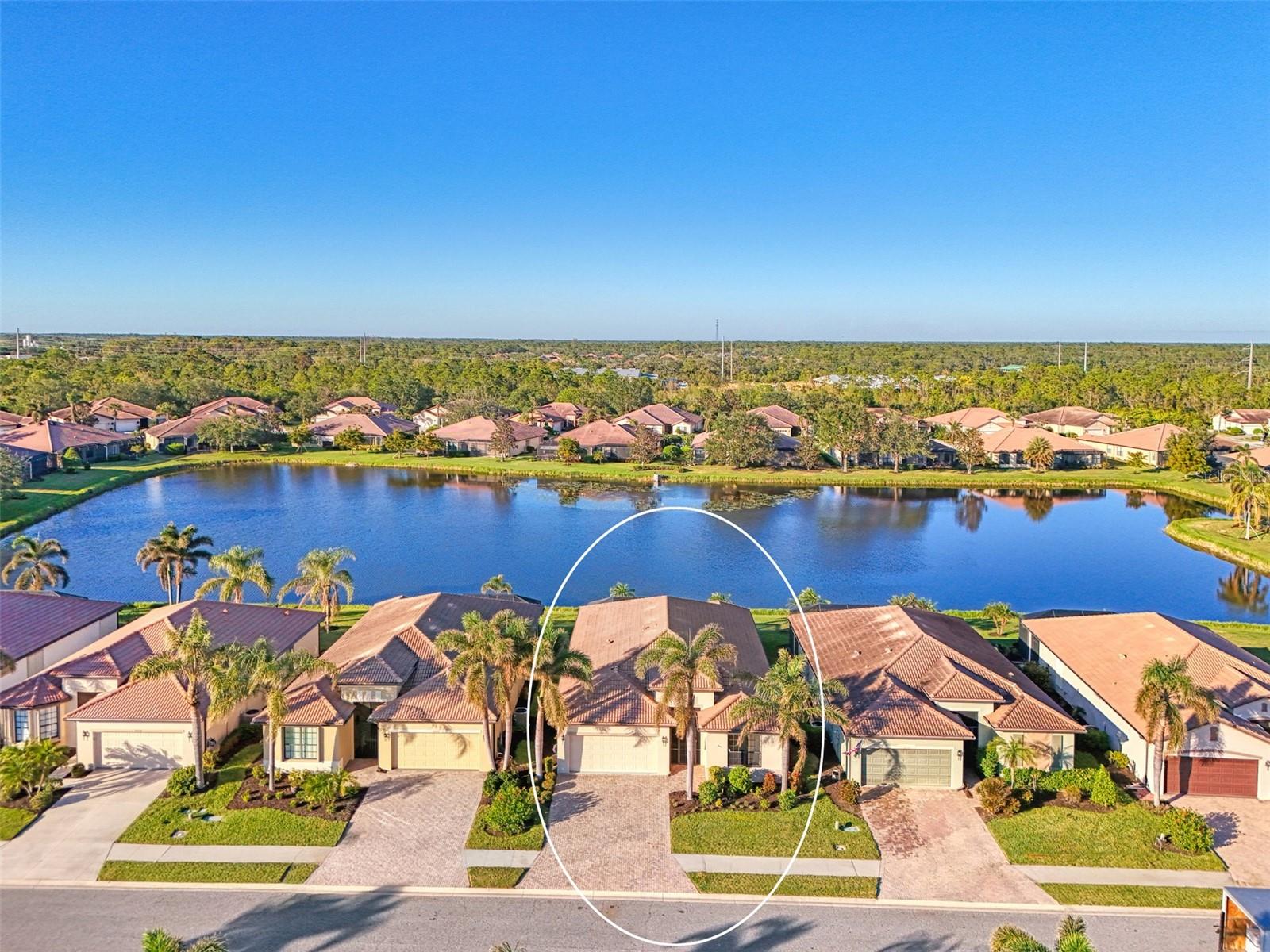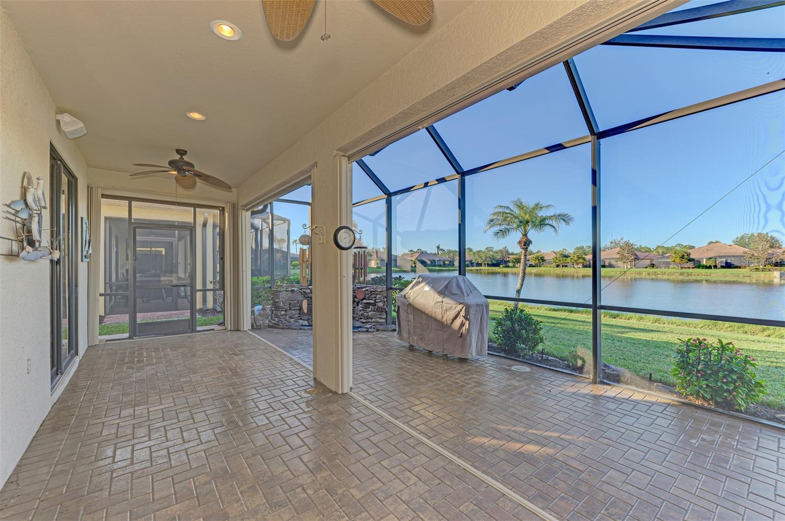 JUST REDUCED! This exclusive 55+ Community in Venetian Falls presents a rare opportunity for new ownership. This Milan model home, overlooking a large pond, offers two Bedrooms, two Bathrooms, an open floor plan, a Gourmet Kitchen, stainless steel appliances, with a Breakfast area, a Den/Office, a seperate Dining Room, and a Bonus area for reading and relaxation. The extended Lanai provides a full pond view, which is ideal for relaxation and entertainment, and includes a waterfall and hurricane shutters. The Primary Bedroom includes an en-suite Bathroom with dual sinks, walk-in closets, a large shower, and a water closet. The split Bedroom design ensures guest privacy with a second Bathroom. This home has been meticulously maintained. In-House pest control. The 2-car garage has plenty of built-in storage, work bench area, and a full Screen installed over the insulated garage door. The roof has been recently cleaned, and the exterior as well as the interior, has been recently painted. This home is conveniently located near beaches, historic downtown Venice, I-75, and Route 41. The Coummunity offers exceptional amentities, including a heated Lap Pool and Spa. Resistance-walking Pool, a large Exercise Facility, a Billiard Room, Bocce Courts, a full-time Activity Director, Gated Access, and on-siste Management. The HOA provides internet, cable and maintenance-free living.
