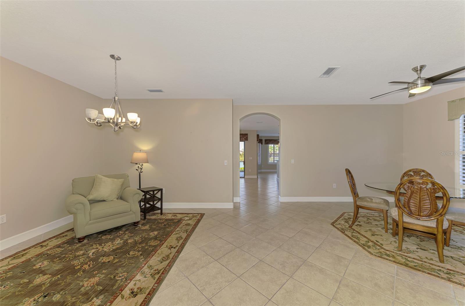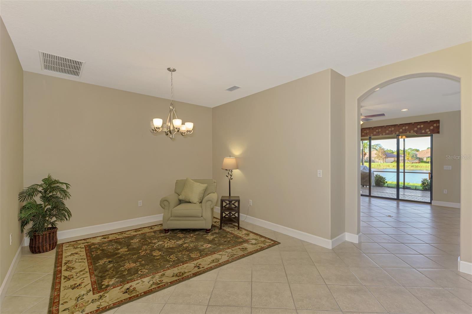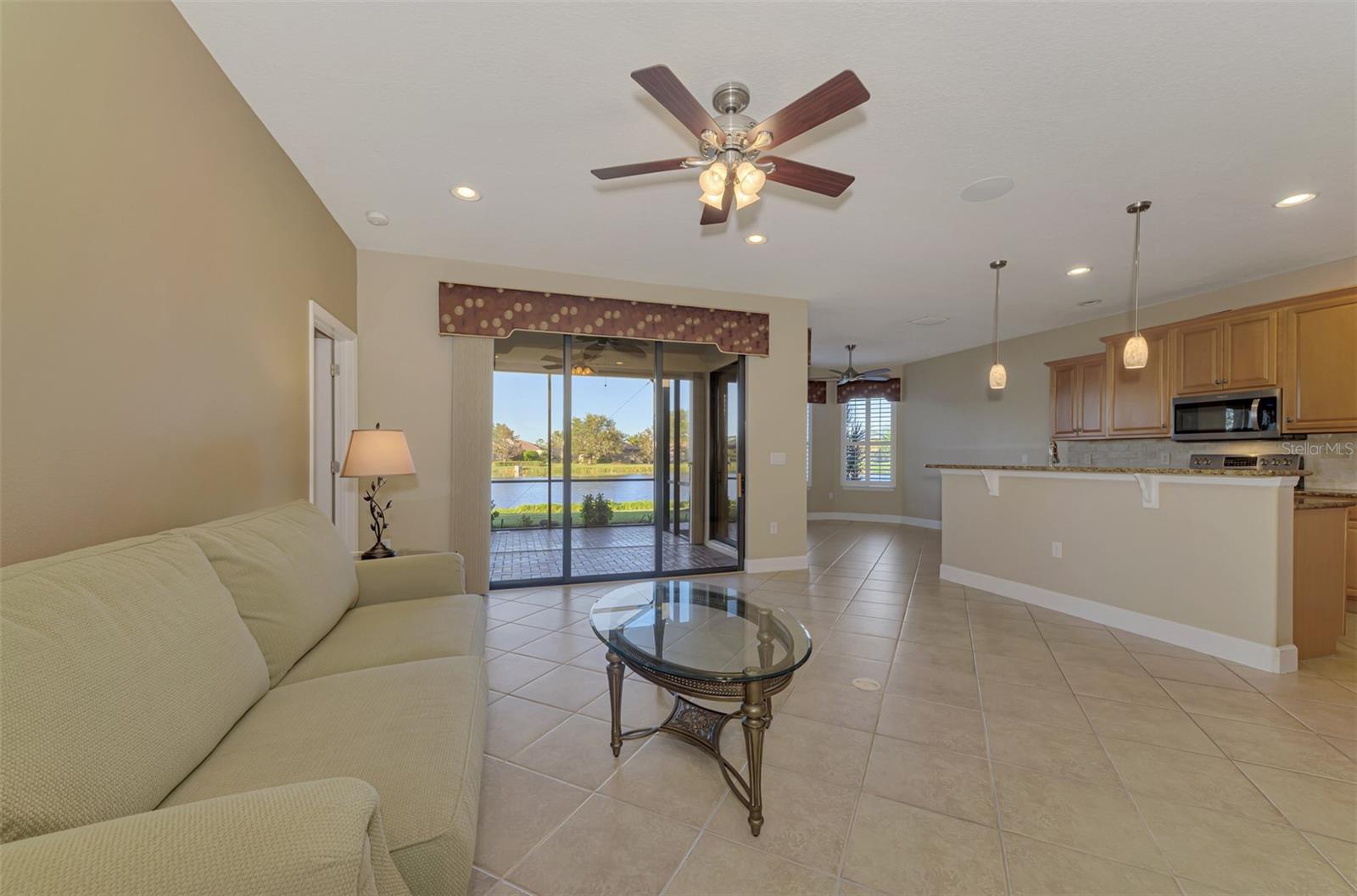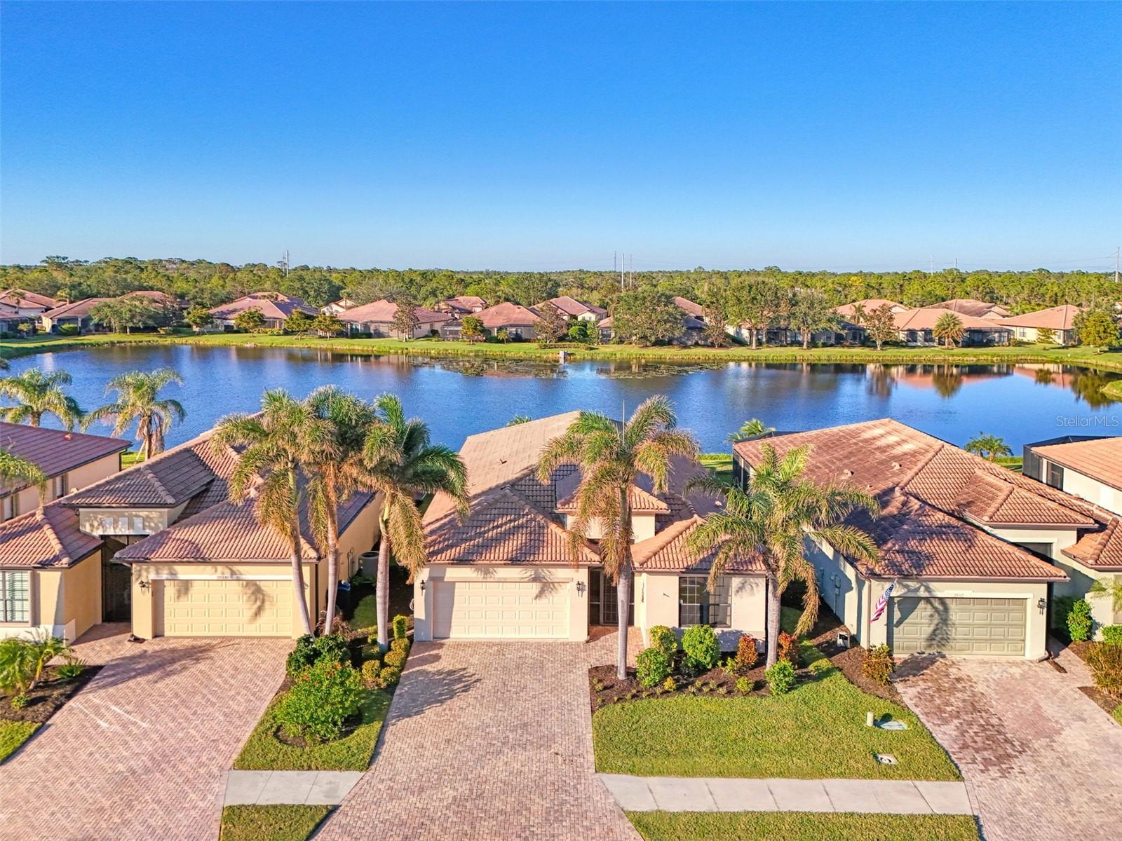 JUST REDUCED! This exclusive 55+ Community in Venetian Falls presents a rare opportunity for new ownership. This Milan model home, overlooking a large pond, offers two Bedrooms, two Bathrooms, an open floor plan, a Gourmet Kitchen, stainless steel appliances, with a Breakfast area, a Den/Office, a seperate Dining Room, and a Bonus area for reading and relaxation. The extended Lanai provides a full pond view, which is ideal for relaxation and entertainment, and includes a waterfall and hurricane shutters. The Primary Bedroom includes an en-suite Bathroom with dual sinks, walk-in closets, a large shower, and a water closet. The split Bedroom design ensures guest privacy with a second Bathroom. This home has been meticulously maintained. In-House pest control. The 2-car garage has plenty of built-in storage, work bench area, and a full Screen installed over the insulated garage door. The roof has been recently cleaned, and the exterior as well as the interior, has been recently painted. This home is conveniently located near beaches, historic downtown Venice, I-75, and Route 41. The Coummunity offers exceptional amentities, including a heated Lap Pool and Spa. Resistance-walking Pool, a large Exercise Facility, a Billiard Room, Bocce Courts, a full-time Activity Director, Gated Access, and on-siste Management. The HOA provides internet, cable and maintenance-free living.