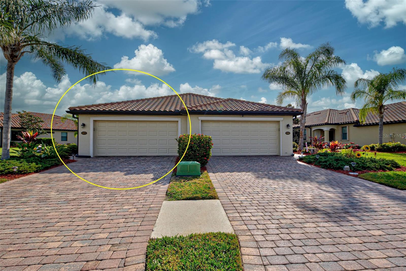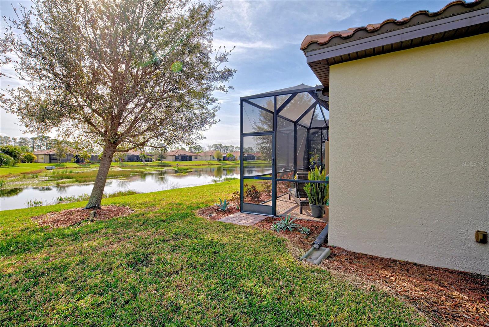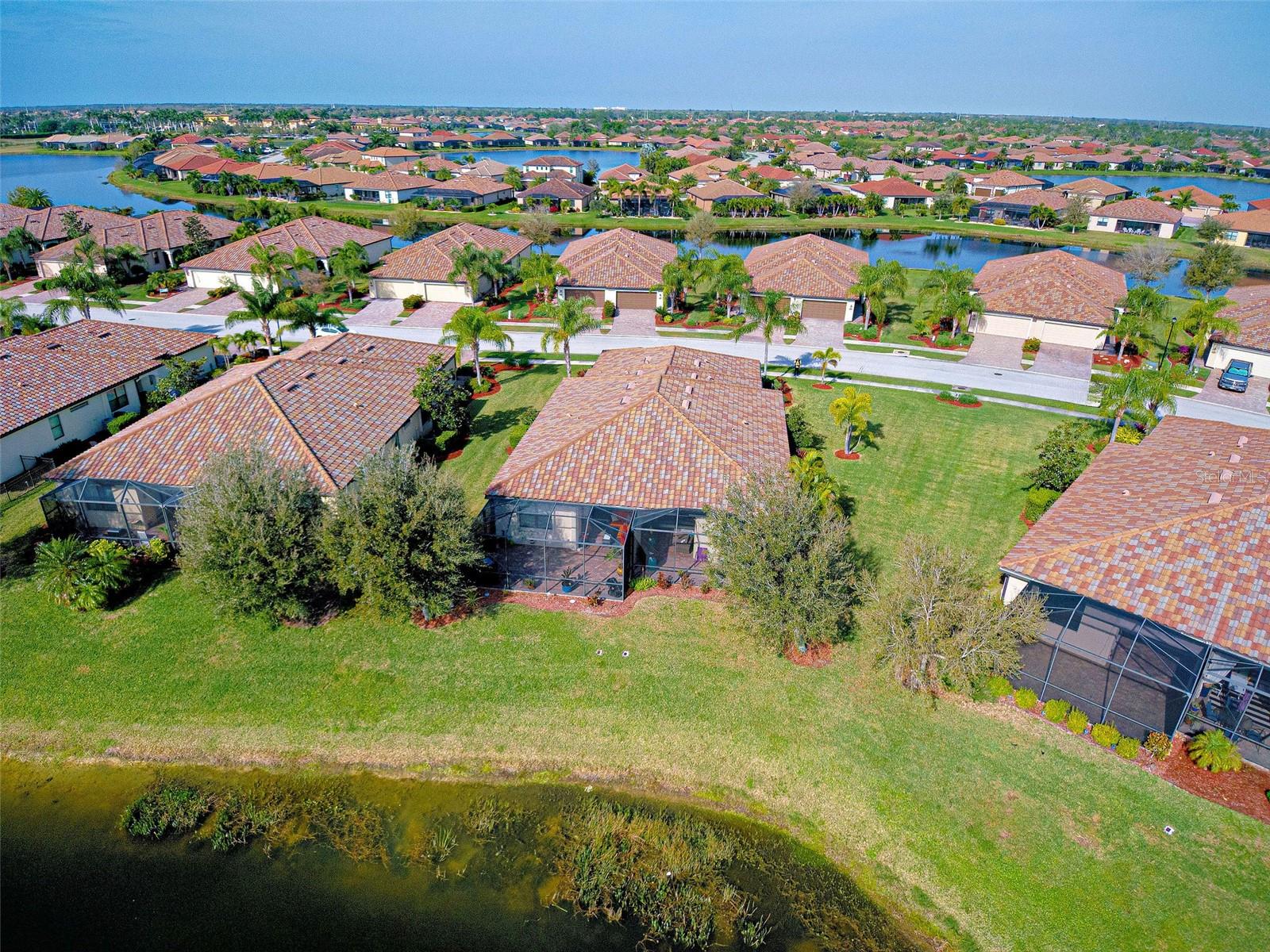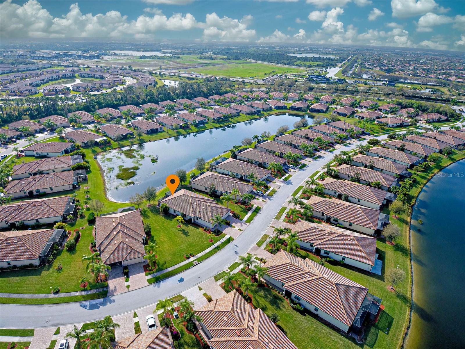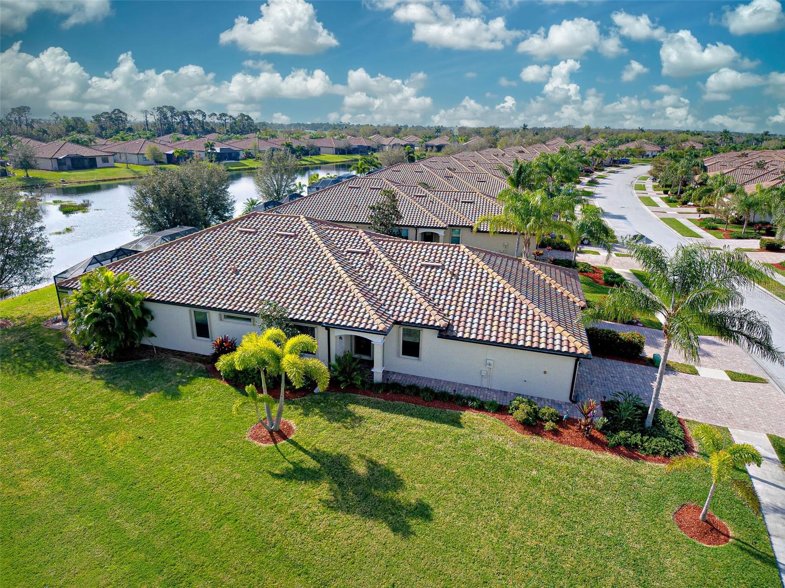 Under contract-accepting backup offers. Check out the beautiful pond view and experience the ultimate in Florida living from the comfort of this exquisite villa within the maintenance-free resort community of Gran Paradiso. Embrace the Orchid model's thoughtful SPLIT FLOOR PLAN design, TWO BEDROOMS AND A DEN with French doors, two baths and 2 CAR GARAGE. Check out the Updated two-car garage that has a StorPro OVERHEAD STORAGE SHELF and a NewAge GARAGE STORAGE CABINET/WORK BENCH with TWO ROLLOUT TOOL BOXES. This home has beautiful finishes such as crown moldings, granite countertops, and diagonally tiled floors, complemented by stainless steel appliances in the kitchen. A new water heater was installed in 2023. NO WORRIES putting up HURRICANE SHUTTERS this villa is equipped with a ROLL DOWN SHUTTER ON the LANAI and ACCORDIAN SHUTTERS ON EACH WINDOW. This villa is NOT IN A FLOOD ZONE and it is situated on one of the FEW OVERSIZED LOTS in Gran Paradiso, this villa offers ample green space and extra space between the villas. Indulge in the resort-like array of amenities, including community activities, a rejuvenating pool, saunas, steam rooms, gym and workout facilities, PICKLE BALL and tennis courts to name a few. Or simply unwind while admiring the pond and the beautiful array of birds from your lanai. Located close to Beaches, shopping, the Braves Winter Training facility and lots of great dining Choices! Call today for your private showing and elevate your living experience in Gran Paradiso's premier community.