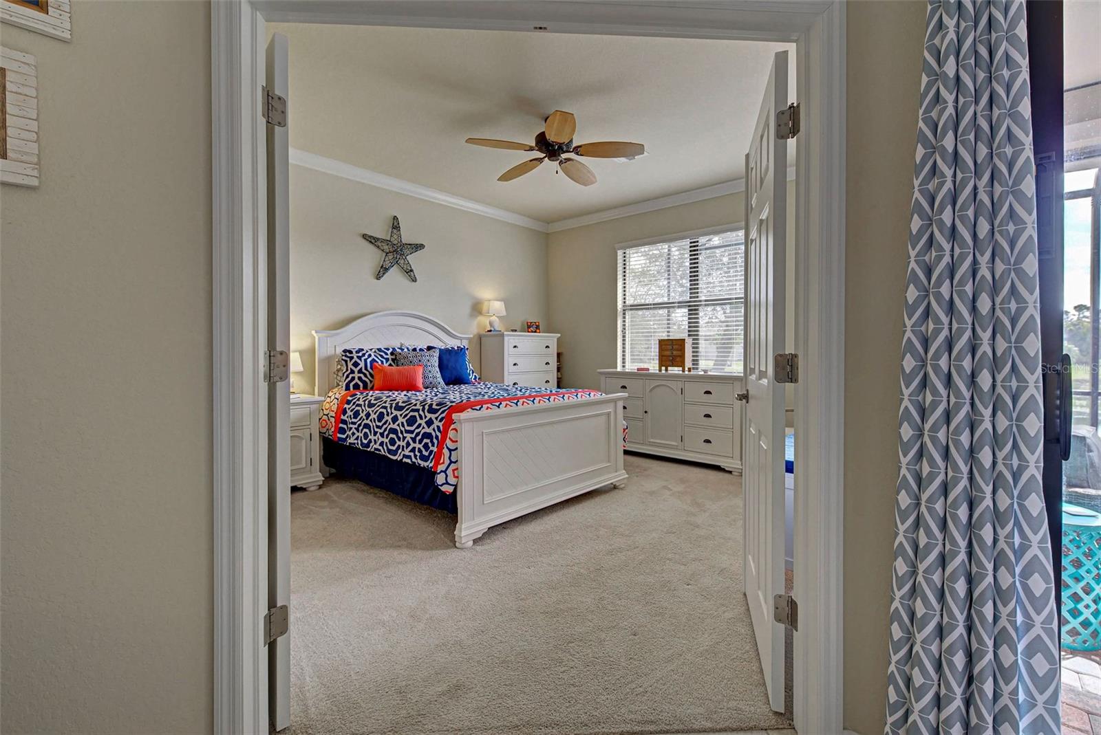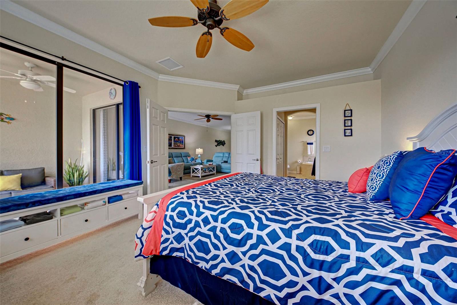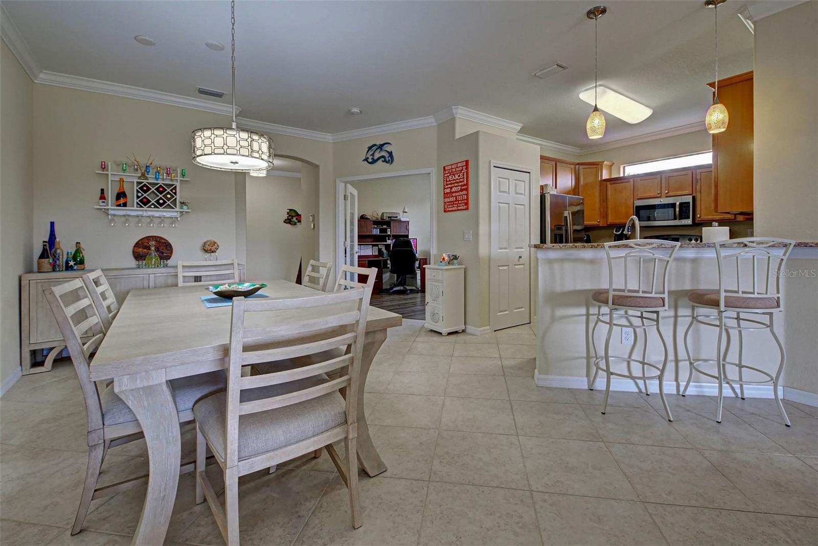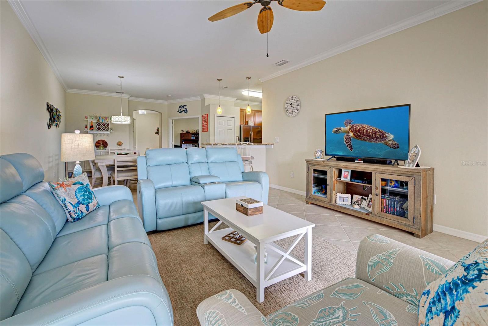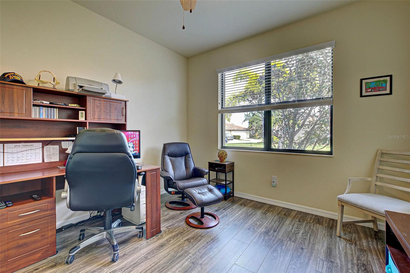 Under contract-accepting backup offers. Check out the beautiful pond view and experience the ultimate in Florida living from the comfort of this exquisite villa within the maintenance-free resort community of Gran Paradiso. Embrace the Orchid model's thoughtful SPLIT FLOOR PLAN design, TWO BEDROOMS AND A DEN with French doors, two baths and 2 CAR GARAGE. Check out the Updated two-car garage that has a StorPro OVERHEAD STORAGE SHELF and a NewAge GARAGE STORAGE CABINET/WORK BENCH with TWO ROLLOUT TOOL BOXES. This home has beautiful finishes such as crown moldings, granite countertops, and diagonally tiled floors, complemented by stainless steel appliances in the kitchen. A new water heater was installed in 2023. NO WORRIES putting up HURRICANE SHUTTERS this villa is equipped with a ROLL DOWN SHUTTER ON the LANAI and ACCORDIAN SHUTTERS ON EACH WINDOW. This villa is NOT IN A FLOOD ZONE and it is situated on one of the FEW OVERSIZED LOTS in Gran Paradiso, this villa offers ample green space and extra space between the villas. Indulge in the resort-like array of amenities, including community activities, a rejuvenating pool, saunas, steam rooms, gym and workout facilities, PICKLE BALL and tennis courts to name a few. Or simply unwind while admiring the pond and the beautiful array of birds from your lanai. Located close to Beaches, shopping, the Braves Winter Training facility and lots of great dining Choices! Call today for your private showing and elevate your living experience in Gran Paradiso's premier community.