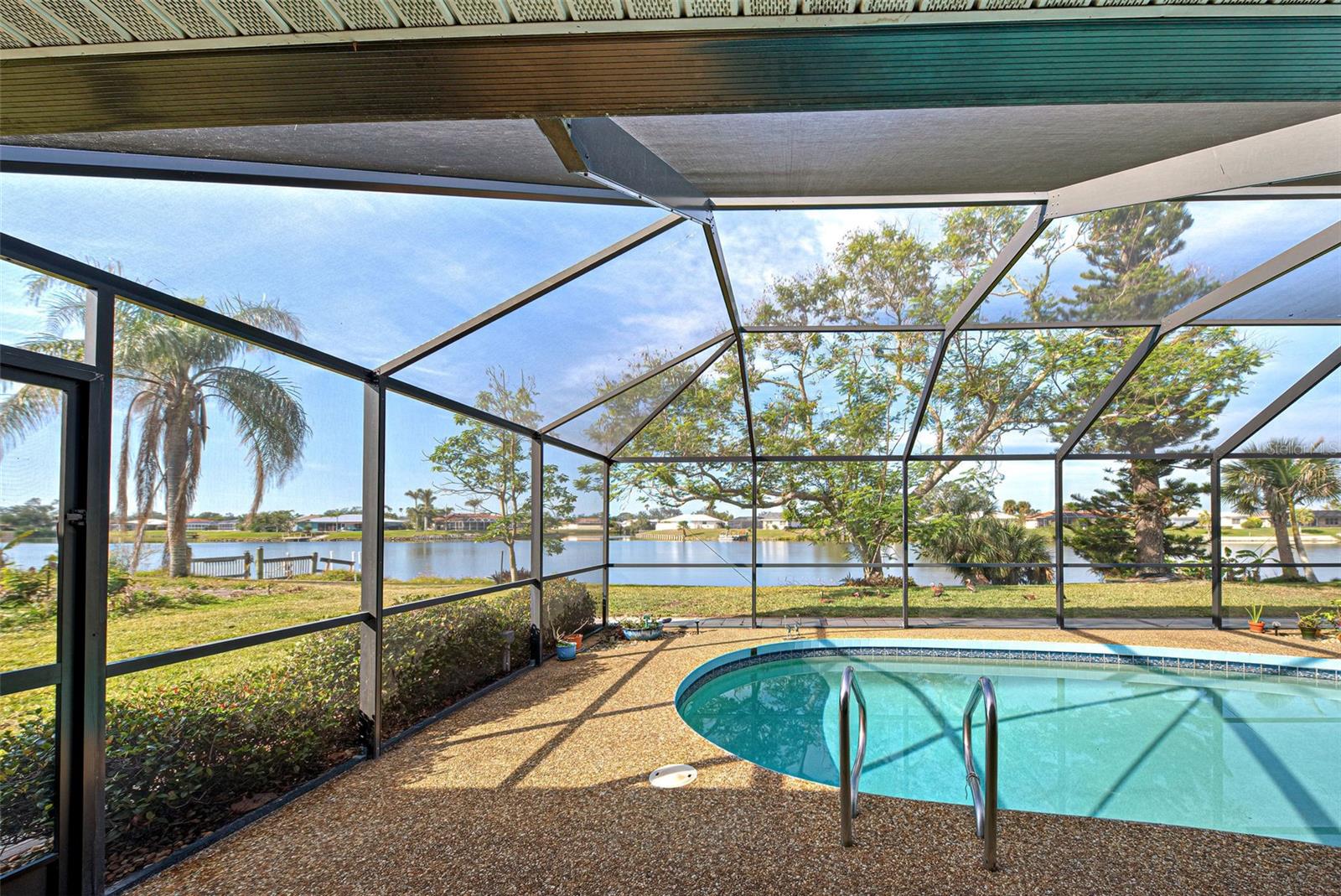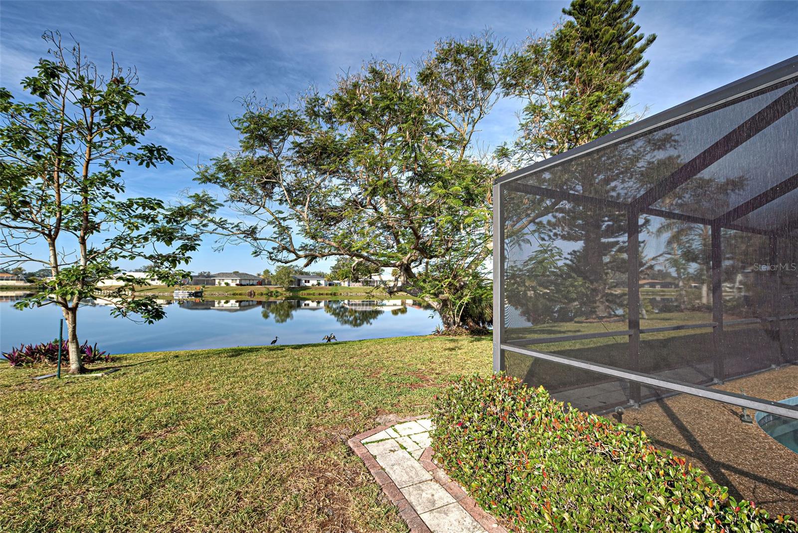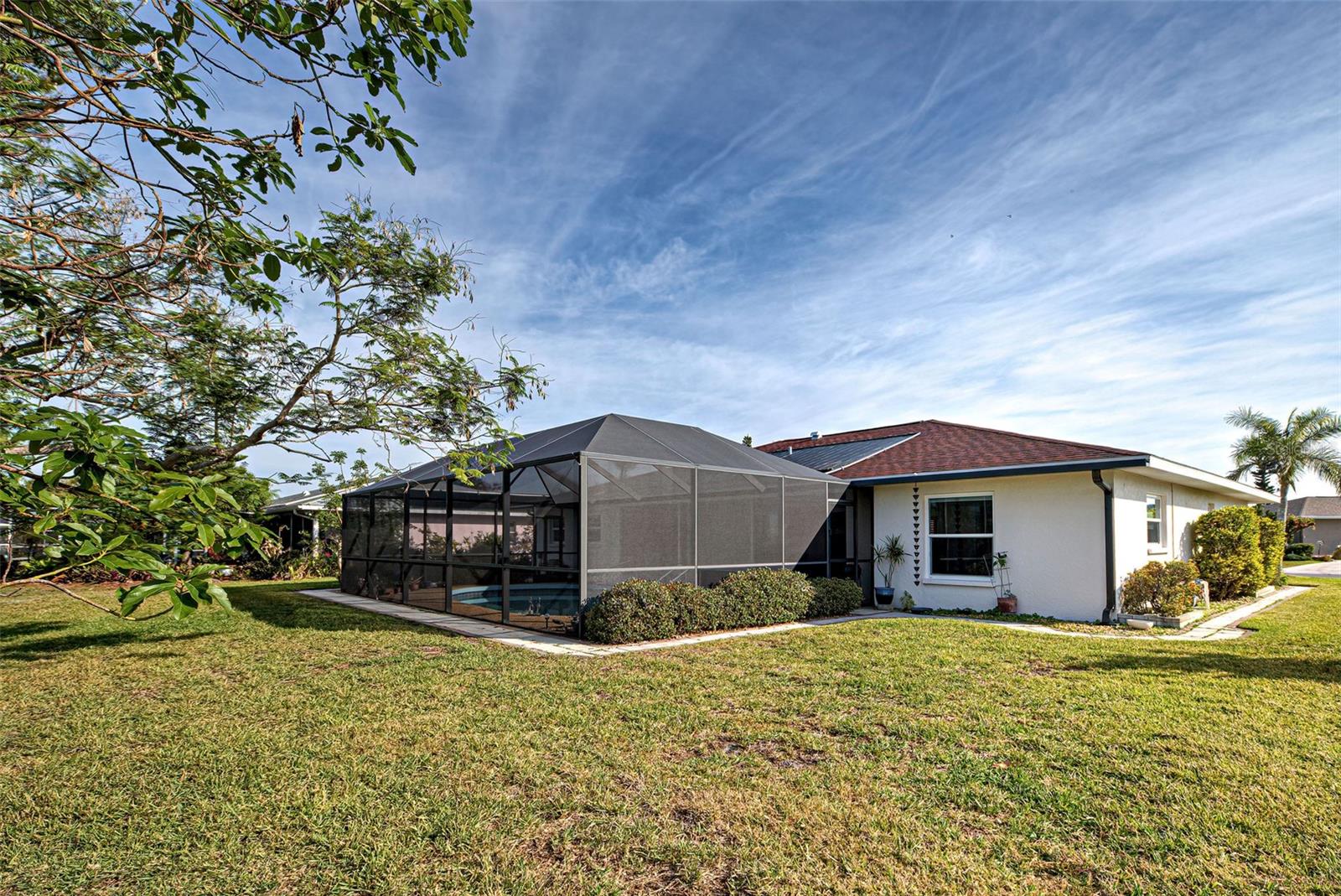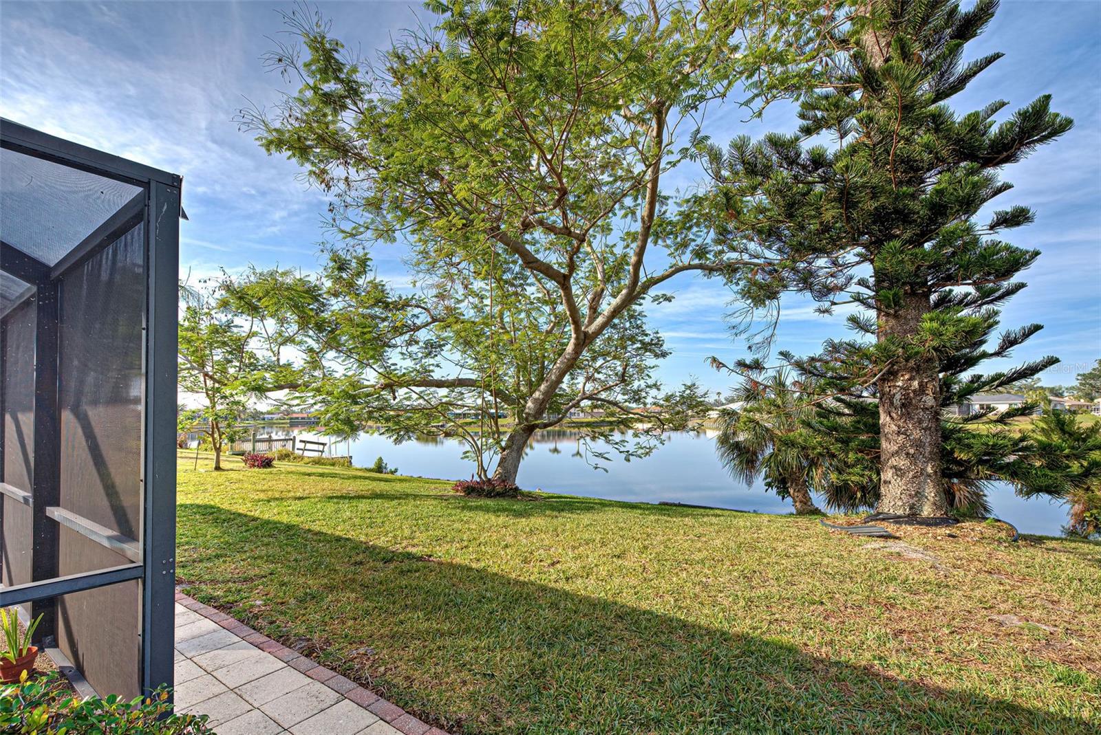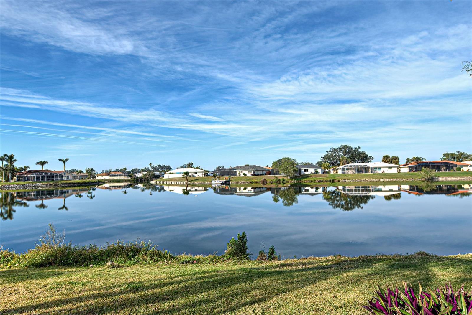 One or more photo(s) has been virtually staged. This home has the view you are looking for! It has a Long Open view of Claw Lake which allows you to get the most out of Florida Sunsets! Relax on the lanai and enjoy the view, birds and the quiet contentment this home brings. You will love it here! This charming 2-bedroom, 2 and 1/2-bath POOL home offers a serene water view of Claw Lake and numerous updates throughout. The Big ticket items have been taken care of! NEW HVAC JUNE 2025, NEW ROOF installed in 2023 and IMPACT RESISTANT WINDOWS bring you peace of mind. The split-bedroom floor plan ensures privacy, while the spacious living areas provide comfort and versatility. The Kitchen has Granite countertops and has been opened up to create an open floor plan. Beautiful glass enclosures update the shower in the Primary Bath and the Jacuzzi tub in the guest bath and bring a contemporary feel. There is also a DEN/OFFICE/3rd Bedroom provides extra space if needed. The salt-water pool is not only a joy but it has new solar heating which will save you money as will the irrigation system that pulls water from the lake. The beautiful lanai and pool area is perfect for social gatherings or just relaxing and living that Florida Lifestyle. The community surrounding Claw lake has some activities throughout the year to include their very own Holiday Boat parade in December to be enjoyed right from your backyard. This Jacaranda West community is Conveniently located near a golf club and this home offers easy access to amenities and recreation. Enjoy all Venice has to offer to include beautiful Beaches, fine dining and shopping. Schedule your showing soon, this is a beautiful home!